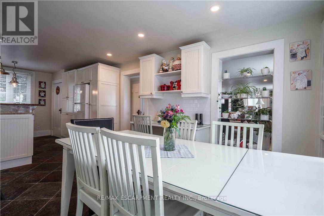 Here is your opportunity to own one of Caledonia's notable homes. Enjoy this lovely home is surroundedby gardens & shady green space. Until recently, it was also the location of The Proper Topper Bridal shop-undergoing a metamorphosis to become a lovely family home which can be used for a home-basedbusiness. The owners have thoughtfully transformed this home while respecting it's past. Boasting largeprincipal rooms, light-filled rooms embrace a modern esthetic with neutral colours & lovely restored floorsand/or engineered wood floors ("carpet-free" home!). Main level boasts a chef style kitchen, updated bath& incredible living room anchored with a whitewashed brick fireplace & refinished hardwood. Main floorlaundry with newer washer/dryer. (Laundry hook-ups also on second level.) Restored bonus room foroffice or playroom. 2nd floor can be accessed by one of two staircases & has 3 generous sized bedrooms& a loft plus renovated bath with clawfoot tub & fully tiled shower. The showstopper is a double sizedmaster bedroom oasis with windows overseeing backyard with mature shade trees. A 3rd level is aunique family room or private office with beamed ceilings, skylight, wooden floors & windows affording aview towards the Grand River. Many improvements: upgrades to all bathrooms, most newer windows,dramatic entrance door with sidelights, new wide baseboards, subway tile backsplashes, new & restoredflooring, new light fixtures & pot-lighting. Building upgrades: metal roof, newer appliances, new sumppump & drainage system in basement, recent all owned furnace, water heater & AC. You will appreciatethat there are no "popcorn" ceilings here! Offering a place of calm in a busy world. Kick back on yourcedar deck, walk to local grocery & restaurants. Stroll along the river walk or visit Jones Bakery. This home has it all! (id:64974)