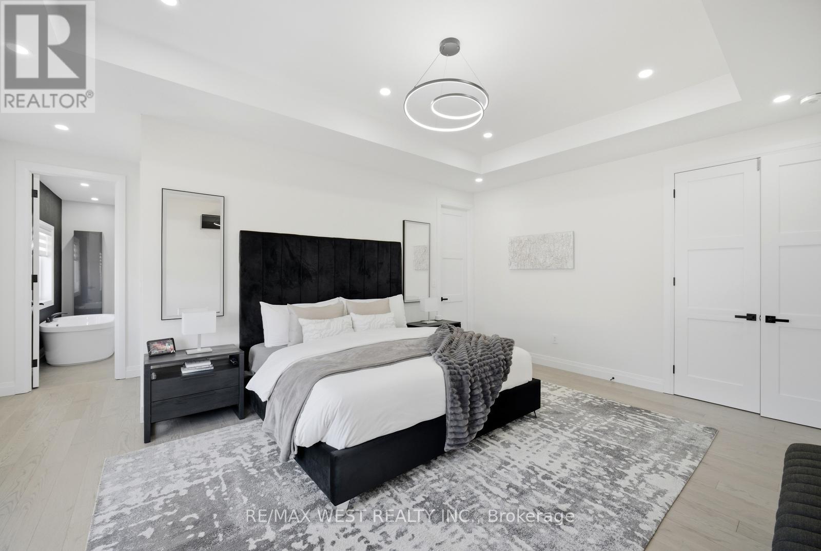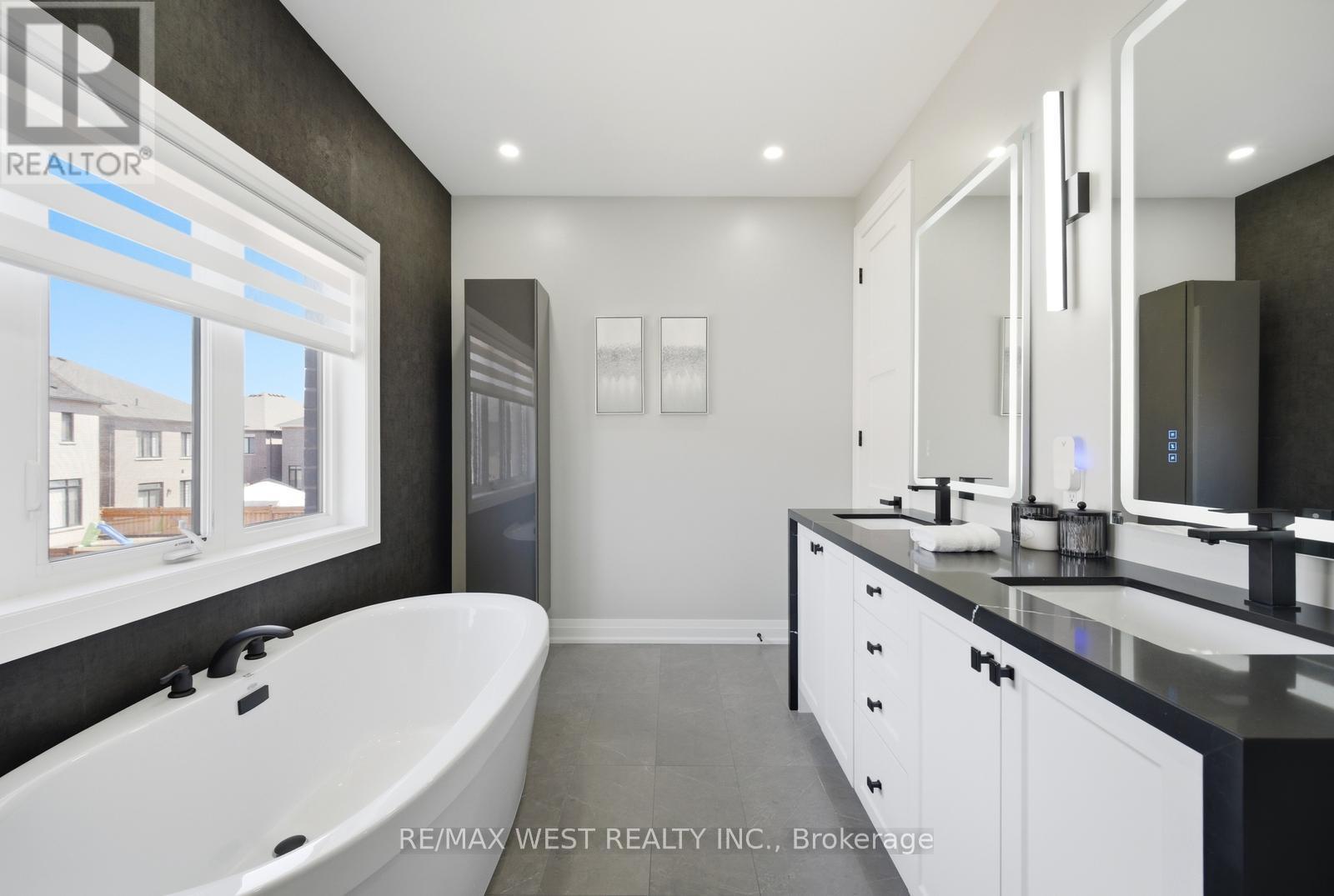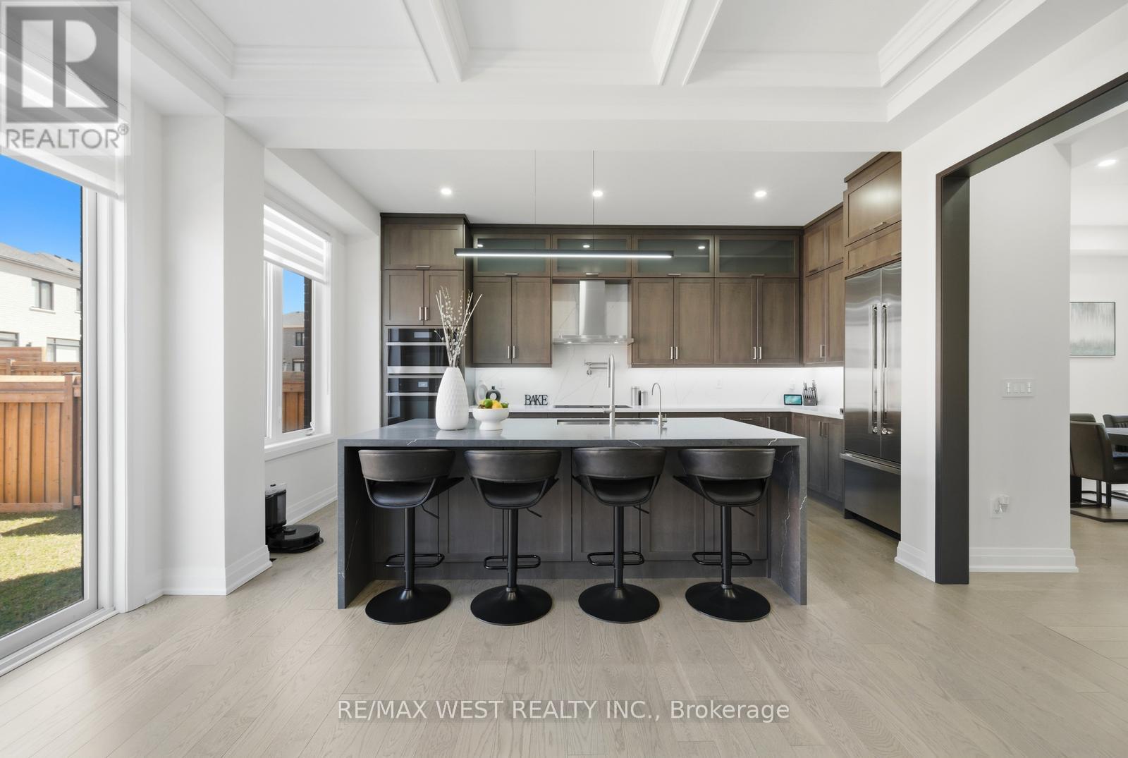 Stunning & bespoke executive detached home nestled in the highly sought-after community of Kleinburg, offering a seamless blend of transitional design and modern luxury. This residence is extensively upgraded and loaded with significant builder and custom enhancements throughout, - (pls refer to list of luxury features attached) while showcasing stunning craftsmanship, the home features upgraded hardware and elegant crown mouldings. Opulent foyer with custom chic panelled wall. Unmatched quality throughout each custom minutia, the chef-inspired dream kitchen is beautifully finished with tall upper cabinetry, a deep industrial Blanco sink, Bianco Drift Statuario custom counters, high end stainless steel Wolf and Jennair appliances, wine fridge complimented by custom Sierra stone quartz waterfall island anchoring the space. Luxury enhanced with 10 ft ceilings at main, pot lights galore, elegant recessed panelled ceilings, upgraded 8 ft doors and handles, lavish feature wall with custom linear fireplace, motorized blinds... too many high end finishes to list *pls refer to list of luxury features*The functional layout is filled with natural light and complemented by upgraded 5-inch wide plank oak hardwood floors. The main floor includes a formal dining room and a spacious living room with a fireplace, flowing seamlessly to a sun-filled composite deck with professional landscaping-creating a private outdoor oasis. Additional highlights include upgraded bathrooms, second-floor laundry with custom built-ins, and a striking upgraded stone façade. The second level offers four generously sized bedrooms, including a large primary retreat with a walk-in closet. The zen inspired primary ensuite features 1-inch countertops, upgraded freestanding tub, and a glass shower with a rain head, while the remaining bedrooms enjoy access to upgraded bathrooms designed for convenience and style. Beautifully fenced private backyard on premium lot, with custom shed great for handy storage. (id:64974)