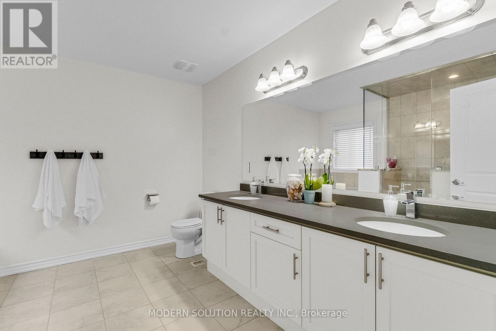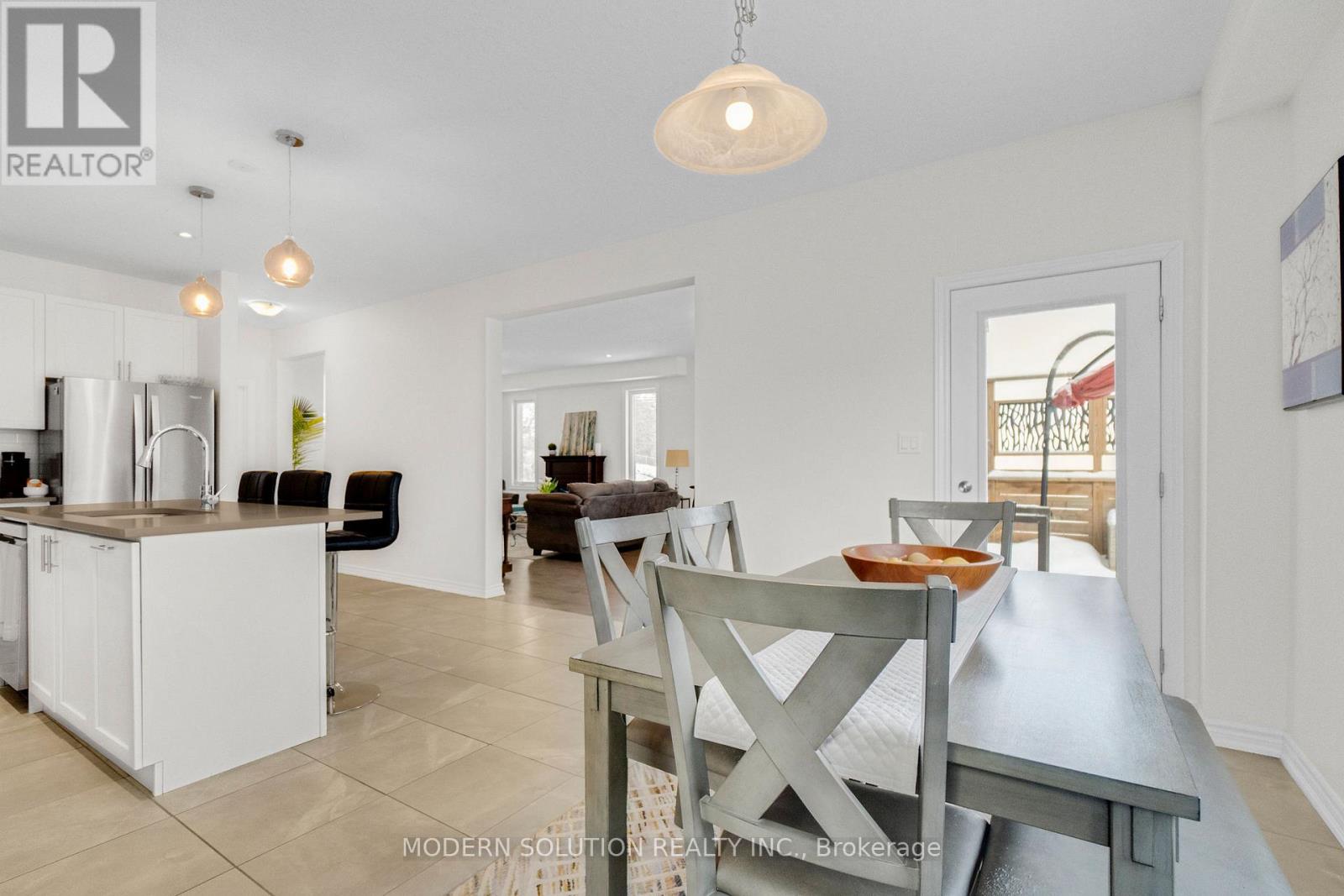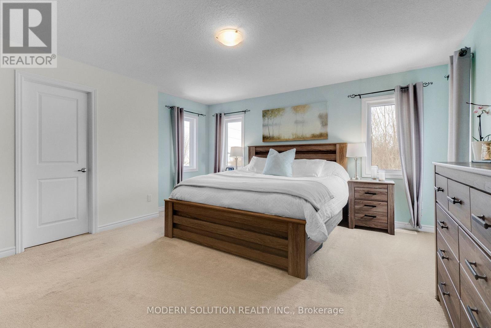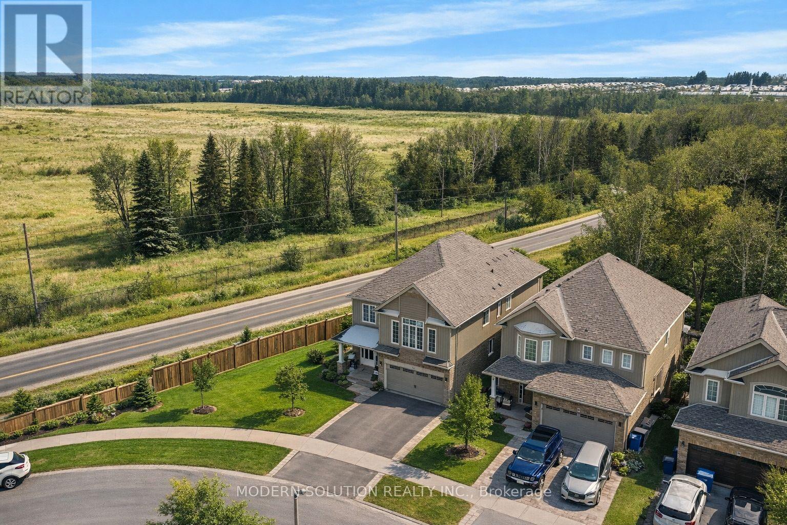 Stunning 4-bedroom home on a rare pie-shaped conservation walk-out lot backing onto a peaceful stream, forest, and walking trails, offering exceptional privacy and views in the highly sought-after Grange Hill neighbourhood of Guelph. The impressive lot features approximately 72 ft frontage with depths of 176/115 ft. Offering over 2,840 sq ft of thoughtfully designed living space plus an unspoiled walk-out basement ready to finish to your liking, complete with large windows and a bath rough-in. The open-concept main floor features 9 ft ceilings, hardwood floors, and generous living and dining areas ideal for everyday living and entertaining. The stylish kitchen offers quartz countertops, a centre island, walk-in pantry, and a bright eating area overlooking the forest. A powder room completes the main level, along with a well-designed mudroom featuring inside access to the garage, main floor laundry, and a convenient dog spa. Upstairs includes a bright family room with cathedral ceilings and pot lights, 4 spacious bedrooms including a guest room with 4-piece ensuite, and a primary retreat with walk-in closet and spa-inspired ensuite offering a large glass-enclosed tiled shower, soaker tub, double vanity, and quartz counters. Exterior highlights include a double driveway and a professionally landscaped side yard with stone stairway featuring a perennial-lined path, with over $60k invested in professional landscaping and deck; summer photos from the sellers have been added to showcase the outdoor space. Ideally located close to parks, trails, schools, shopping, public transit, and with easy access to major routes and Highway 7 for commuters, this home offers an ideal blend of nature, space, and convenience. (id:64974)