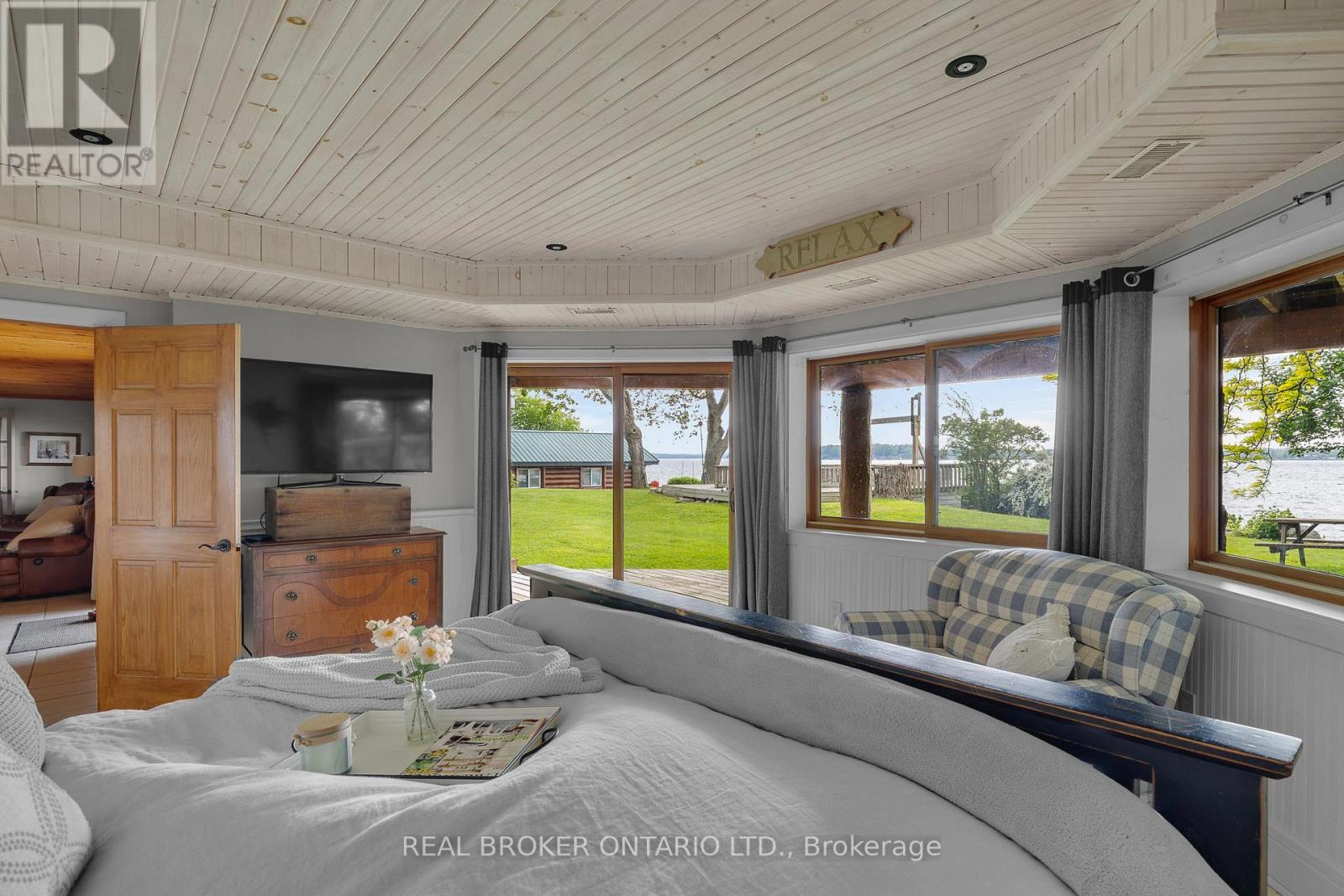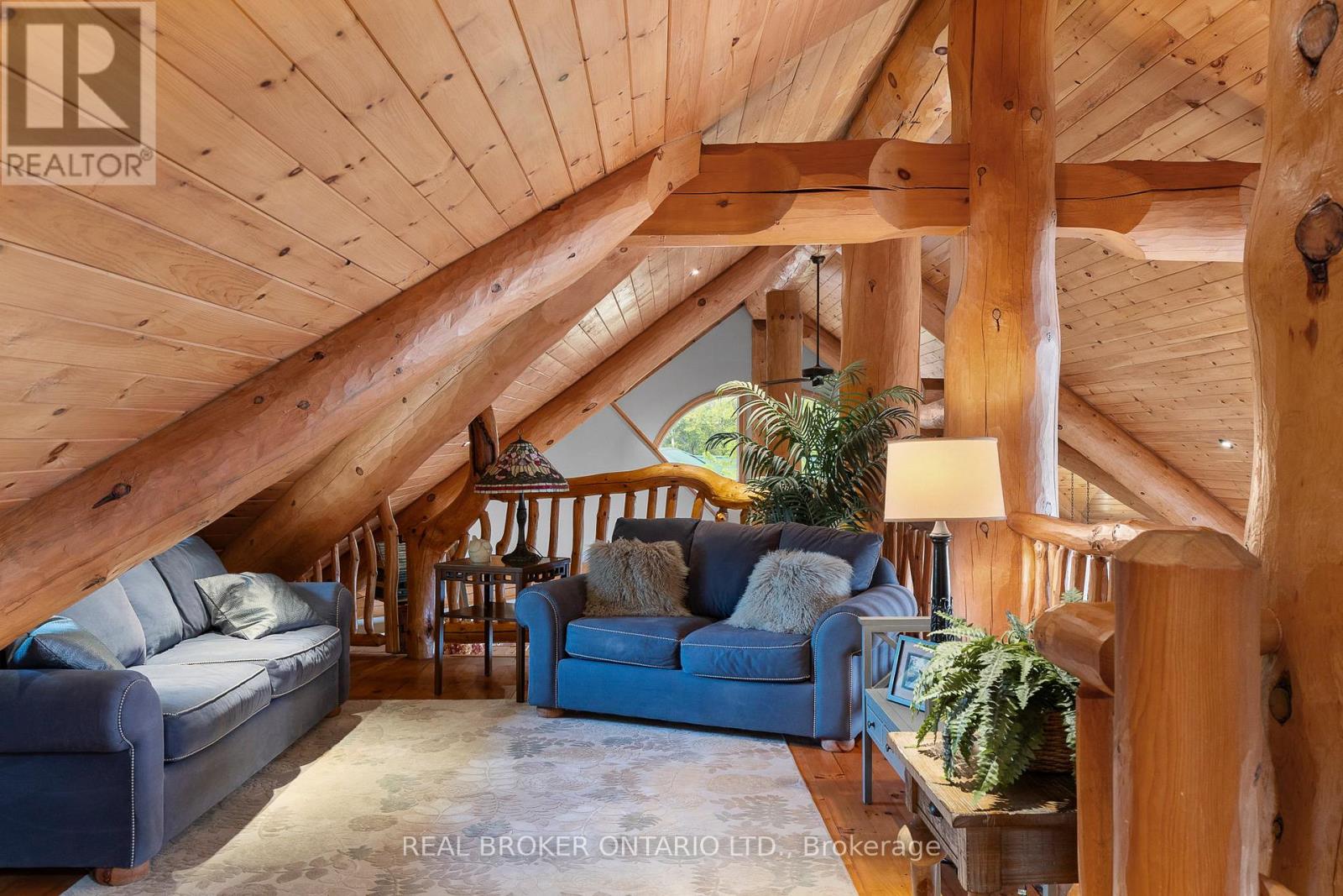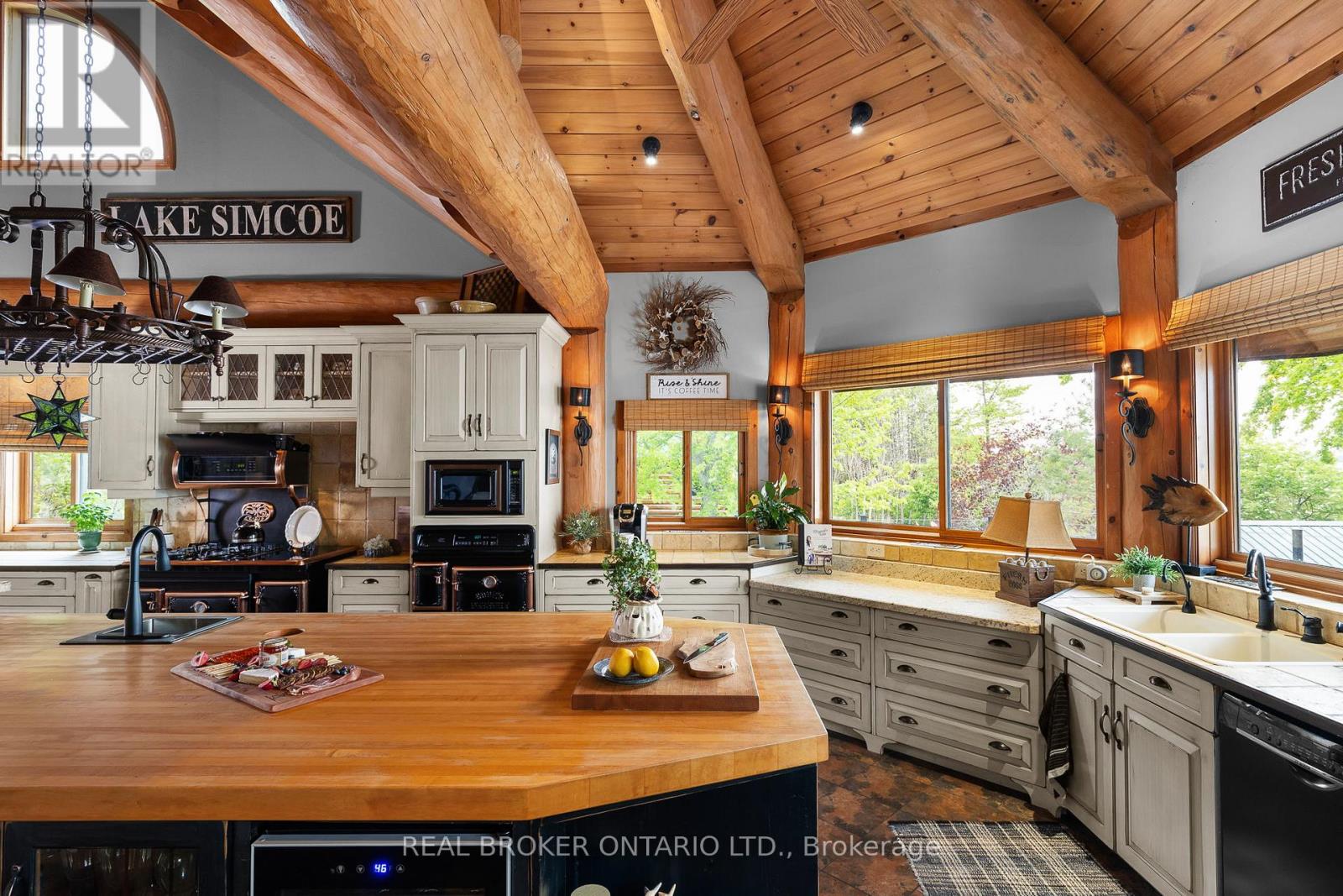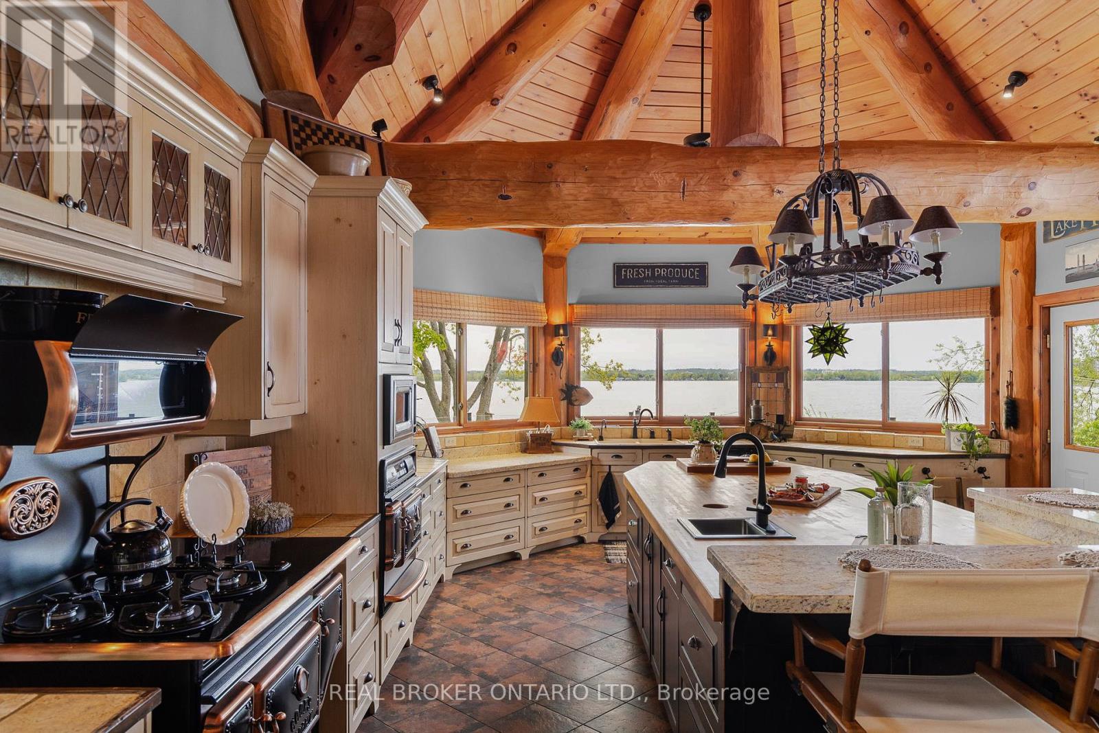Welcome to 'Four Winds', one of Orillia's most exceptional waterfront properties located on Lake Simcoe. Situated on a rare 206 feet of private shoreline, this 2005-built round log home by Moonstone Timberframe with almost 5000 square feet of finished living space, offers timeless craftsmanship, remarkable design, and panoramic lake views from nearly every room. West-facing exposure delivers unforgettable sunsets, while the setting near the narrows connecting Lake Simcoe and Lake Couchiching offers incredible access to the Trent Severn Waterway and year-round enjoyment. Inside, a 30-ft vaulted great room showcases true log construction and stunning stonework around the gas fireplace. The chefs kitchen is a showpiece with an oversized island, high-end Elmira Heritage appliances, and wraparound views of the lake. The main floor primary suite features a 5-piece ensuite, walk-in closet, in-suite laundry, and private access to the expansive glass-railed deck overlooking the lake. Upstairs, a spacious open loft currently functions as a lounge and home office, originally designed to accommodate 2 additional bedrooms and a full bathroom. The fully finished walkout basement includes in-floor heating throughout, an entertainers bar, media room, two large guest bedrooms, full bathroom with laundry hookup, and access to a screened-in porch and covered patio. At the waters edge, a 458 sq ft finished boathouse bunkie with waterfront deck offers additional guest space. The 1,289 sq ft heated garage/workshop easily stores up to a 38-ft boat plus 2 vehicles. On the water, enjoy a 60ft cantilever dock, large observation deck, boat rail system and additional floating dock. Just 10 minutes to Orillia, under an hour to Muskoka, and only an hour from the GTA, this is lakeside living at its absolute finest. See agent website for info, additional photos and floor plans. (id:64974)