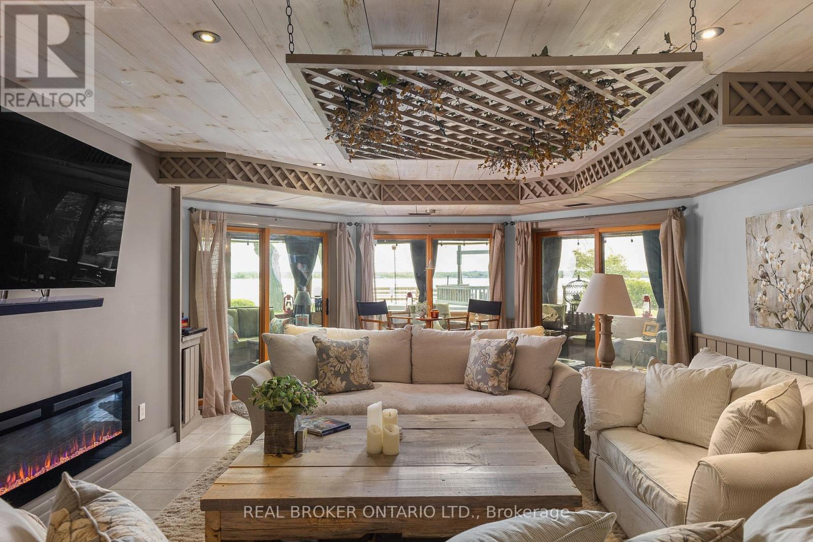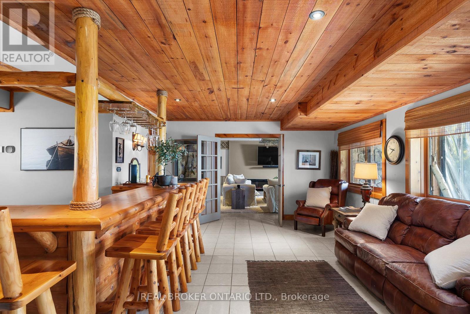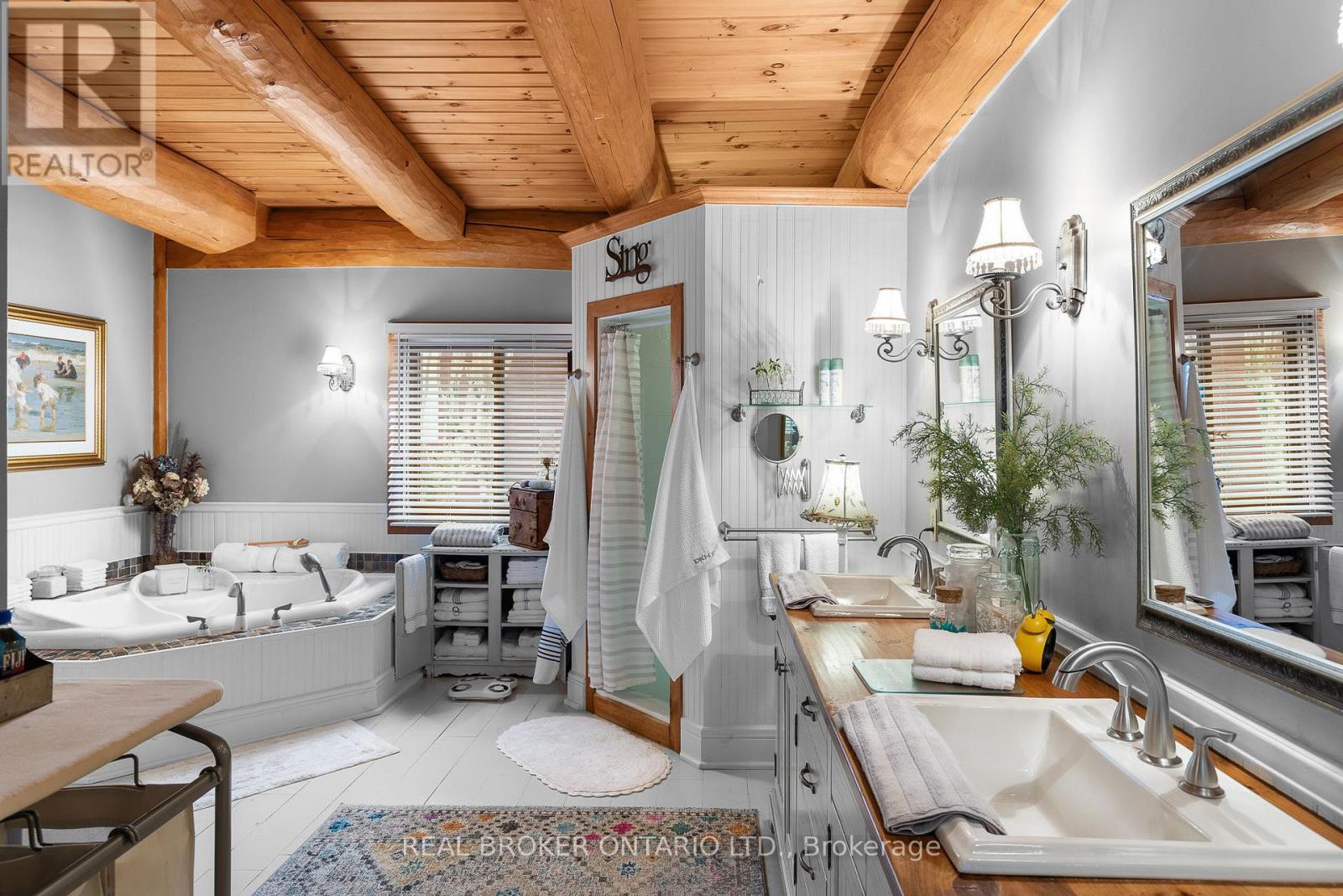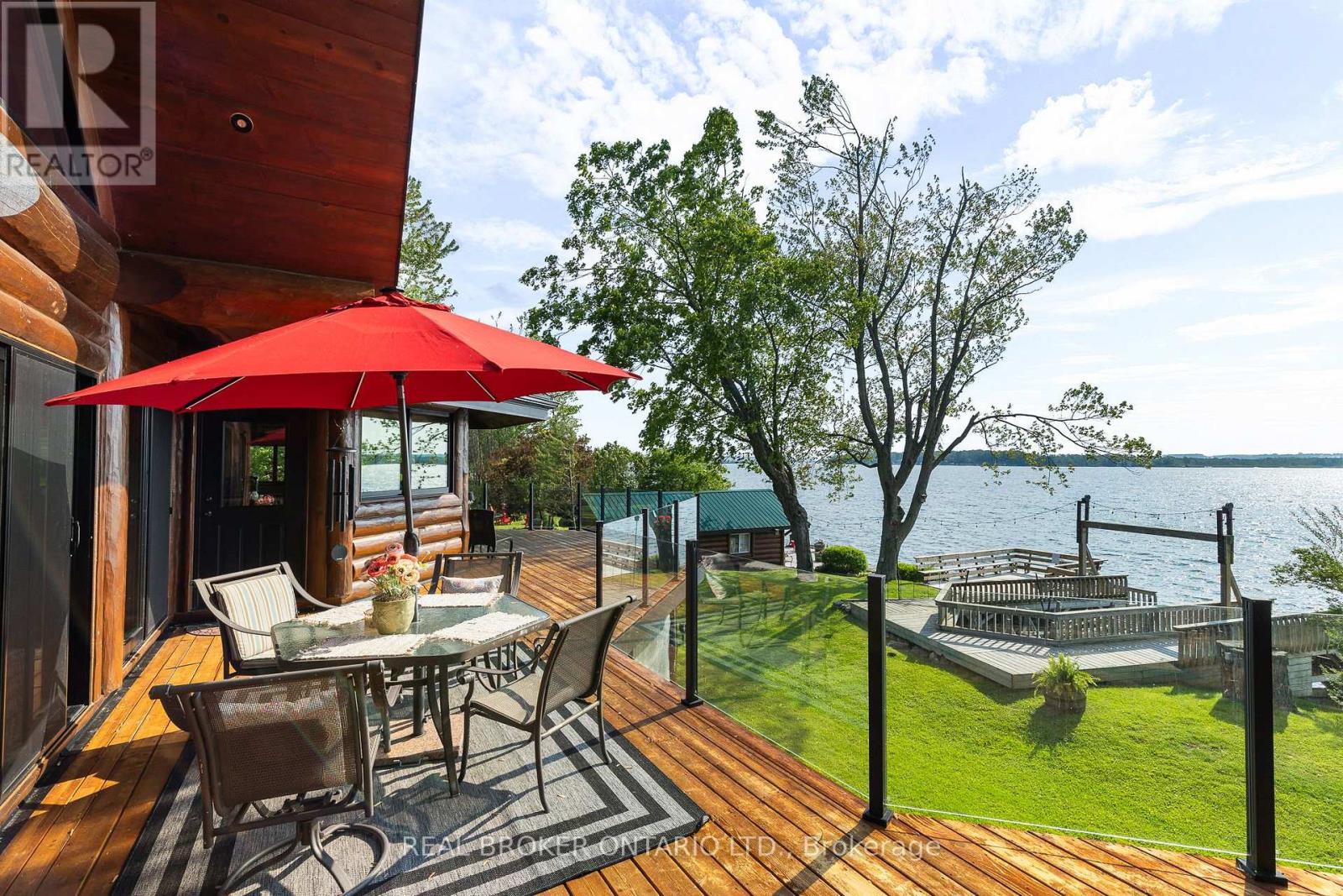 Welcome to 'Four Winds', one of Orillia's most exceptional waterfront properties located on Lake Simcoe. Situated on a rare 206 feet of private shoreline, this 2005-built round log home by Moonstone Timberframe with almost 5000 square feet of finished living space, offers timeless craftsmanship, remarkable design, and panoramic lake views from nearly every room. West-facing exposure delivers unforgettable sunsets, while the setting near the narrows connecting Lake Simcoe and Lake Couchiching offers incredible access to the Trent Severn Waterway and year-round enjoyment. Inside, a 30-ft vaulted great room showcases true log construction and stunning stonework around the gas fireplace. The chefs kitchen is a showpiece with an oversized island, high-end Elmira Heritage appliances, and wraparound views of the lake. The main floor primary suite features a 5-piece ensuite, walk-in closet, in-suite laundry, and private access to the expansive glass-railed deck overlooking the lake. Upstairs, a spacious open loft currently functions as a lounge and home office, originally designed to accommodate 2 additional bedrooms and a full bathroom. The fully finished walkout basement includes in-floor heating throughout, an entertainers bar, media room, two large guest bedrooms, full bathroom with laundry hookup, and access to a screened-in porch and covered patio. At the waters edge, a 458 sq ft finished boathouse bunkie with waterfront deck offers additional guest space. The 1,289 sq ft heated garage/workshop easily stores up to a 38-ft boat plus 2 vehicles. On the water, enjoy a 60ft cantilever dock, large observation deck, boat rail system and additional floating dock. Just 10 minutes to Orillia, under an hour to Muskoka, and only an hour from the GTA, this is lakeside living at its absolute finest. See agent website for info, additional photos and floor plans. (id:64974)