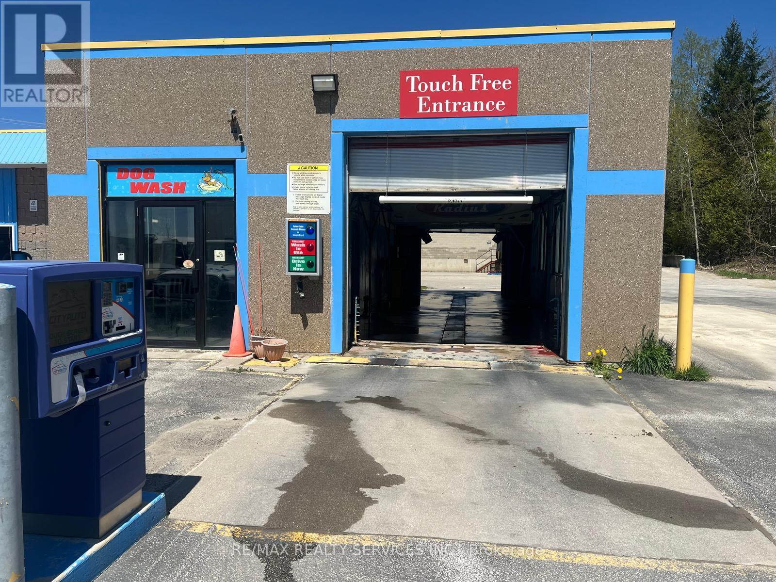 Don't miss this exceptional opportunity to own a highly profitable, fully modernized carwash-complete with property-in the heart of downtown Wingham, Ontario. Sitting on an impressive1-acre lot, this turn-key business has been transformed with over $300,000 in premium upgrades,making it one of the cleanest, most reliable operations in the region. Enjoy multiple revenue streams with 2 spotless self-serve bays, 1 oversized truck bay, and a state-of-the-art automatic touchless car wash, all outfitted with brand-new, top-tier equipment. Customers love the convenience of the dedicated dog wash station, newly installed high-suction vacuums, andmodern wireless payment systems-ensuring smooth, effortless service around the clock. Behind the scenes, every bay has been outfitted with fully updated electrical systems, providing long-term durability and peace of mind for any owner. Its prime downtown location offers unbeatable visibility, steady vehicle traffic, and close proximity to nearby amenities-driving strong and consistent customer volume. Open 24/7 and designed to operate with minimal effort,this property is perfect for hands-off investors or business owners looking to step into a thriving, low-maintenance operation with substantial future development potential. A rare,income-generating asset in a fast-growing community-opportunities like this are hard to find. (id:64974)