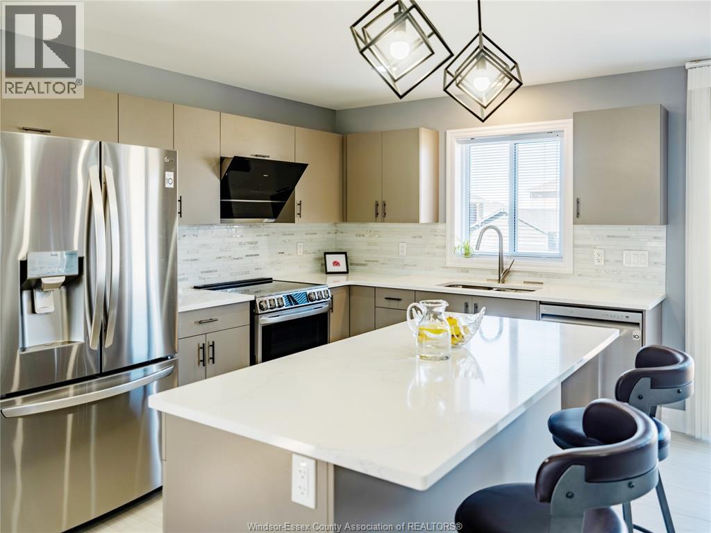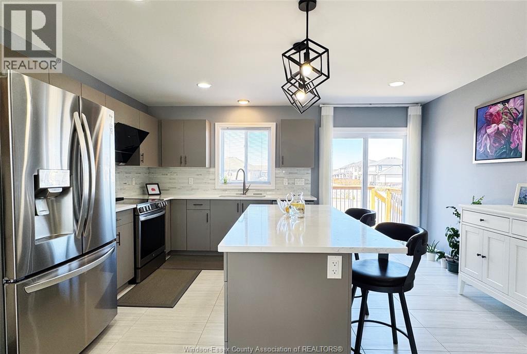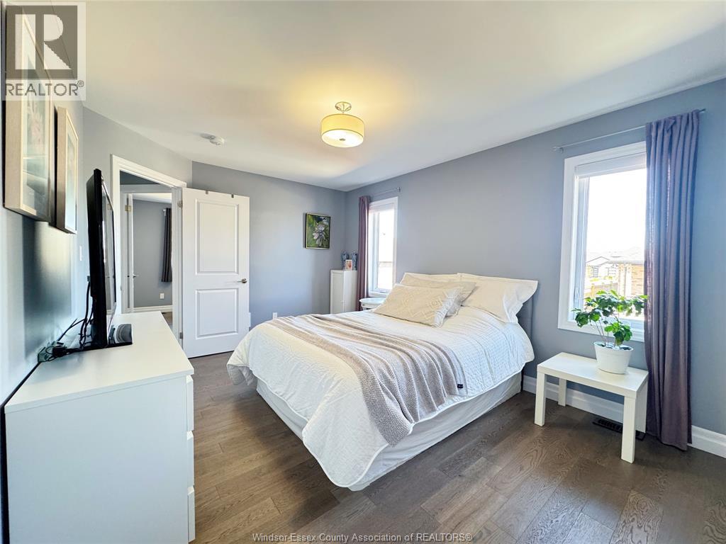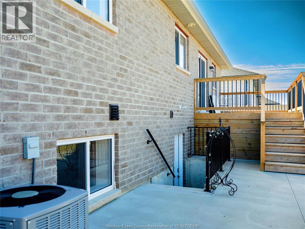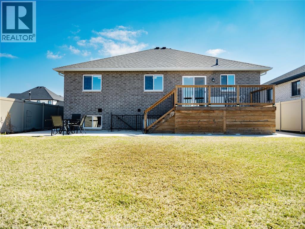 Located in the desirable Kingsbridge neighbourhood in Amherstburg, this well-maintained 2021 raised ranch by PC Custom Homes offers modern living with built-in income potential. Featuring 3+2 bedrooms and 3 full baths, including a primary ensuite, the main level boasts hardwood flooring and a bright open-concept layout with a stylish kitchen, dining area, and access to a fenced, landscaped backyard. Enjoy a rare open rear view with no direct neighbours behind. The fully finished lower level includes a separate entrance, second kitchen, family room, 2 bedrooms, full bath, and laundry—ideal for extended family or rental use. Currently tenanted at $1,800/month. Conveniently located near schools, parks, shopping, and historic downtown Amherstburg. Still under new home warranty for added peace of mind. (id:64974)