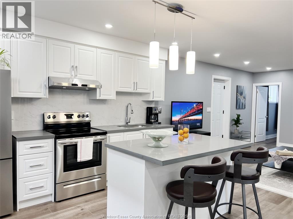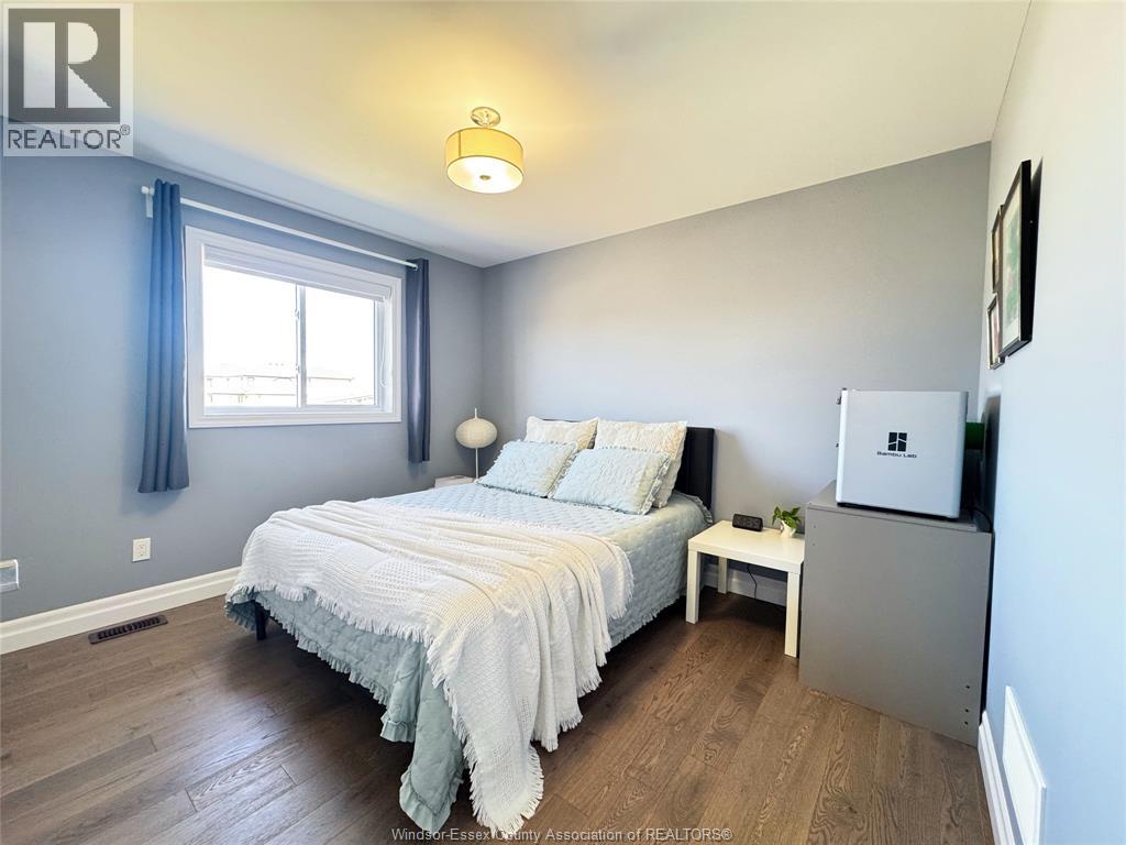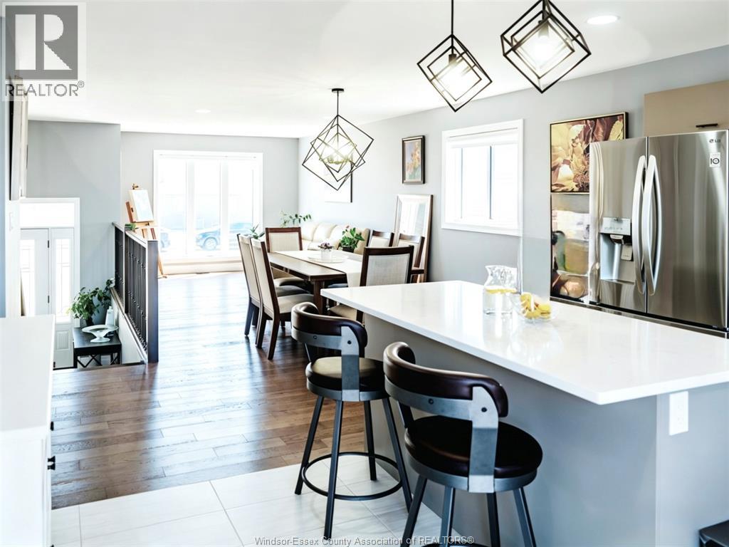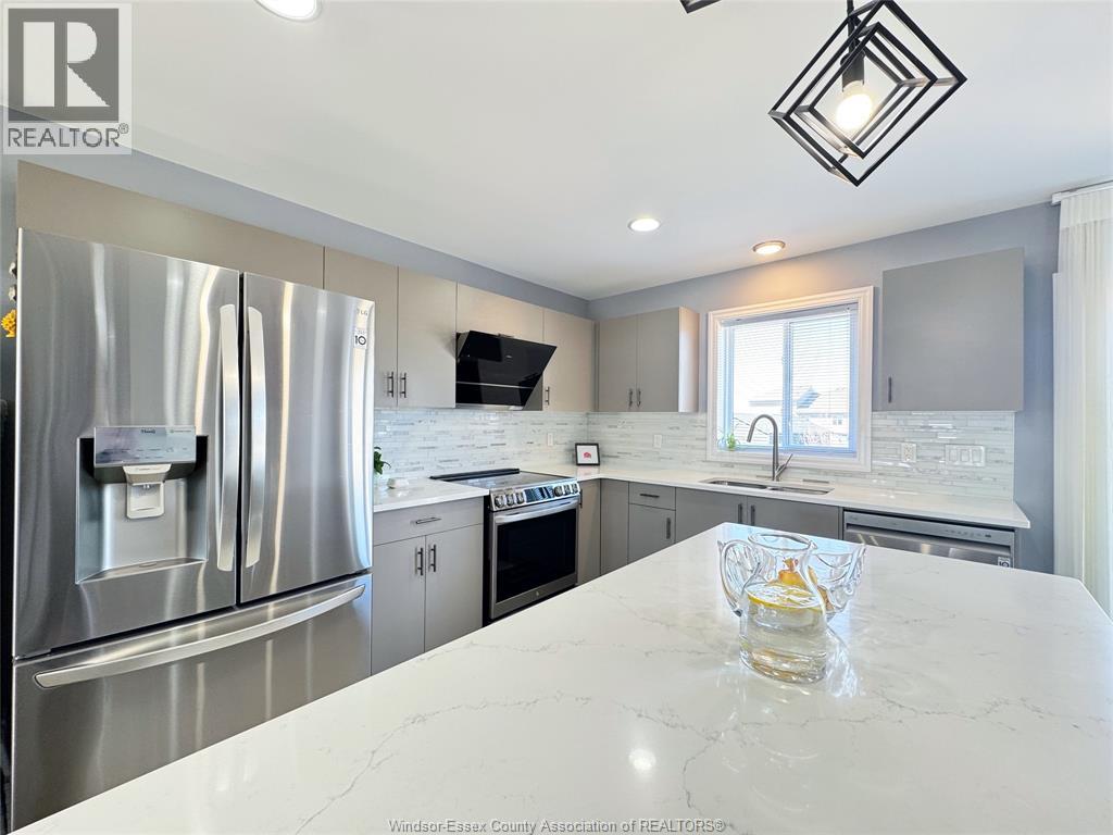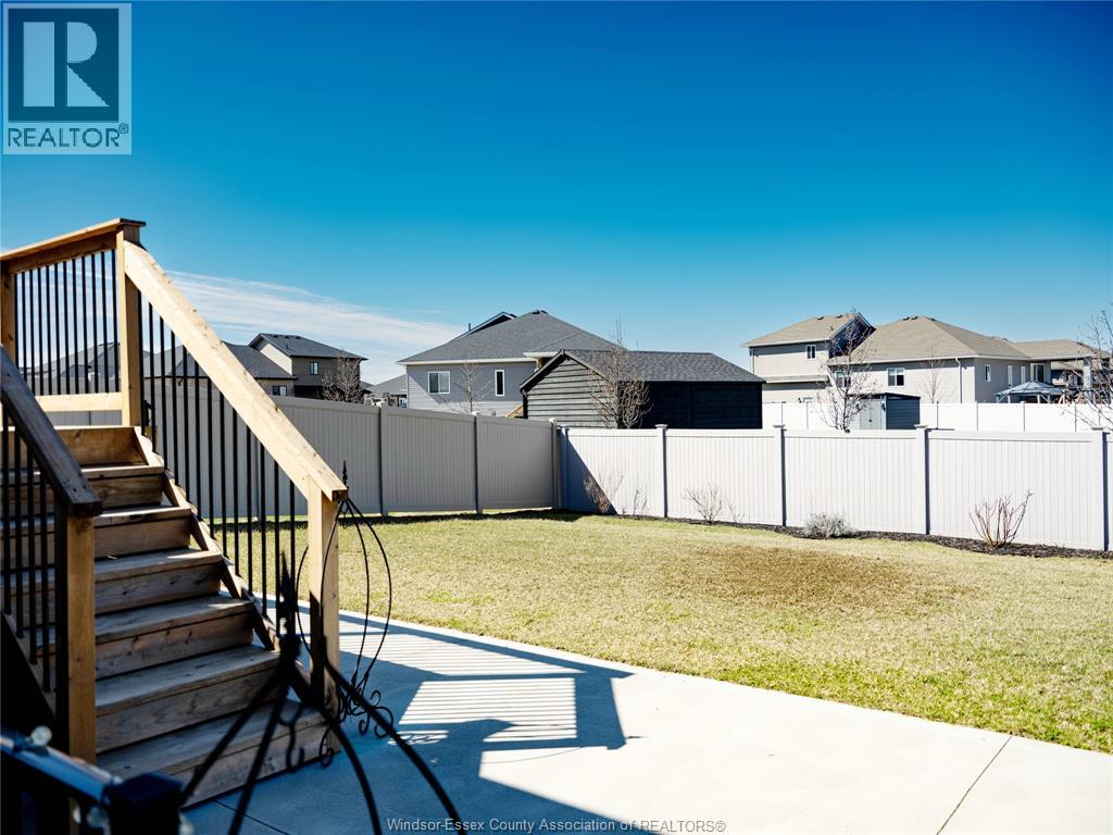 Located in the desirable Kingsbridge neighbourhood in Amherstburg, this well-maintained 2021 raised ranch by PC Custom Homes offers modern living with built-in income potential. Featuring 3+2 bedrooms and 3 full baths, including a primary ensuite, the main level boasts hardwood flooring and a bright open-concept layout with a stylish kitchen, dining area, and access to a fenced, landscaped backyard. Enjoy a rare open rear view with no direct neighbours behind. The fully finished lower level includes a separate entrance, second kitchen, family room, 2 bedrooms, full bath, and laundry—ideal for extended family or rental use. Currently tenanted at $1,800/month. Conveniently located near schools, parks, shopping, and historic downtown Amherstburg. Still under new home warranty for added peace of mind. (id:64974)