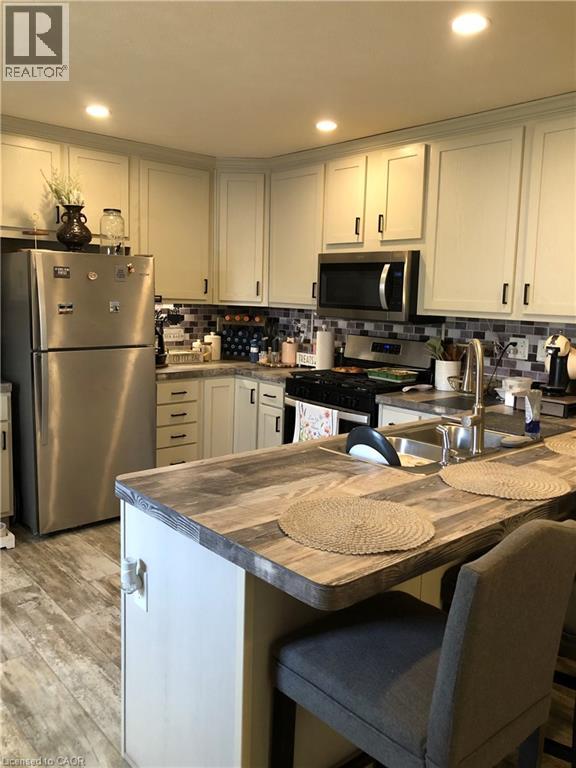 Welcome to this modern 2023 park home in the sought-after Twin Springs community, just minutes from Burford. Offering bright, open-concept living, this well-appointed home features a stylish kitchen with a large centre island, floor-to-ceiling pantry, and stainless steel appliances overlooking the living and dining area. The home includes a spacious primary bedroom, one additional versatile bedroom, and a full 4-piece bathroom. Enjoy outdoor living on the newly built extended treated wood deck, complete with a convenient storage shed. A rare oversized parking pad provides four dedicated parking spaces, an exceptional feature for the community. Residents of Twin Springs enjoy access to a spring-fed lake, sandy beach, and community events, all conveniently located near Brantford and Highway 403. (id:64974)