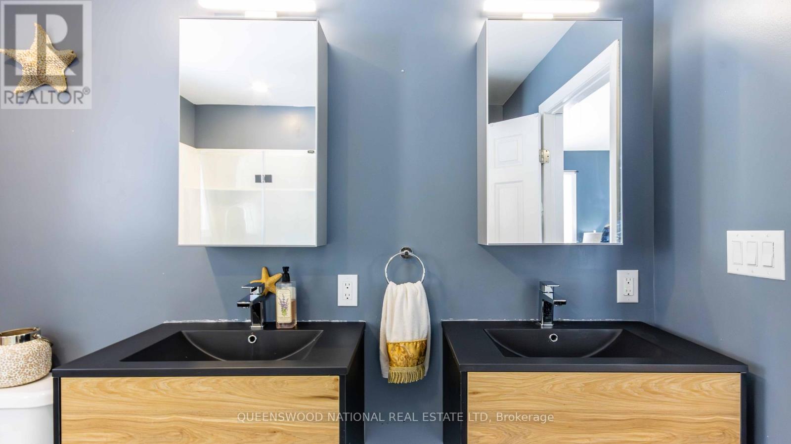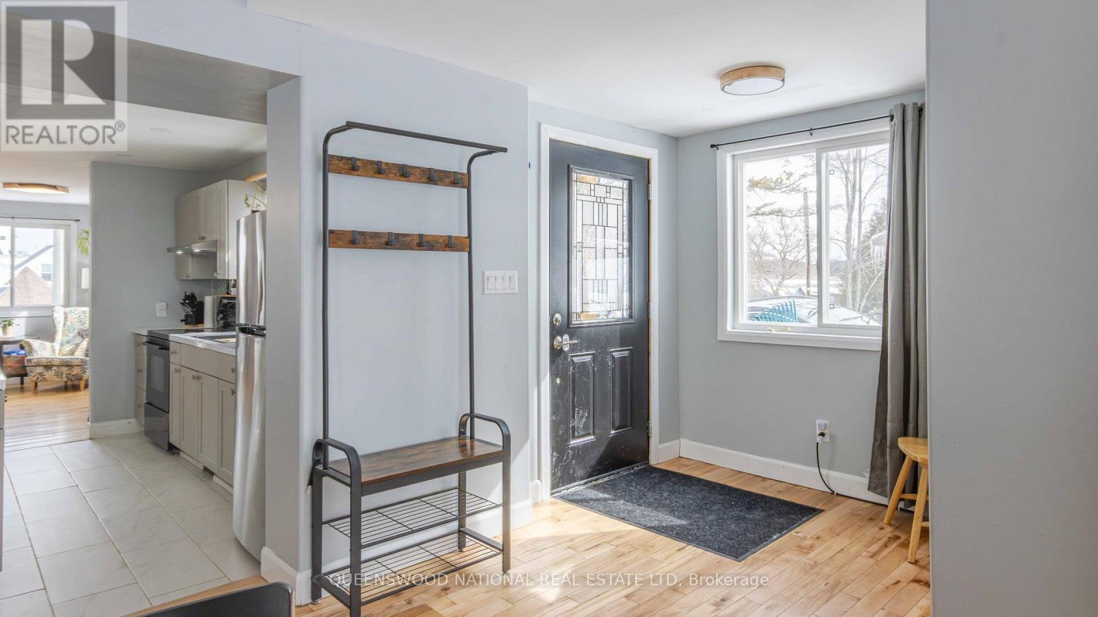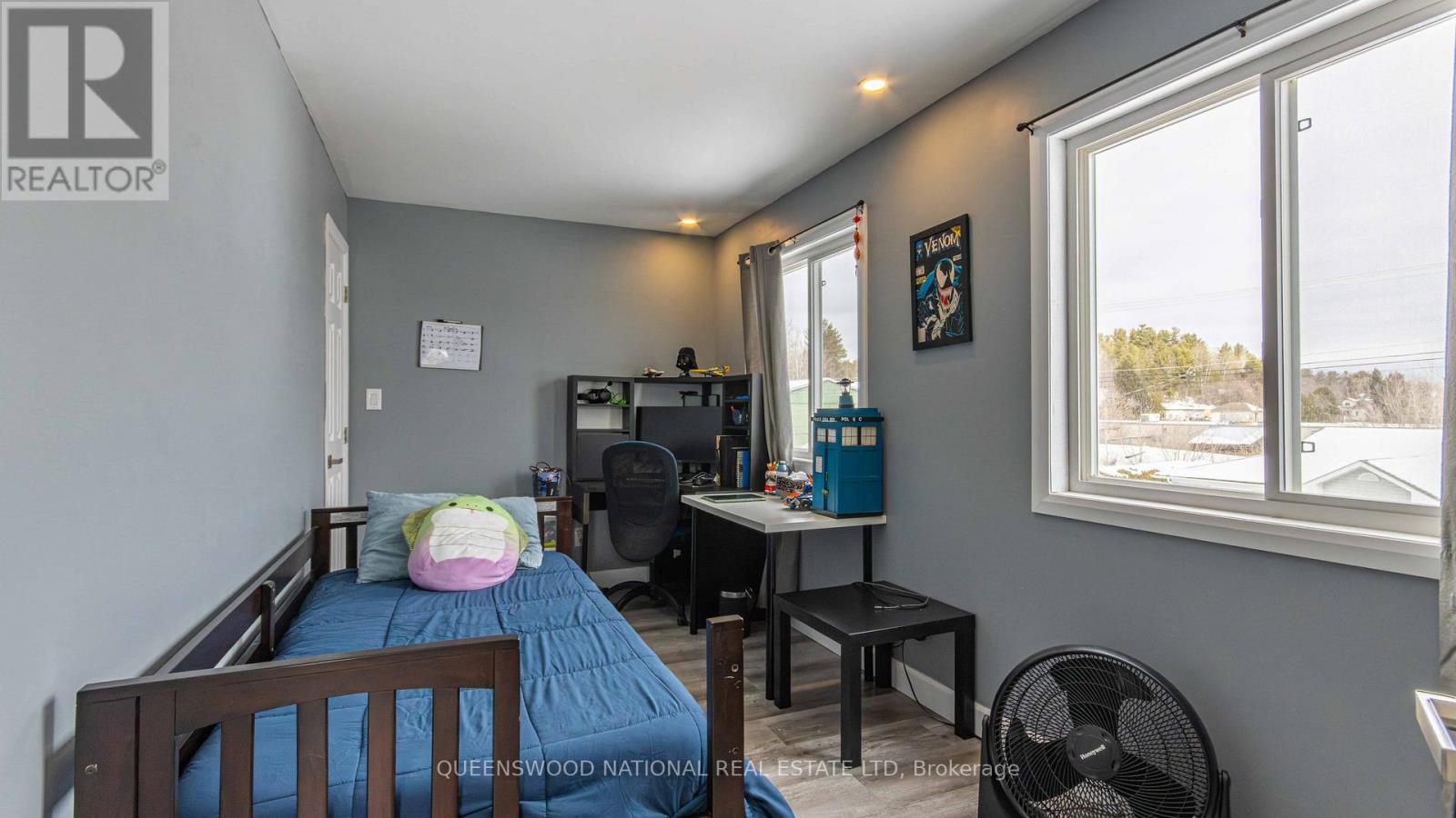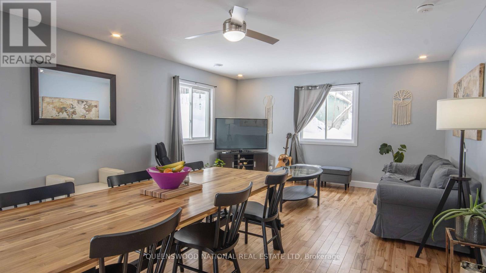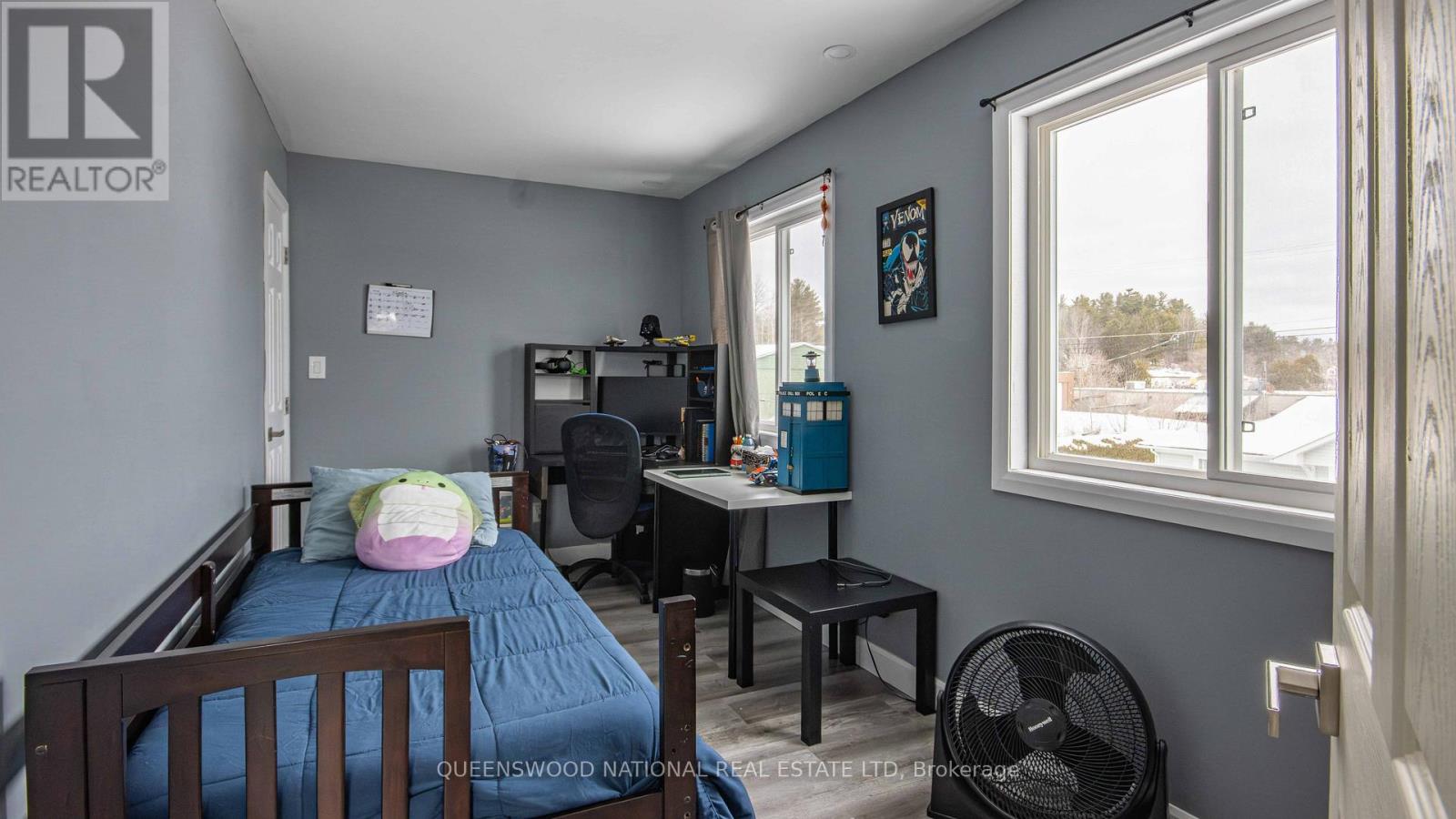Welcome to your nearly-new sanctuary in the heart of Barry's Bay, where modern elegance meets the tranquility of nature. This meticulously fully renovated home offers the pristine feel of a new build, boasting two separate living spaces on the main floor separated by a chef-inspired kitchen-a layout ideal for large family gatherings. This culinary heart features a large kitchen island, expansive quartz countertops, and oversized ceramic tiles, while high-end hardwood and premium laminate flooring flow throughout the remainder of the home. Sliding doors lead from the main living area to a private retreat that backs onto a lush, tree-lined greenspace, all while being just steps away from the local hospital, library, boutique shopping, and dining. Designed for effortless living, the main floor also includes a convenient laundry room, a substantial walk-in storage closet, and a stunning oak staircase leading to the upper level.The upper level is thoughtfully designed for a growing family with four bedrooms in total, including three practical bedrooms and an expansive master suite that serves as a true showstopper. This primary retreat offers dramatic vaulted ceilings, a large walk-in closet, and a four-piece dream ensuite complete with double sinks. A versatile bonus nook on the upper level provides the perfect spot for a home office or quiet reading corner, adding to the home's functional layout. With three stylish bathrooms in total and the comfort of a high-efficiency forced-air propane furnace, every inch of this home has been optimized for quality and convenience. This is a rare opportunity to own a sophisticated, move-in-ready home that perfectly balances small-town charm with contemporary luxury. Furnace, roof, water heater, electrical and plumbing all newer 2022 (id:64974)