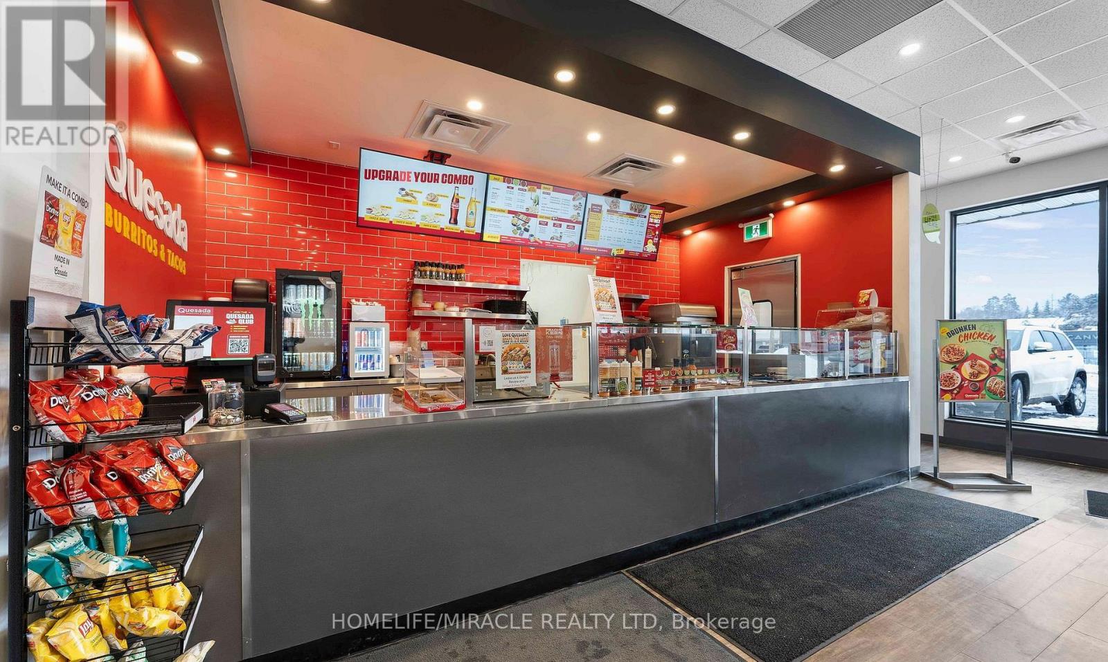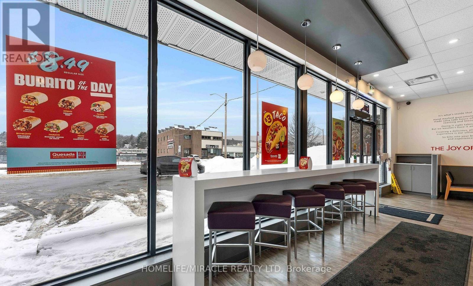 Be Your Own Boss - An Exceptional Opportunity in a Prime Location! Welcome to a rare chance to own and operate your own business in the heart of Huntsville. This fully equipped, turnkey Quesada setup is located in a high-traffic commercial hub, offering outstanding visibility and strong growth potential. The space features modern finishes, quality flooring, a beautifully designed retail storefront, a comfortable seating area, and an accessible washroom, making it ready for immediate operation. Additionally, an ice cream parlor setup is available at an extra cost-perfect for expanding your offerings or launching a new concept. Whether you continue with the existing brand or bring your own business idea to life, this versatile location is set up for success. Don't miss this opportunity to take control of your future and be your own boss today! (id:64974)