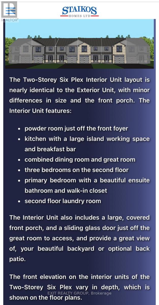 Brand new built two-storey brick townhome with 2000 sq ft by award winning Staikos Homes. We set out to create a townhome that gives families the space they need. Purchasing a townhome should not mean having to give up space. This new design has a main floor with wide open space and offers enough space for comfortable living. Upstairs we have included three oversized bedrooms. This includes the spacious primary suite with a large ensuite and walk-in closet. The layout also includes one of the most popular items, the second-floor laundry room. Located in the south after community Canniff Mill Estates. Canniff Mill Park located in the center of the community. Thurlow Dog Park located on the outside of the Community on the south end. Nature walking trail alongside the Moira River located at the east end of the community. Minutes to shopping, restaurants, golf courses, grocery stores & the 401. Harmony Public school district with bus pickup and drop off in the subdivision. Some interior photos are samples of Staikos homes previous townhomes. Buyer can choose all their own interior finishes. Paved driveway, walkway, back deck and rear lot line privacy fence to be completed by the builder. (id:64974)