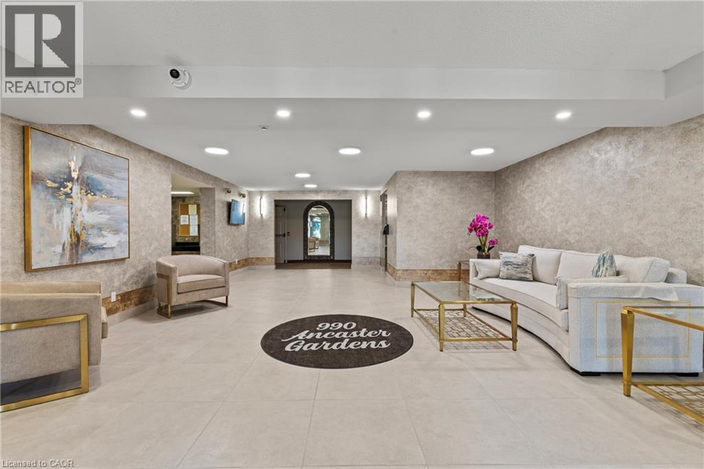 Welcome to Unit 301 at 990 Golf Links Road — where comfort, space, and convenience come together in one of Ancaster’s most beautifully maintained condo buildings. This spacious 2-bedroom, 2-bathroom unit feels more like a bungalow than a condo, offering a layout that’s both functional and inviting. Step inside to a large foyer and notice the wide plank luxury vinyl floors (2024) that flow seamlessly throughout the home. Sunlight pours in through oversized west-facing windows, offering calming views of the lush greenery that surrounds the complex — a rare and peaceful backdrop. The kitchen features granite countertops, stainless steel appliances, and a charming dinette with a picture window looking out to nature. The gas fireplace adds warmth to the living space, while the formal dining room provides the perfect setting for hosting family and friends. Step out onto the extra-large balcony and enjoy the natural scenery — a perfect spot to relax and unwind. The primary bedroom retreat includes two closets, access to the balcony, and a spacious ensuite with double sinks. You’ll also find in-suite laundry, plenty of storage, and an owned parking space right next to the elevator, plus a private locker and ample visitor parking. This quiet, meticulously cared-for building also offers a car wash bay, workshop, and party room — and the location couldn’t be more convenient. You're just steps to shops, restaurants, grocery stores, public transit, and quick highway access, making daily errands and weekend outings effortless. Enjoy low-maintenance living in a vibrant yet peaceful setting — welcome to your next chapter in Ancaster. (id:64974)