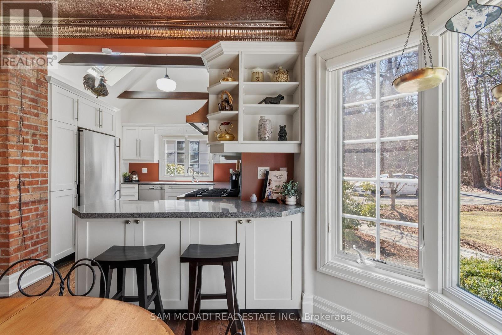 Welcome To 990 Roper Ave, A Truly Special Century Home In Lorne Park Estates, One Of Mississauga's Most Historic & Coveted Lakeside Enclaves. Built Over 100 Years Ago, This 4 Bedroom Residence Offers History, Charm & A Rare Opportunity To Own A Property With True Character. Far From Cookie Cutter, It Is Filled With Timeless Details Including Hardwood Floors, Exposed Brick, Classic Bay Windows & 2 Fireplaces, Creating A Space That Feels Inviting, Memorable & Full Of Character. The Main Floor Offers Generous Principal Rooms, A Warm & Welcoming Atmosphere & An Updated Eat-In Kitchen Featuring Cathedral Ceilings, Rustic Beams, Skylights & Breakfast Bar, Along With A Sunroom That Brings In Natural Light & Views Of The Backyard. Upstairs, 4 Bdrms Enjoy Oversized Windows, Natural Light & Peaceful Views, Adding To Its Storybook Appeal. Outside, Professionally Landscaped Grounds, Interlock Brick Pathways, Patio & Outdoor Dining Area Create A Serene Setting. Thoughtfully Maintained Over The Years, It Also Features A Newer Roof (appr. 2020) & Updated Sunroom Windows & Doors, 2021 & Much More. This Is A Place For Buyers Who Appreciate Individuality & Character, Over The Ordinary. Ideally Located In Exclusive Lorne Park Estates On A Quiet Private Road Near The Shores Of Lake Ontario & Close To Excellent Schools, Parks, Trails & Amenities, This Unique Community Also Offers Ownership Of Resident Amenities Including A Park, Tennis Courts, Playground, Beach Access & Maintained Roads. An Incredible Chance To Be A Part Of This Beautiful Neighborhood. *See Feature Sheet Attached* (id:64974)