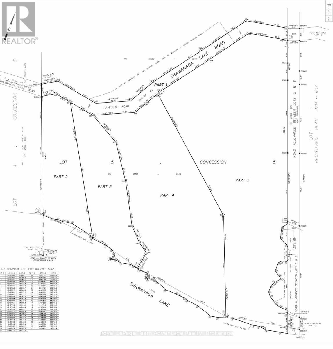 Discover an exceptional waterfront opportunity with 319 feet of coveted south-exposure shoreline offering all-day sun and sparkling lake views. This gently sloping 3 plus acre lot provides easy access to the water and an ideal topography for future building plans. A driveway is already in place along with a 27-foot trailer and multiple sheds giving you immediate functionality while you plan your dream build. A cleared area is ready for construction saving you time and expense as you move forward with your vision. Hydro is located approximately 700 feet east of the lot and seasonal road maintenance ensures reliable access. Whether you're looking to build now or secure a premium shoreline investment for the future this property delivers privacy, sunlight and potential in equal measure. Water. Sun. Opportunity. Build your legacy here. (id:64974)