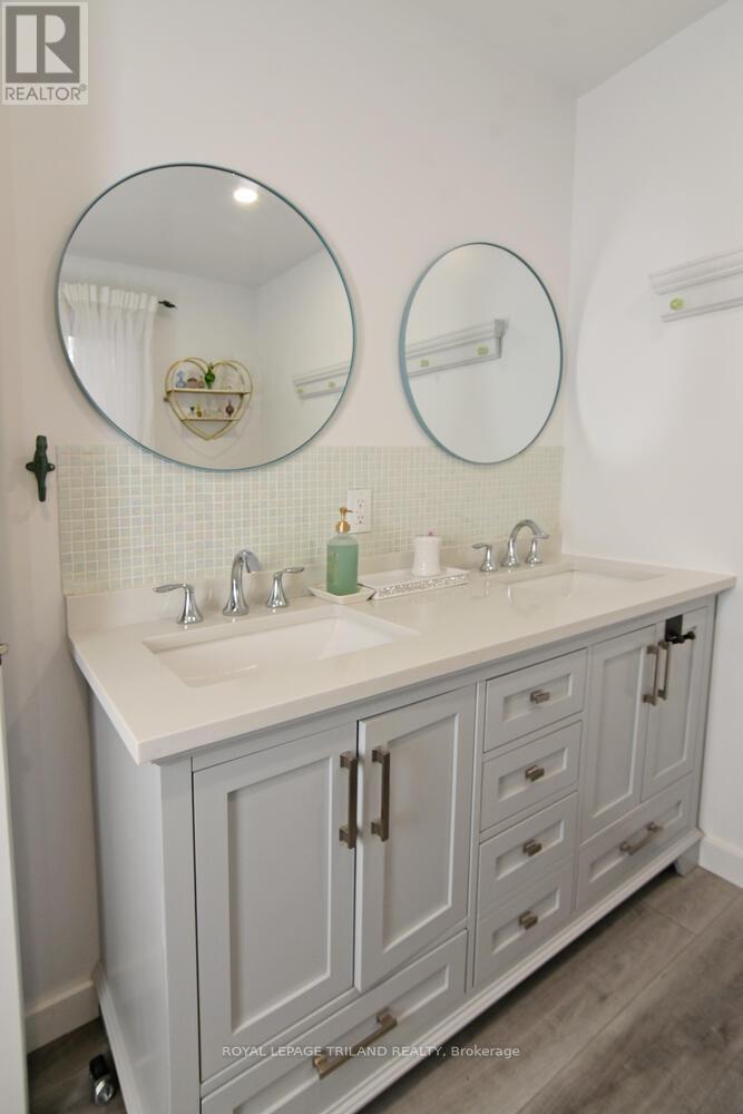 LAKEVIEW - Four season home. Built in 2021 with 4 bedrooms / 2.5 baths. Attached insulated double car garage. Enter at ground level into a foyer with 10ft ceilings, bedroom with walkout (currently used as a fitness room), another bedroom, 2pc bath and laundry/furnace room. Upstairs, you'll find open concept kitchen / dining / living room with vaulted ceilings. Kitchen boasts black stainless steel appliances, soft close cupboards and an island with seating. Don't miss the large pantry with barn door. Sliding doors from the living room and dining room lead to a covered balcony with a view of Lake Huron and it's stunning sunsets. Primary bedroom includes a walk in closet and a luxurious 4pc ensuite. Across the hall, you'll see the 4th bedroom and 3pc hall bathroom. LVP flooring throughout. Indoor features include the forced air propane furnace, HRV and the hot water tank is owned. Great yard with no one living behind you. Outdoor features include the metal roof, storage shed and firepit. Land lease will be $4500 per year. Band fees were $1653/year in 2025. Conventional mortgages are not available...must have cash to purchase. Buyers must have current police checks and proof of insurance before closing. Home cannot be rented out. Seller will have septic pumped out and inspected to meet band requirements before closing. Close to golf, restaurants, shopping and of course the beautiful Ipperwash Beach. (id:64974)