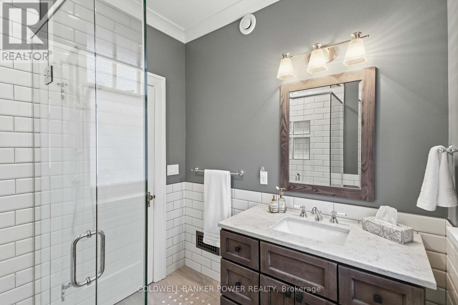 Beautifully restored throughout with the finest of materials. This 4 bedroom (2 main + 2 upstairs) home will NOT disappoint as you can just move in and enjoy. Charming front porch and large private and fully fenced rear yard with rear patio and single car garage. Extensively renovated from top to bottom including new custom Cardinal kitchen with quartz counters, lighted glass cabinets and extended side cupboard...plenty of storage space. Both bathrooms completely gutted and restored including century claw foot tub and heated floor in upper bathroom, stunning hardwood floors throughout...no carpet. Cozy living room with gas fireplace. High ceilings and baseboards. New garage roof in 2012, updated furnace and central air in 2012, aggregate concrete double driveway, sidewalk and rear patio. Garage floor has newer concrete. Updated city sewer connection (sleeve) in 2020 when driveway completed. Lead water line replaced to home and new water line installed as well. Updated electrical on 200 amp breaker (no knob and tube). Updated plumbing. Updated cellulose insulation in attic. New furnace motor in 2022. Prior listing from 2010 says "new roof with 40 year shingle" and "new eavestroughs". You don't want to miss this opportunity! (id:64974)