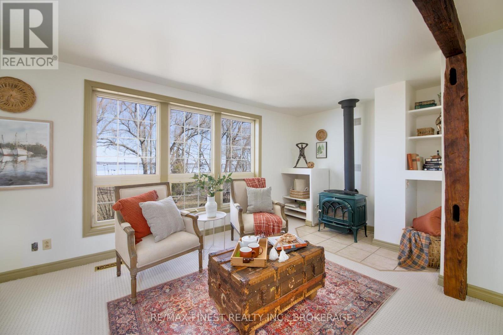 Welcome to 9910 Front Road on Amherst Island-where lakefront living meets timeless charm. This well-maintained board and batten farmhouse sits on 1.3 acres with 240 feet of level, accessible shoreline along the peaceful North Channel of Lake Ontario. Lovingly updated in 2002 and freshly painted with new Berber carpet, the home offers a thoughtful balance of character and comfort. Inside, you'll find 1,844 square feet of functional living space, including 2 bedrooms, 2 full bathrooms, and a flexible office or den that could serve as a third bedroom. The spacious main floor primary suite provides convenience and privacy, while the open-concept kitchen, dining, and living areas are well suited for everyday living and entertaining, with views toward the water and gardens. The second floor offers additional flexibility, with a large bedroom, full bathroom, and a generous lounge area that could be reconfigured to create an additional bedroom, guest suite, or workspace. Outside, the landscaped grounds feature mature trees, perennial gardens, and level access to the water-ideal for swimming, kayaking, or relaxing along the shoreline. A single-car garage with inside entry and ample storage adds to the home's practicality. Located just a short ferry ride from Millhaven, Amherst Island is known for its welcoming community, natural beauty, and quieter pace of life-offering a unique opportunity to enjoy waterfront living within easy reach of Kingston (id:64974)