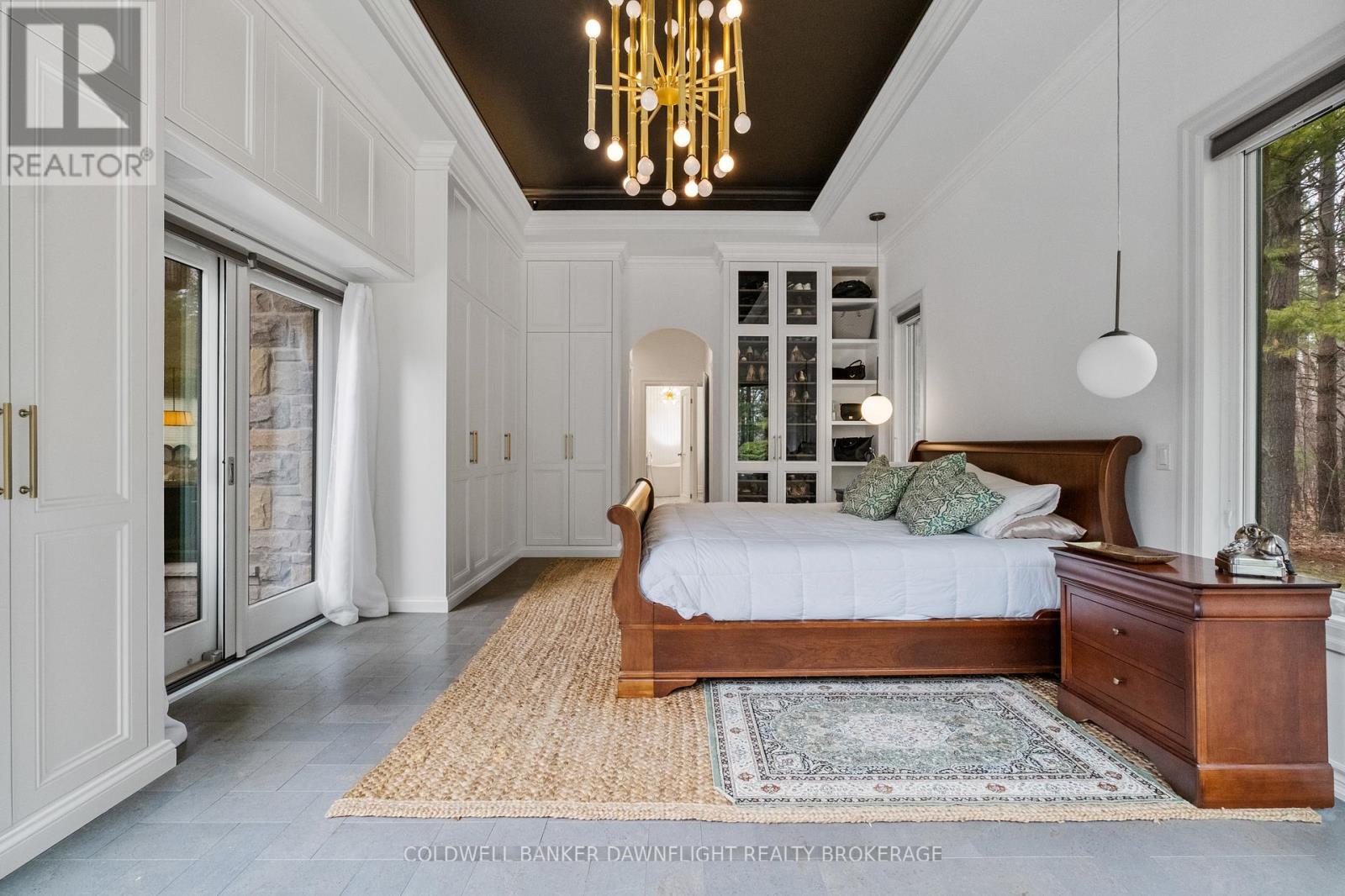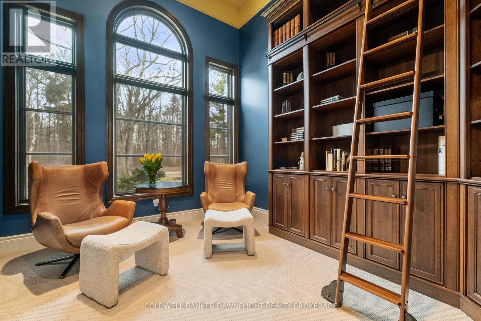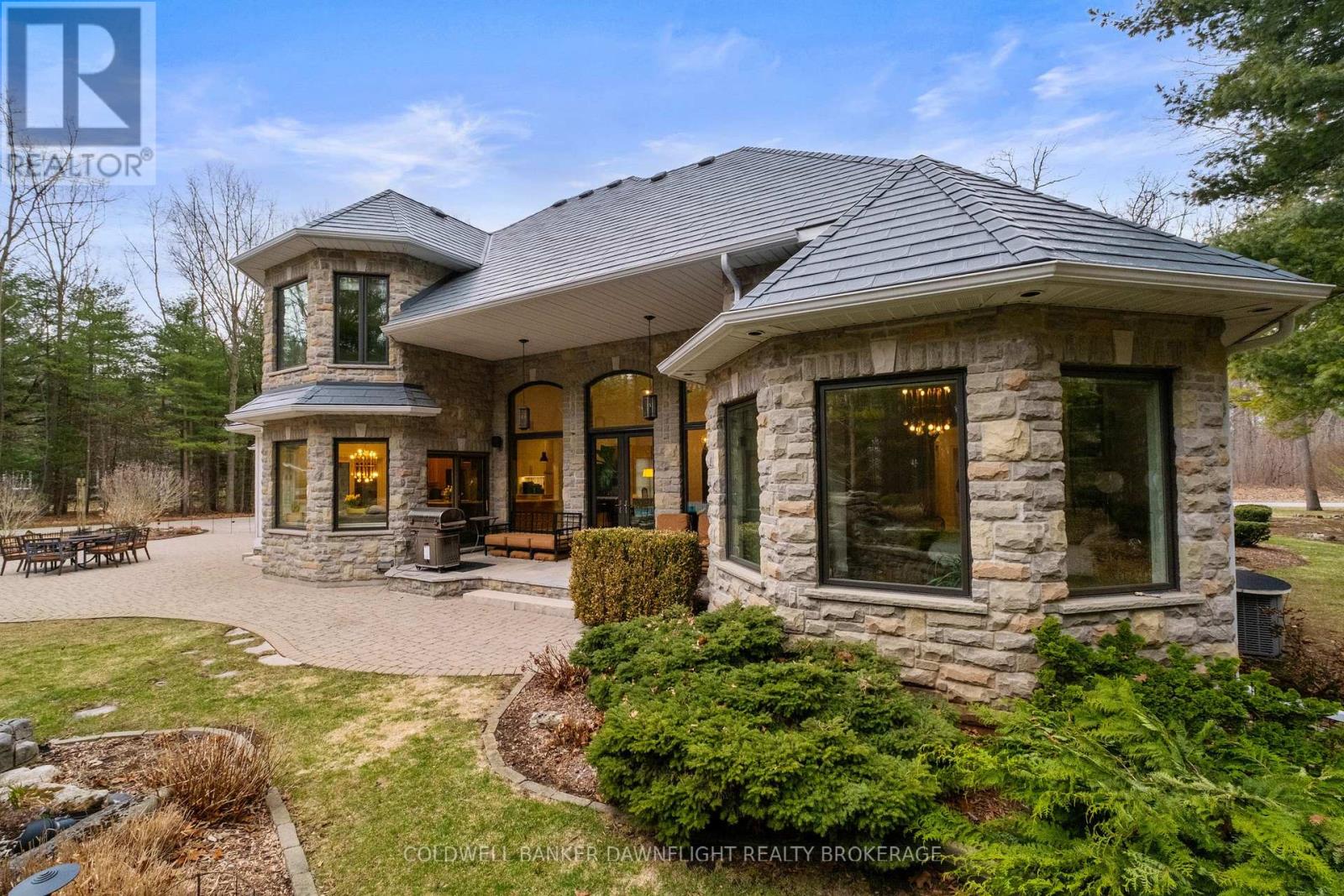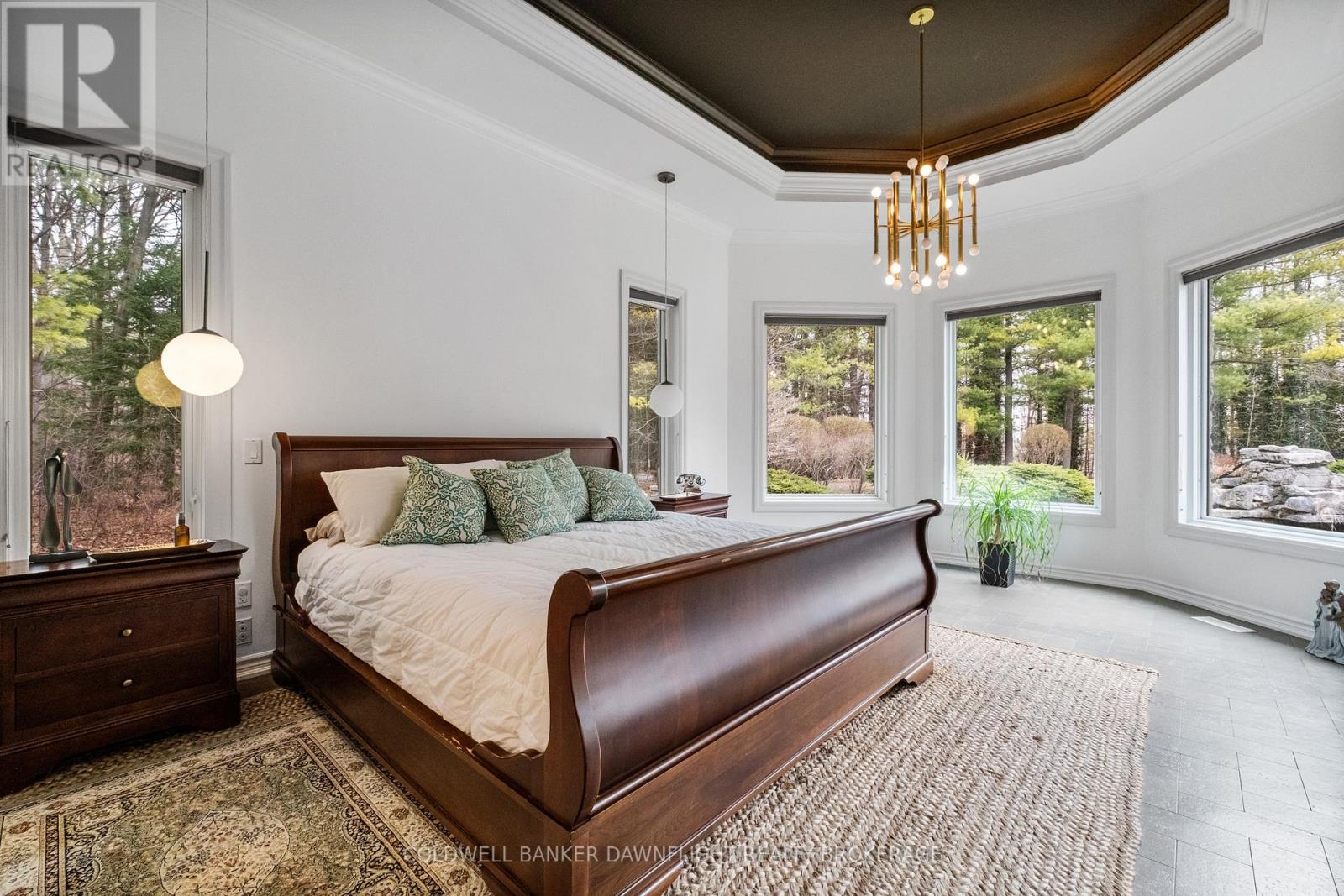 A custom-built home showcasing exceptional craftsmanship, this one-of-a-kind property features a striking Mennonite-crafted stone exterior and durable metal roof. A spacious driveway offers ample parking, ideal for hosting family and friends. Tucked into a private, tree-lined setting just minutes south of Grand Bend, the home provides a peaceful retreat. Inside, the layout blends comfort, space, and versatility. The well-appointed kitchen features a peninsula overlooking a built-in banquette, with beautiful views of the heated pool and resort-style outdoor space. The surrounding patio is perfect for relaxing or entertaining, while a pool shed provides convenient storage. A main-floor bathroom with direct backyard access enhances poolside living. Beyond the main outdoor area, two large heated steel-clad outbuildings offer exceptional flexibility for hobbies, workshops, or recreational vehicle storage. The formal dining room is filled with natural light, creating a warm atmosphere, while a stunning library off the front foyer showcases custom cabinetry and a rolling ladder. The primary suite enjoys a private wing and offers a serene escape, complete with a spa-like ensuite featuring double vanities, a freestanding tub, a walk-in shower with dual shower heads, and a separate water closet. A hallway of his-and-hers closets leads to the spacious bedroom with expansive windows and custom built-ins. Main-floor laundry and a locker room connect to the oversized two-car garage. Upstairs, three generously sized bedrooms and a four-piece bathroom accommodate family or guests. The fully finished lower level adds a wet bar with seating, multiple media areas, a bathroom with steam shower, a fifth bedroom, seasonal storage, and a dedicated gym. Set along a cleared path, a charming cabin overlooks a private pond-ideal for quiet mornings or evenings by the fire. This remarkable property blends privacy, luxury, and functionality for both everyday living and unforgettable gatherings. (id:64974)