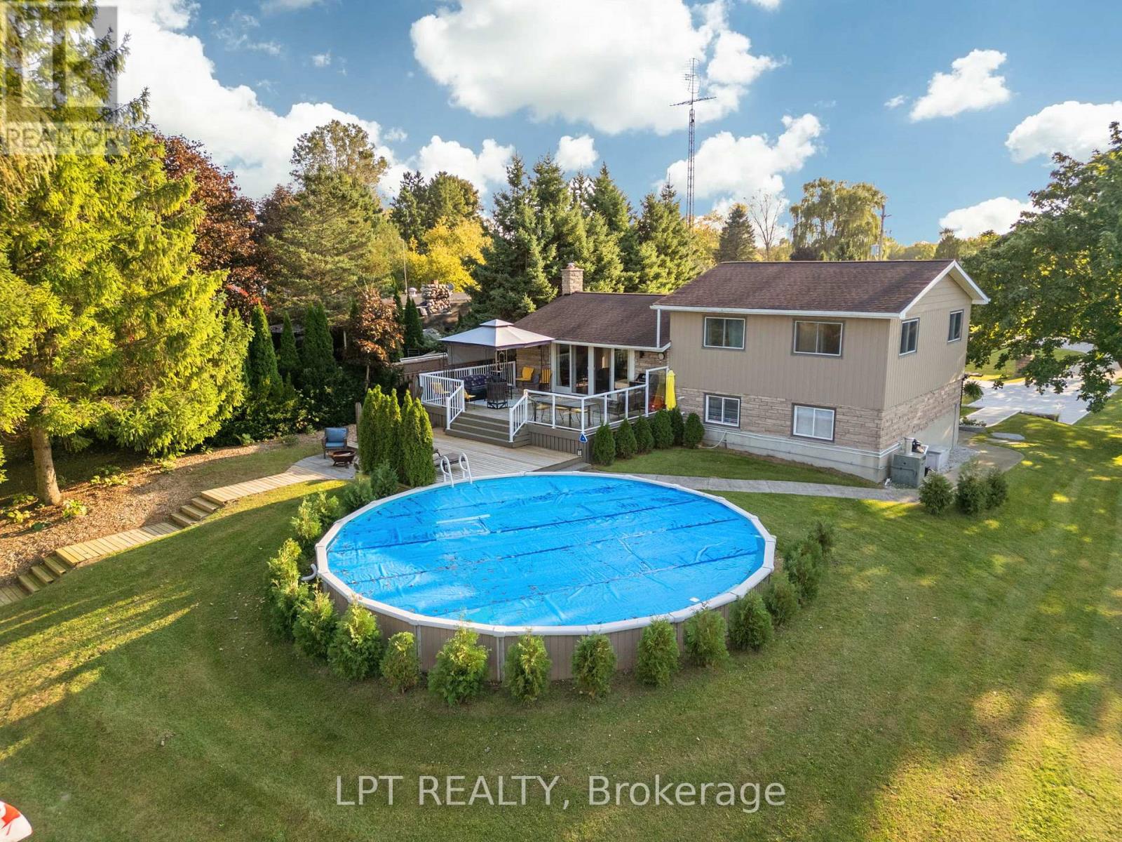 A RARE RIVERSIDE RETREAT WHERE DREAMS COME TRUE. Nestled along the serene banks of the Ausable River, this exquisite three-bedroom, two-bathroom home is a rare gem that offers both comfort and adventure. With breathtaking river views from nearly every room, this home is a perfect retreat for those who cherish nature's beauty and the pleasures of waterfront living. Step inside to find an inviting open-concept kitchen and living area with natural light from large windows that showcase the picturesque scenery. A patio door leads to a two-tier deck overlooking a stunning 30-foot round heated pool, where you can relax and watch the boats go by. The master suite features a luxurious remodeled ensuite with a tiled shower and double sinks, along with a private walkout to a covered front porch, the perfect spot for morning coffee or quiet evenings. Downstairs a spacious Rec room with a cozy wood-burning fireplace creates a warm and inviting atmosphere, ideal for family gatherings or quiet nights. The home is equipped with a Generac generator, an essential feature for those who work from home. The exterior of the home is just as impressive, with professionally designed stone landscaping enhancing the beauty of the front yard. A large heated 32x23 shop provides ample space for hobbies or storage, while an additional 12x18 garage offers even more room for your needs. For those who love the water, the 75-foot sea wall allows you to launch and dock your boat with ease, while the spacious backyard provides a perfect setting for entertaining. Spend your afternoons lounging by the pool, your evenings enjoying a sunset boat ride to Port Franks Beach, and your weekends hosting unforgettable gatherings. This property is more than just a home it is a lifestyle of relaxation, recreation, and natural beauty. If you are seeking a place where memories are made and dreams come to life, look no further. Schedule a viewing and experience this riverside retreat for yourself! (id:64974)