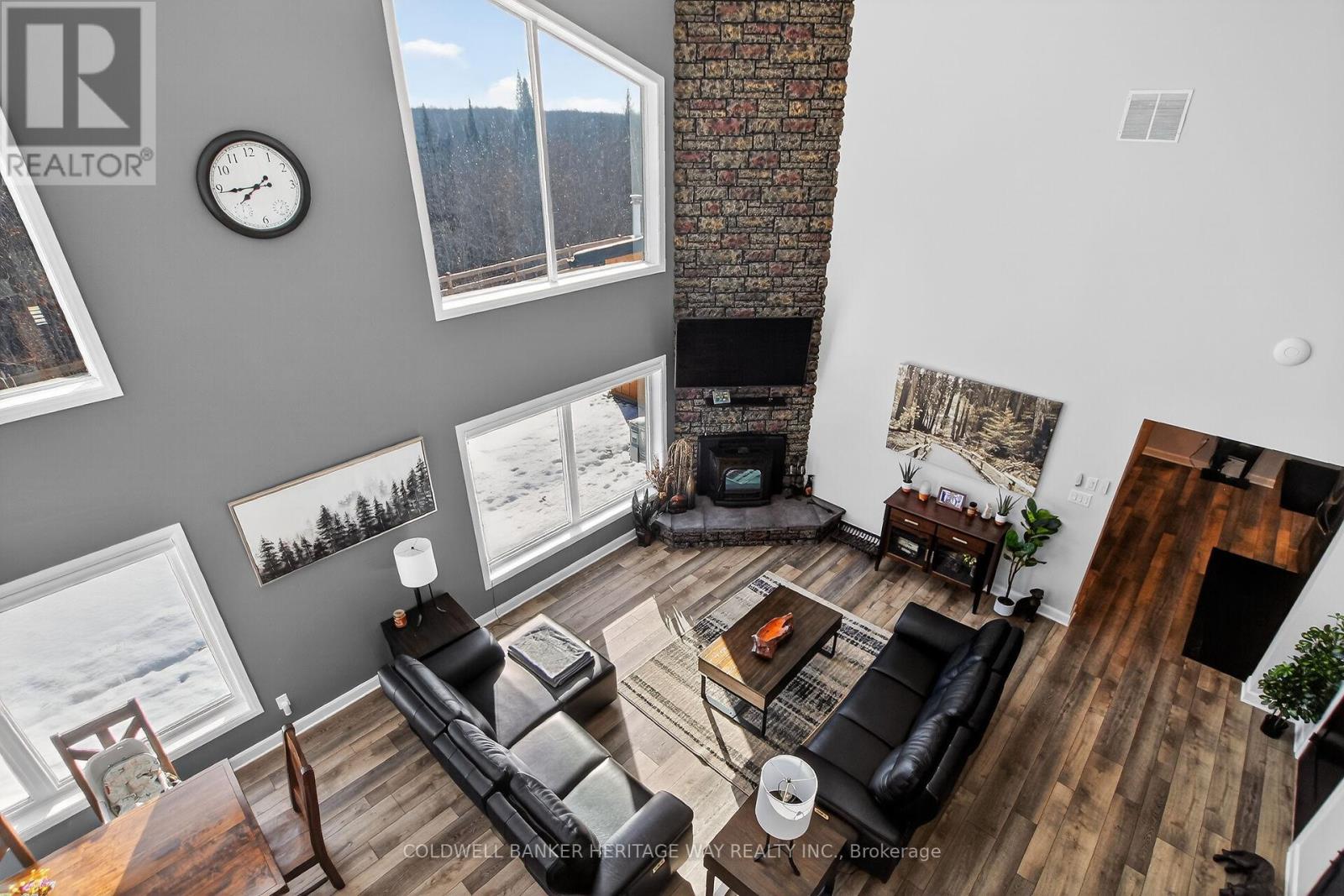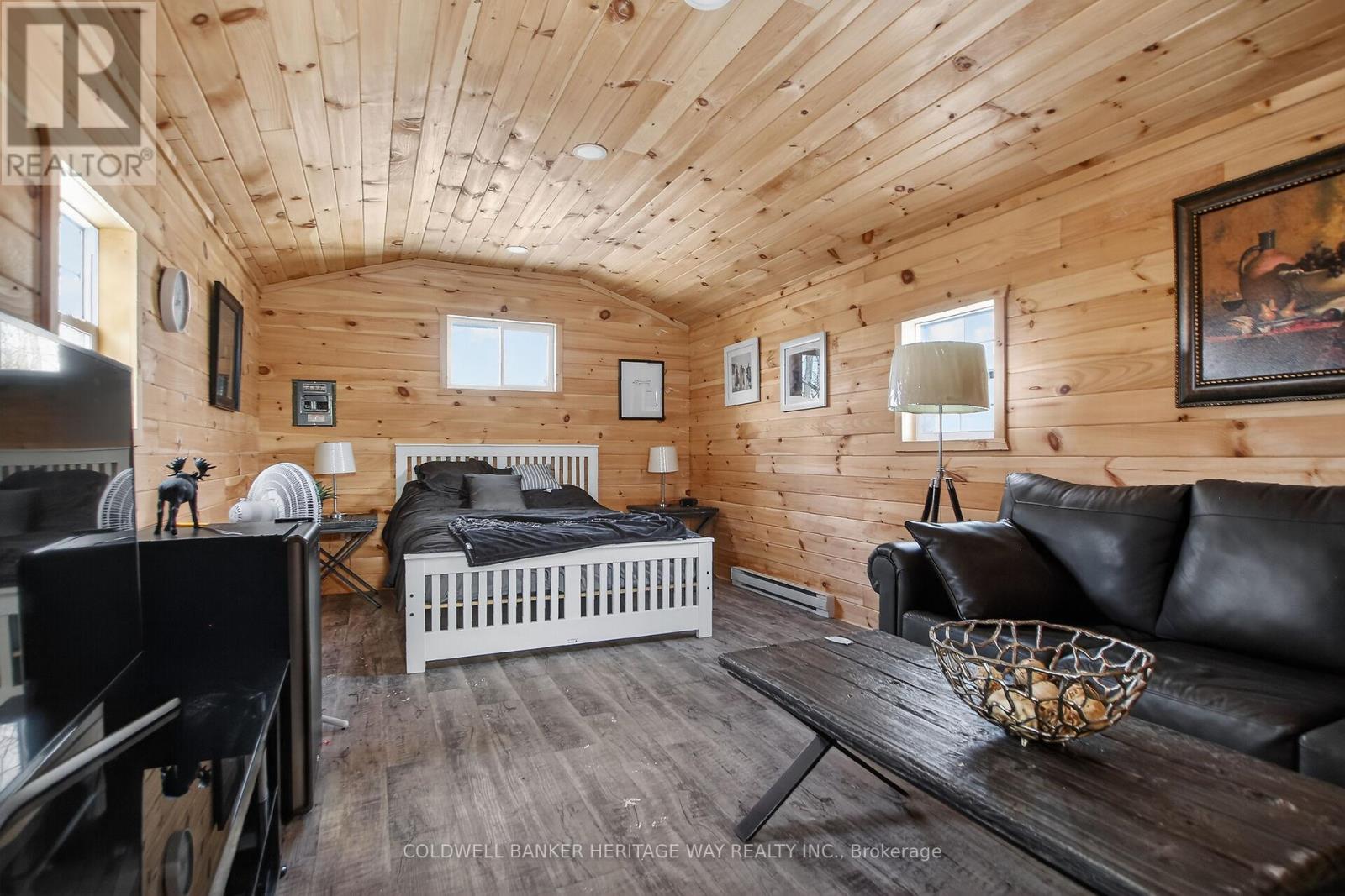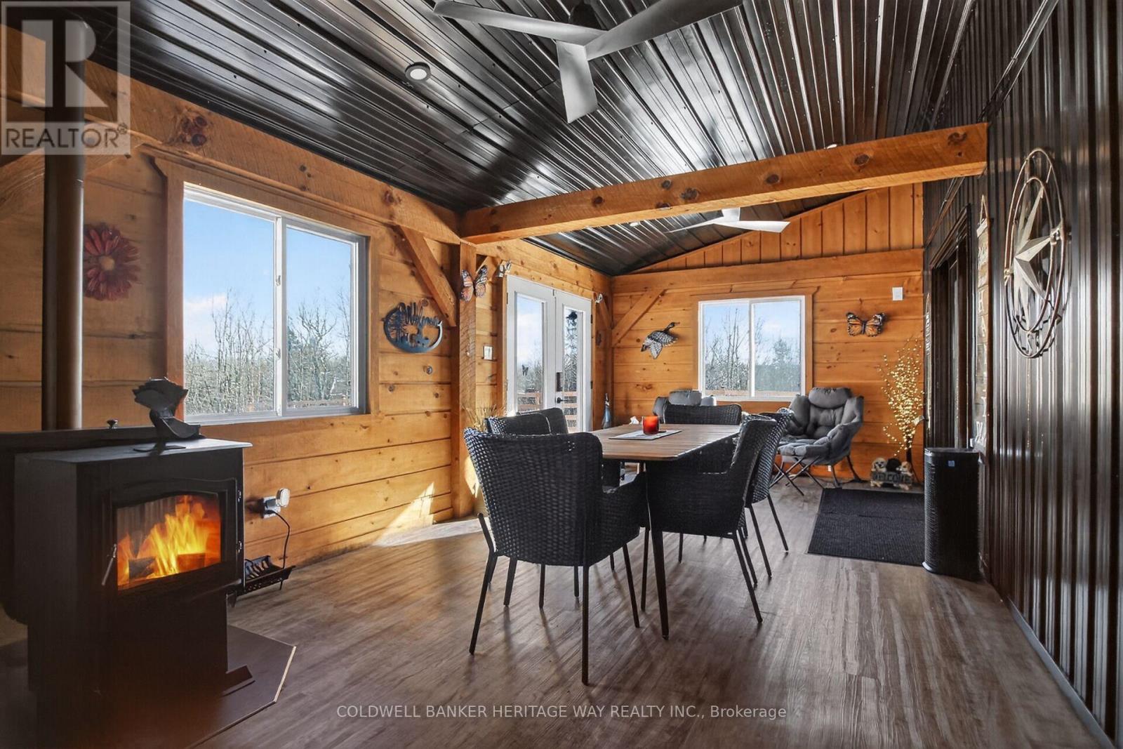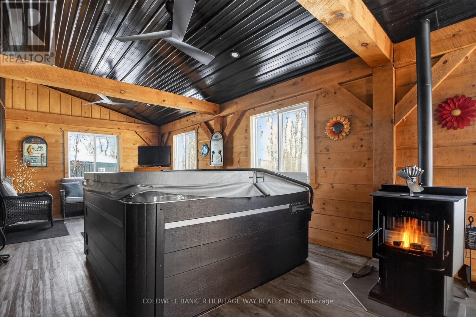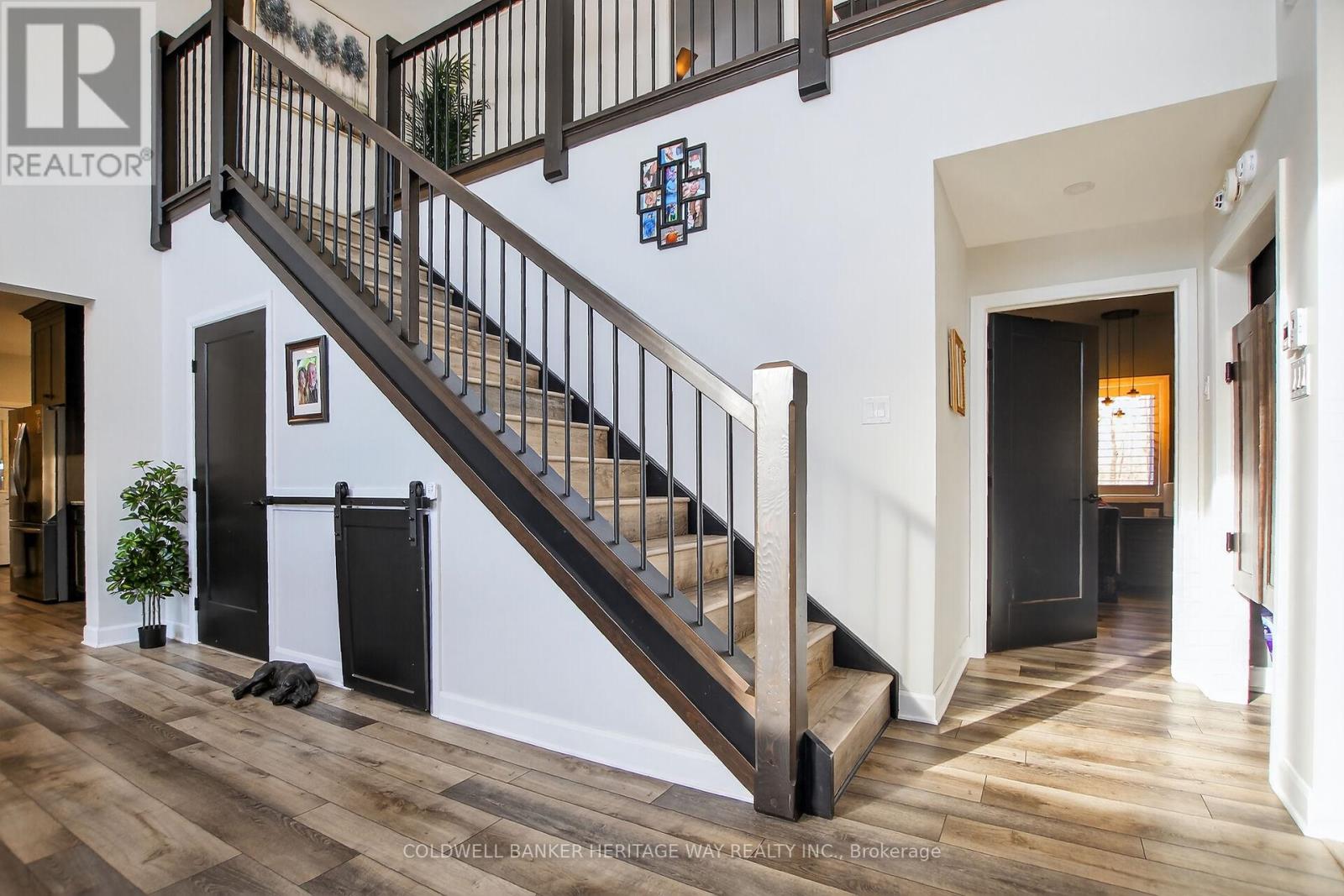 Perched atop a hill on 40 acres with Bennett Lake just across the road, this 4-year-old custom-built 3 bedroom 3.5 bathroom "BARNDOMINIUM" is truly one of a kind. No expense was spared in the construction of this exceptional executive-style residence, showcasing outstanding craftsmanship and high-end finishes throughout. The home features an oversized attached 1750 sq ft heated garage with 2- 12X12 and1- 9 x8 doors with remote openers, perfect for vehicles, recreational toys, or a workshop. The main-level primary bedroom is a private retreat, patio door to hot tub area, complete with a walk-in closet with built-in wardrobes and a stunning ensuite featuring heated floors and an oversized walk-in shower with dual rain heads.The heart of the home offers an open-concept design with vaulted ceilings, a gourmet kitchen with granite countertops, and an oversized island ideal for entertaining. The family room is filled with natural light from expansive windows with tinting and automated shades, creating a warm and inviting atmosphere. The newly created tv room with a bar area and door to 3 season enclosed sitting room with a pellett stove. The second level includes two spacious bedrooms, a four-piece bathroom, and a loft-style office overlooking the family room below. The entire home is heated with in-floor radiant heat (propane fired) with a forced air furnace with Central AC. 2nd entrance with gates, shed and tons or room for storage. Set in an elevated location, this property delivers exceptional privacy, panoramic views, and a tranquil connection to nature with trails throughout the treed acreage, all while offering modern comfort and luxury. If you're searching for a one-of-a-kind property that perfectly blends space, style, and functionality, this extraordinary home is a must-see. (id:64974)