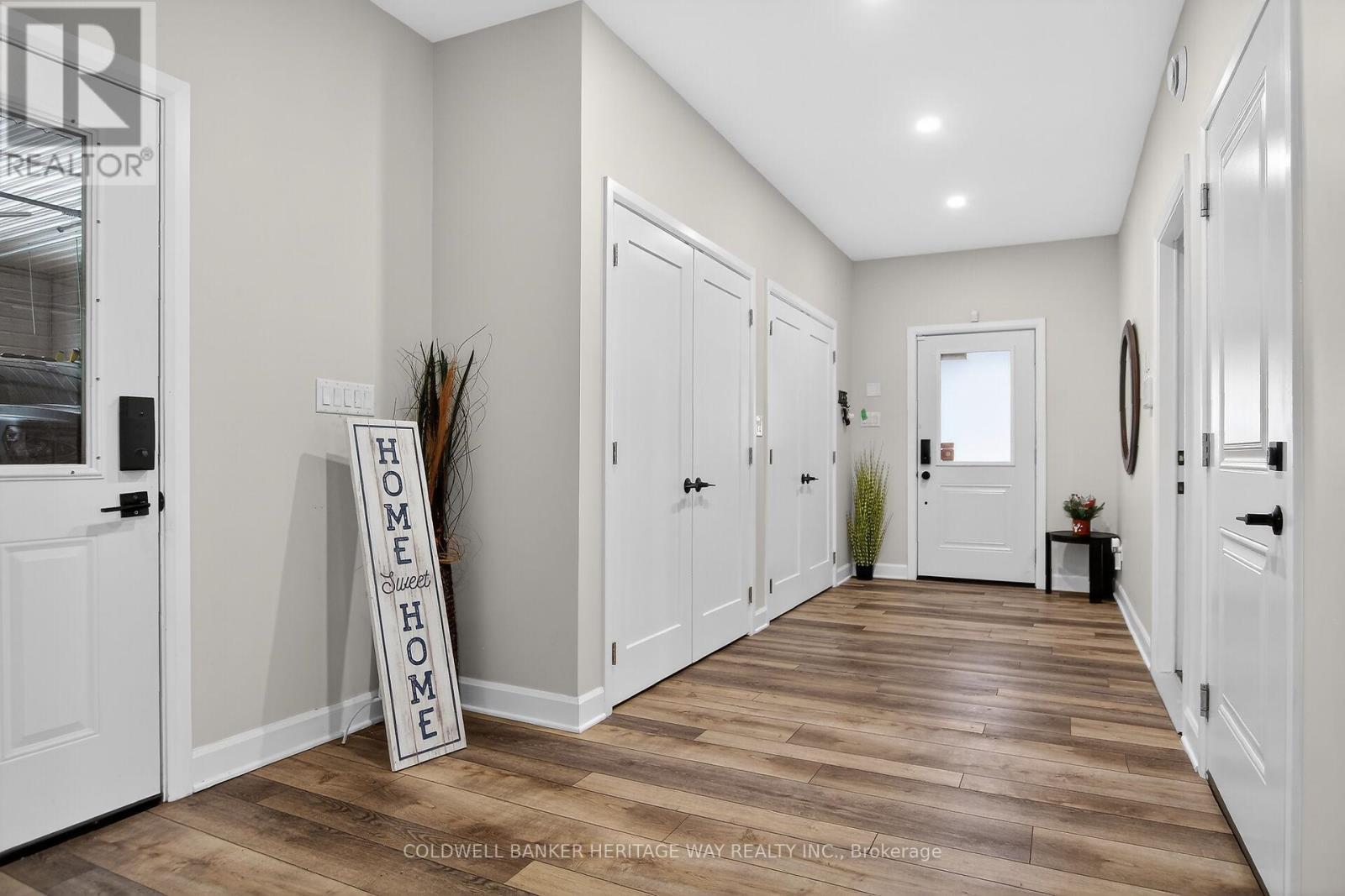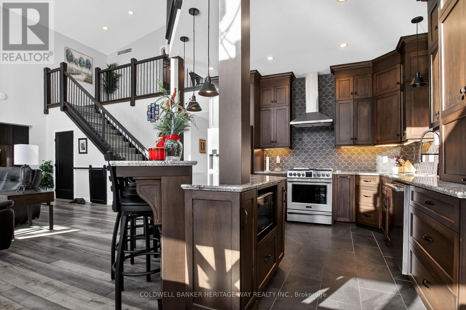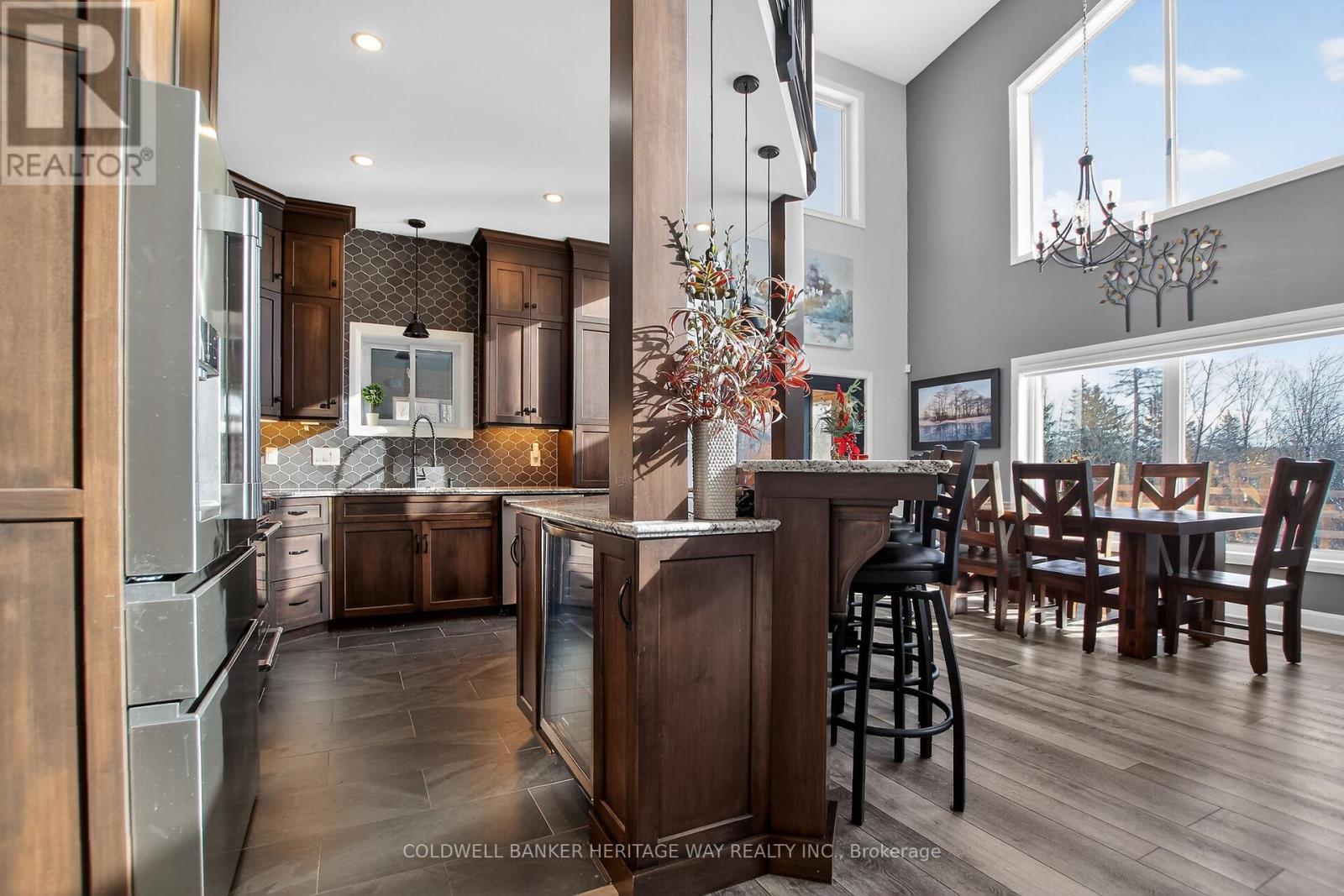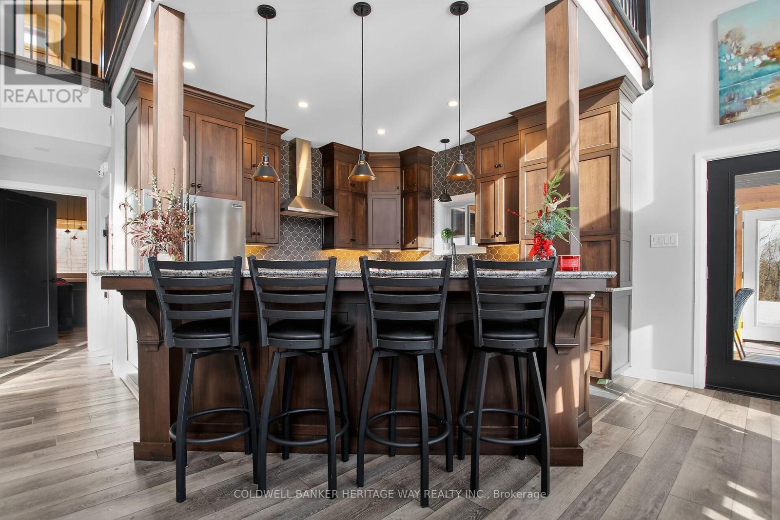 Perched atop a hill on 40 acres with Bennett Lake just across the road, this 4-year-old custom-built 3 bedroom 3.5 bathroom "BARNDOMINIUM" is truly one of a kind. No expense was spared in the construction of this exceptional executive-style residence, showcasing outstanding craftsmanship and high-end finishes throughout. The home features an oversized attached 1750 sq ft heated garage with 2- 12X12 and1- 9 x8 doors with remote openers, perfect for vehicles, recreational toys, or a workshop. The main-level primary bedroom is a private retreat, patio door to hot tub area, complete with a walk-in closet with built-in wardrobes and a stunning ensuite featuring heated floors and an oversized walk-in shower with dual rain heads.The heart of the home offers an open-concept design with vaulted ceilings, a gourmet kitchen with granite countertops, and an oversized island ideal for entertaining. The family room is filled with natural light from expansive windows with tinting and automated shades, creating a warm and inviting atmosphere. The newly created tv room with a bar area and door to 3 season enclosed sitting room with a pellett stove. The second level includes two spacious bedrooms, a four-piece bathroom, and a loft-style office overlooking the family room below. The entire home is heated with in-floor radiant heat (propane fired) with a forced air furnace with Central AC. 2nd entrance with gates, shed and tons or room for storage. Set in an elevated location, this property delivers exceptional privacy, panoramic views, and a tranquil connection to nature with trails throughout the treed acreage, all while offering modern comfort and luxury. If you're searching for a one-of-a-kind property that perfectly blends space, style, and functionality, this extraordinary home is a must-see. (id:64974)