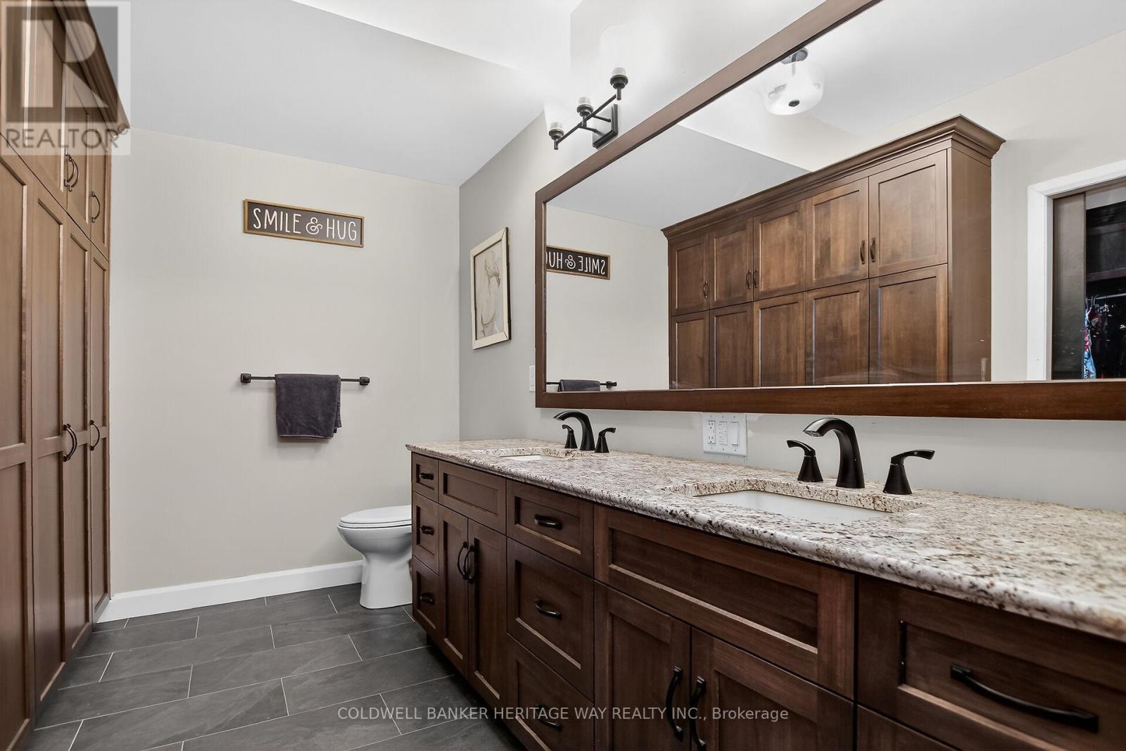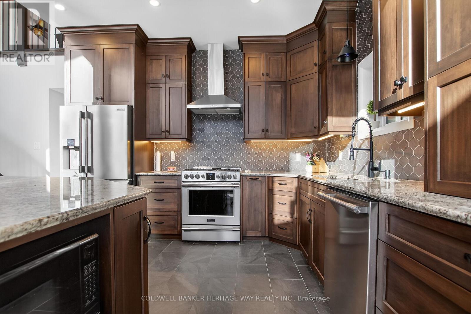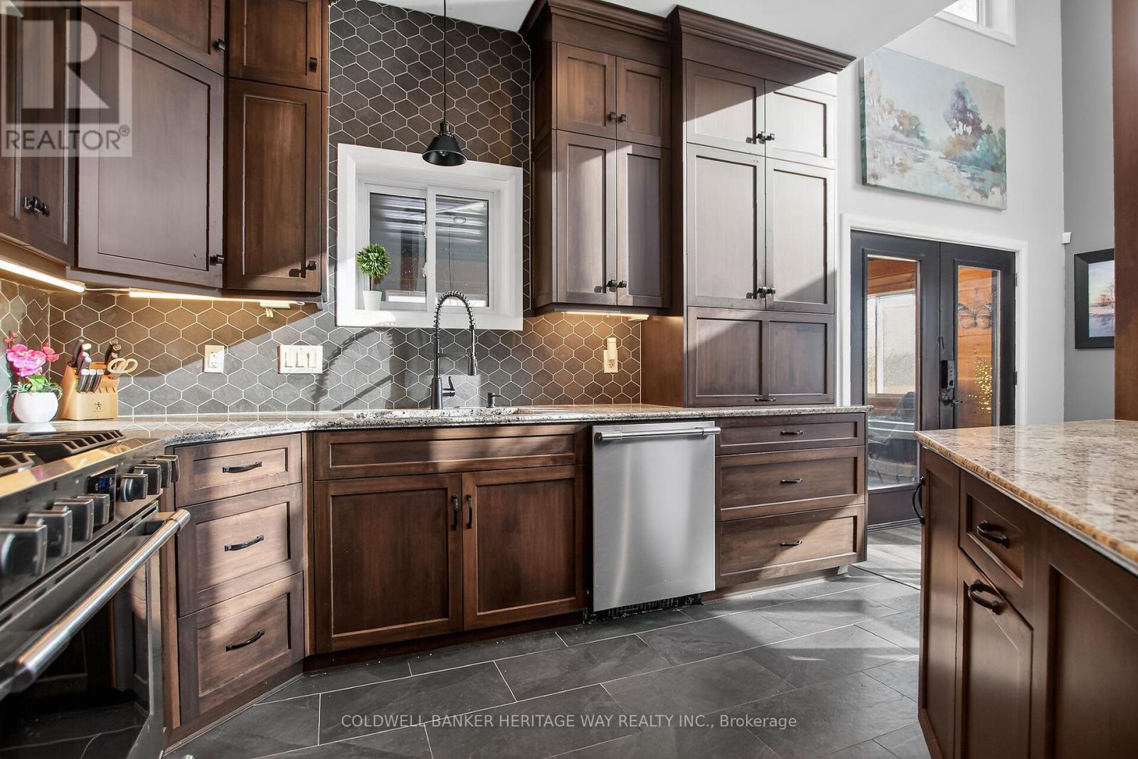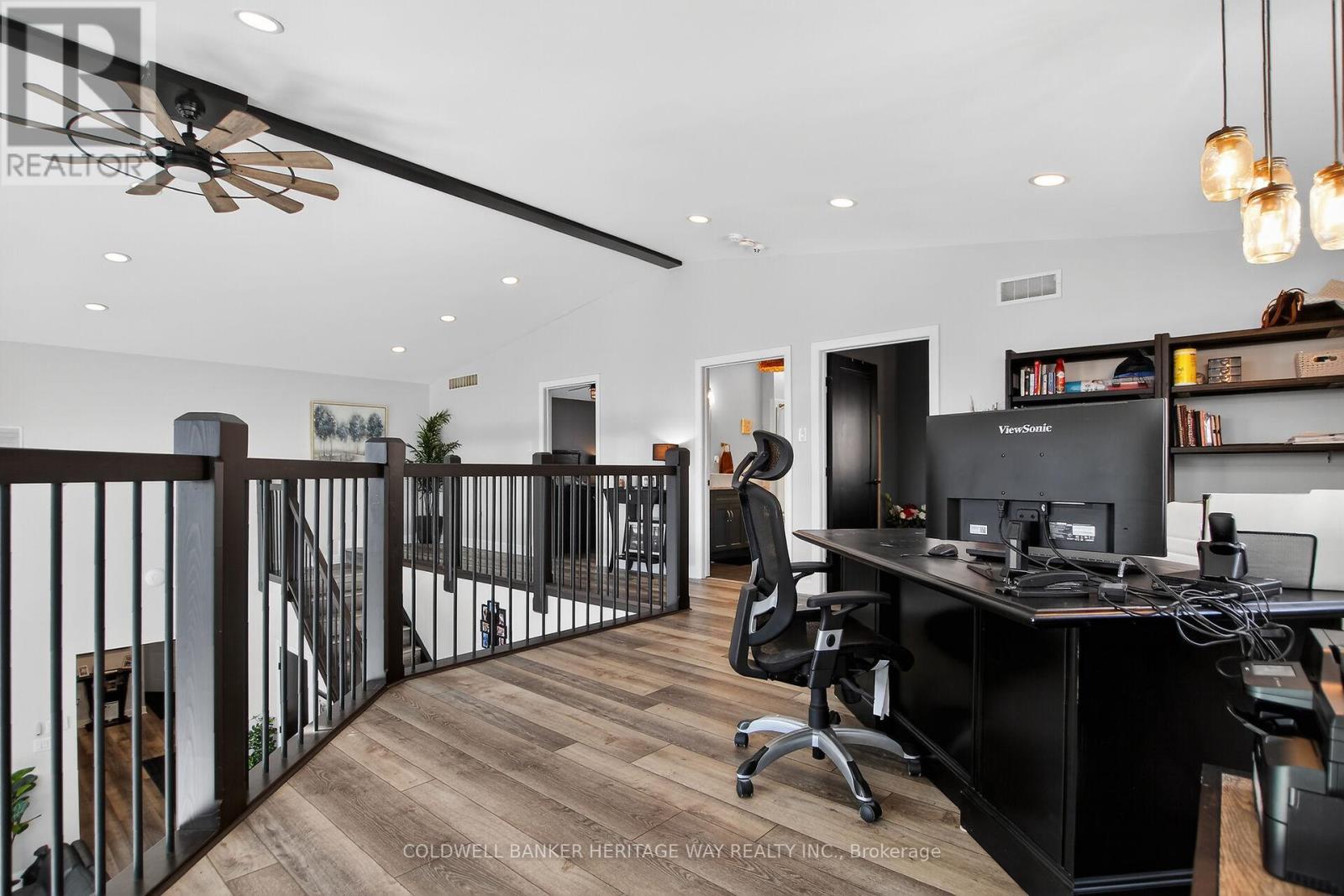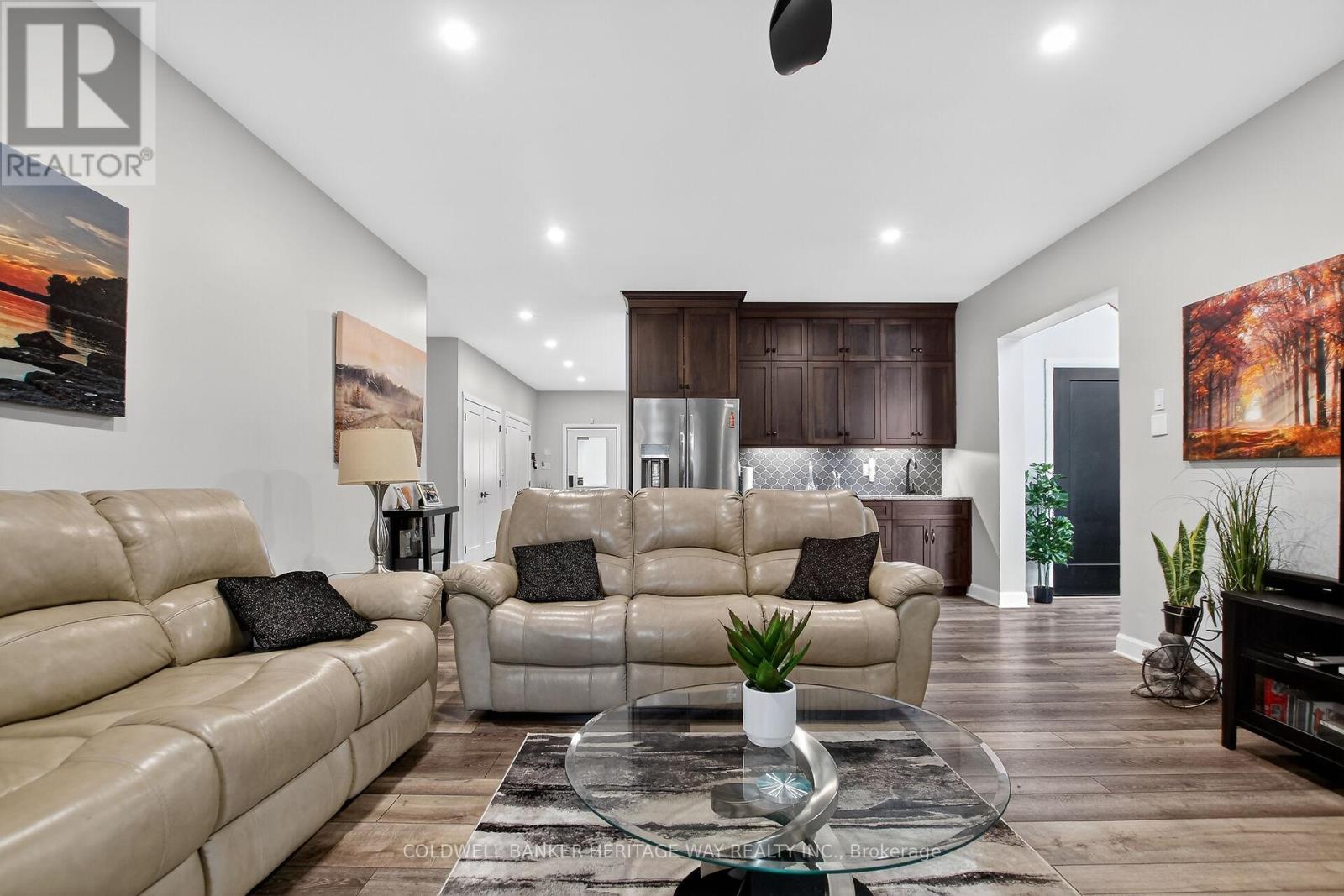 Perched atop a hill on 40 acres with Bennett Lake just across the road, this 4-year-old custom-built 3 bedroom 3.5 bathroom "BARNDOMINIUM" is truly one of a kind. No expense was spared in the construction of this exceptional executive-style residence, showcasing outstanding craftsmanship and high-end finishes throughout. The home features an oversized attached 1750 sq ft heated garage with 2- 12X12 and1- 9 x8 doors with remote openers, perfect for vehicles, recreational toys, or a workshop. The main-level primary bedroom is a private retreat, patio door to hot tub area, complete with a walk-in closet with built-in wardrobes and a stunning ensuite featuring heated floors and an oversized walk-in shower with dual rain heads.The heart of the home offers an open-concept design with vaulted ceilings, a gourmet kitchen with granite countertops, and an oversized island ideal for entertaining. The family room is filled with natural light from expansive windows with tinting and automated shades, creating a warm and inviting atmosphere. The newly created tv room with a bar area and door to 3 season enclosed sitting room with a pellett stove. The second level includes two spacious bedrooms, a four-piece bathroom, and a loft-style office overlooking the family room below. The entire home is heated with in-floor radiant heat (propane fired) with a forced air furnace with Central AC. 2nd entrance with gates, shed and tons or room for storage. Set in an elevated location, this property delivers exceptional privacy, panoramic views, and a tranquil connection to nature with trails throughout the treed acreage, all while offering modern comfort and luxury. If you're searching for a one-of-a-kind property that perfectly blends space, style, and functionality, this extraordinary home is a must-see. (id:64974)