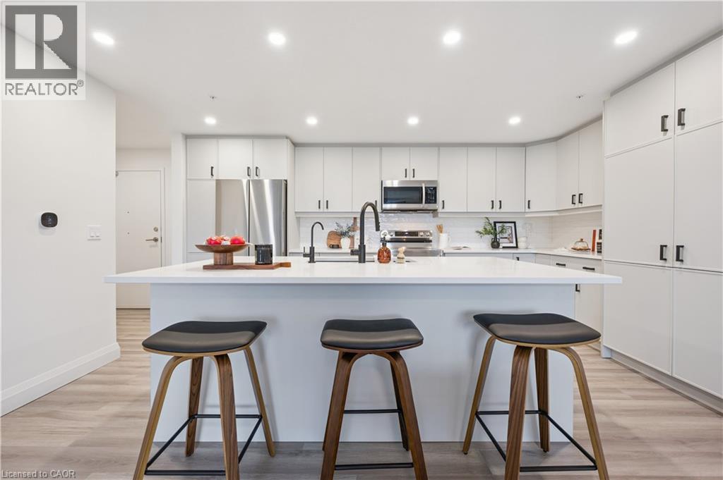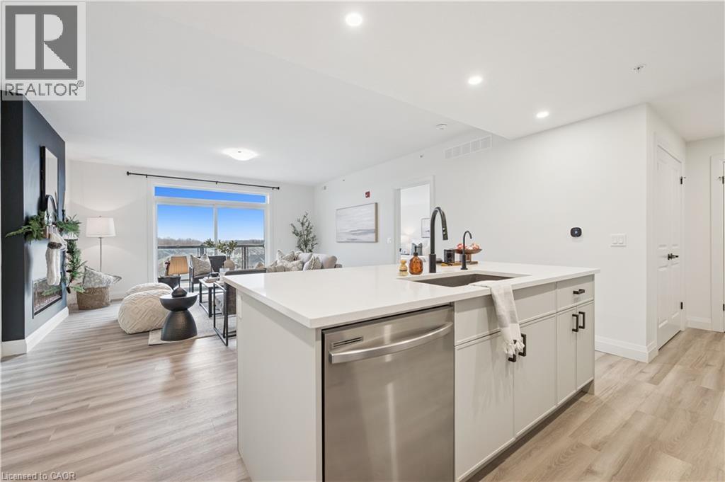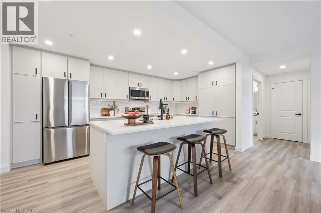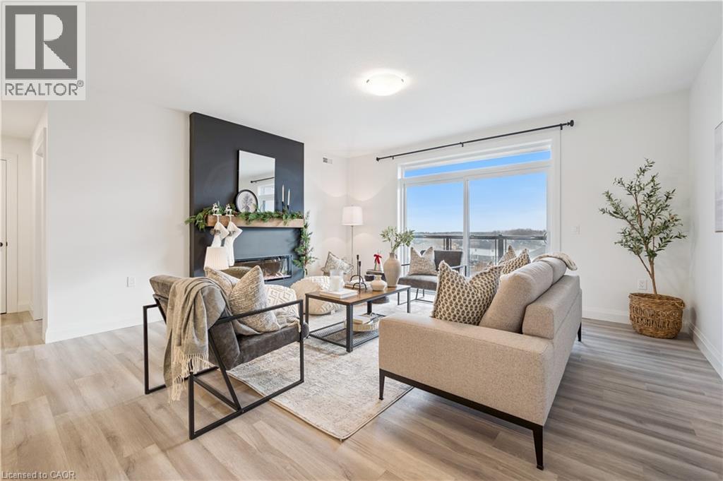 Arguably one of the nicest condo units within 99B Farley Rd., for it's top floor location with elevator access, privacy, south-west exposure, spacious floor plan and storage offerings. This 1275 square foot condo offers 2 generous bedrooms, 2 full baths and an underground parking spot with exclusive locker space. Quality built in '2024 by Keating, this condo has been designed with high quality finishes, ample parking, storage and an eco-friendly Geothermal climate control system for ease of utility costs. It's functional open-concept floor plan offers a very generous kitchen with centre island and breakfast bar, elegant granite countertops and waterfall off island, complete with stainless steel appliances. A seamless flow to the large bright living room, with built-in fireplace and beam mantle, leads out sliding doors to the large balcony overlooking the rear of building (opposite the parking). This sought after layout offers two generous bedrooms, primary bedroom with it's own full ensuite bath and walk-in closet. Second bedroom enjoys it's own use of another full bathroom. In-suite laundry room offers additional storage within unit. Various tasteful updates added throughout this unit, make it a wonderful home for luxury and comfort. The underground parking is right next to elevator and alongside has exclusive large storage unit. Located close to the new Groves Hospital and medical clinics, new public school, parks and walking trails and just a short drive to downtown Fergus and Elora for all they have to offer. You will want to make this a 'must see' and look forward to this holiday season in your new home. (id:64974)