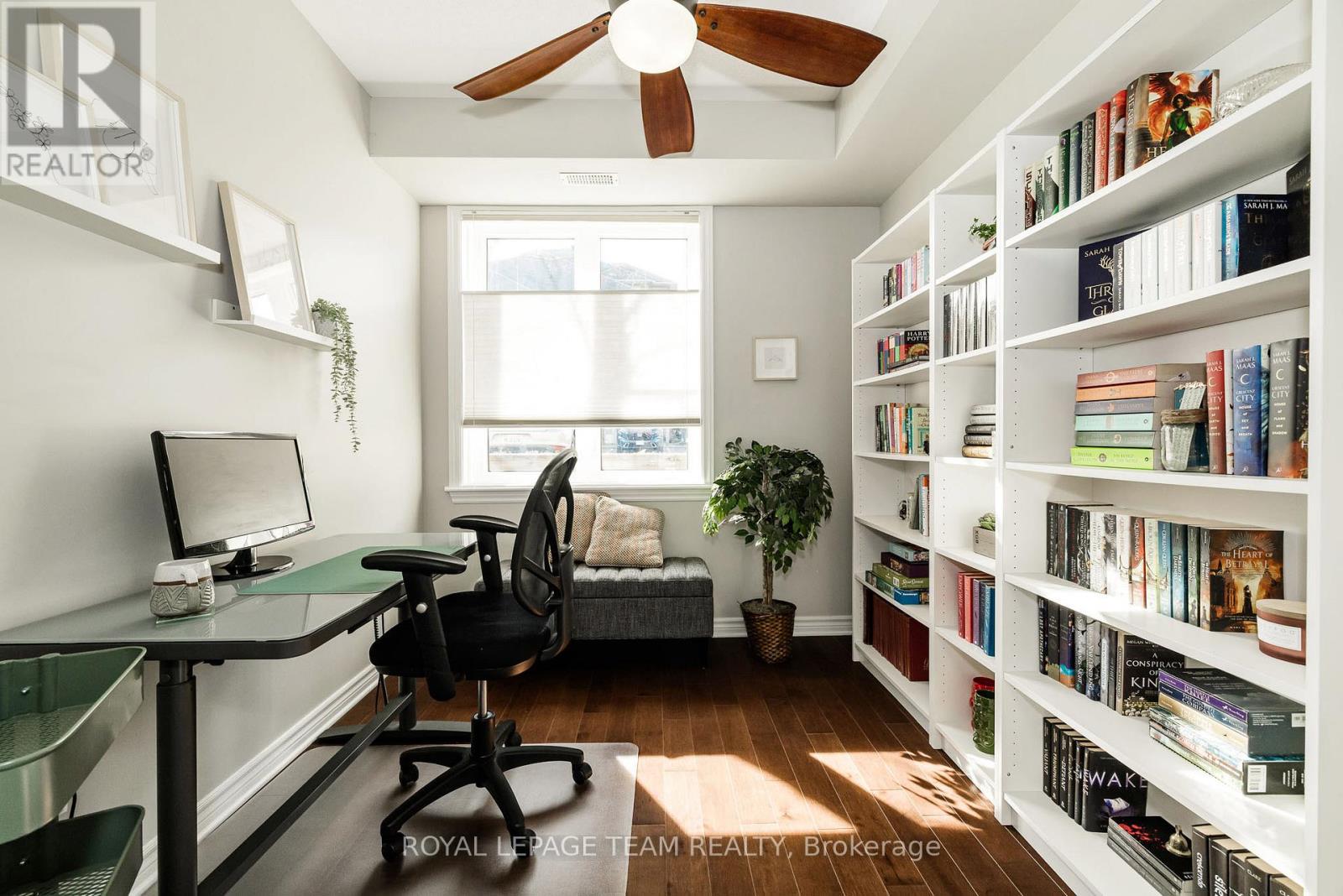 Open House Sunday April 19, 2-4pm Forget the elevator wait and the cramped apartment feel-19 Tadley Private offers the kind of low-maintenance condo life that actually feels like a home. This main-floor unit stays bright and airy thanks to 9' ceilings and an open-concept layout that flows beautifully across rich hardwood floors in the living areas and durable ceramic tile in the kitchen and bathrooms. If you're the type who likes to host, the kitchen is designed specifically to keep you part of the conversation while you prep, rather than hiding you away in a separate room. With two full bedrooms, a versatile den-perfect for a remote work setup or hobby room-and two full bathrooms, you aren't sacrificing any space for the sake of convenience. Speaking of convenience, the in-suite laundry is a given, but the real magic is right outside your door. Your private patio backs directly onto the Andy Moffat Trail, offering a quiet, green escape that is incredibly rare to find in such a central spot. When you do need to venture out, you can pretty much leave the keys on the hook; you're an easy walk from the Strandherd Park and Ride, the Greenbank Road Multi-Use Pathway, and the massive selection of shops, restaurants, and grocery stores at the RioCan shopping centre. Whether you're grabbing a morning latte or hopping on the bus for your commute, everything is within reach from this tucked-away retreat. (id:64974)