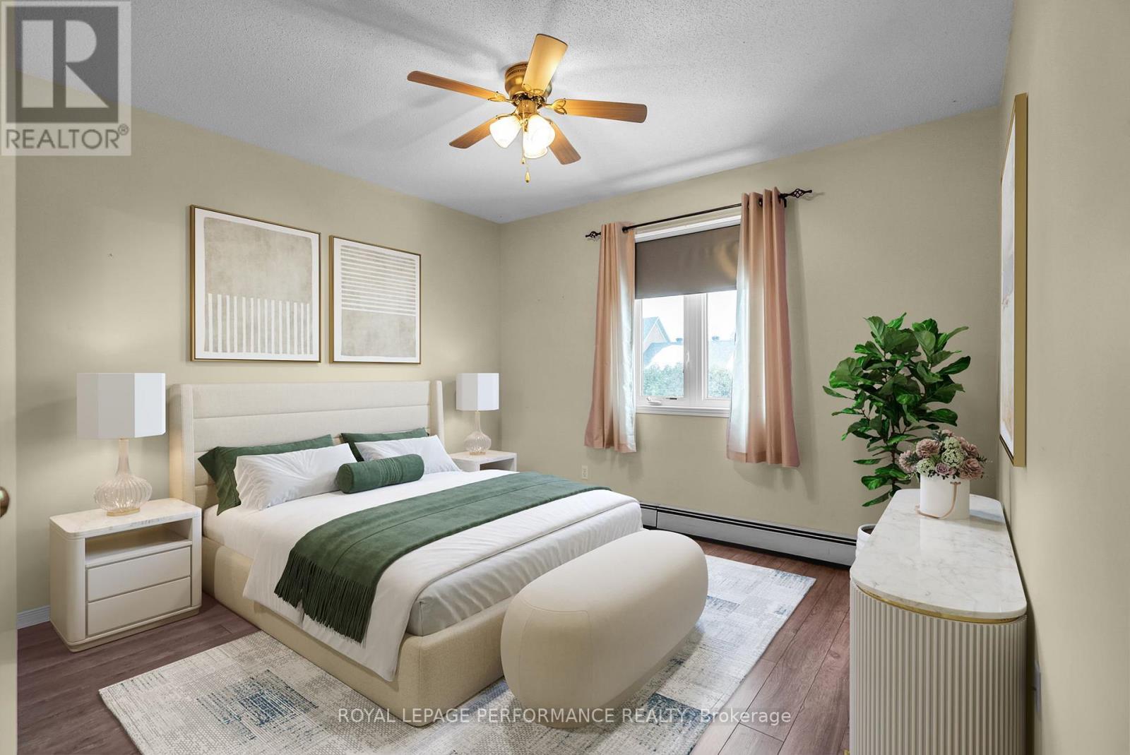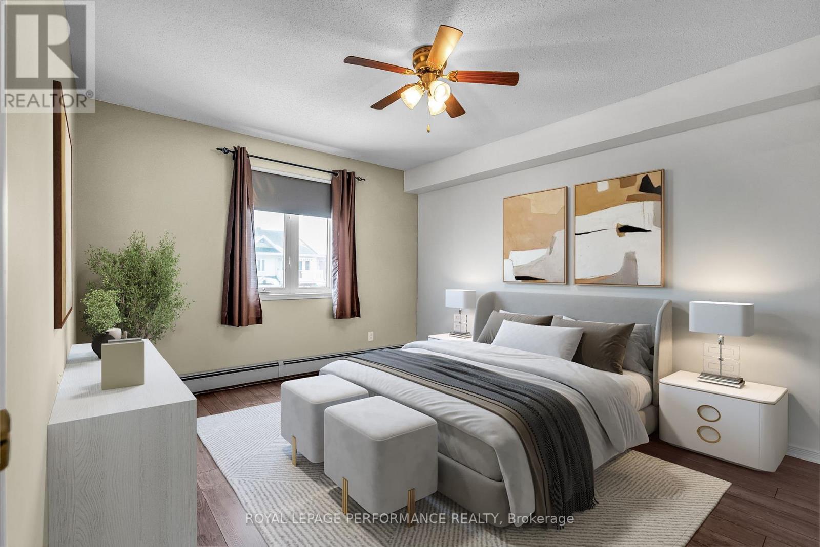 Stylish 2 bedroom condo ready for immediate possession! This bright and spacious 2nd level condo is conveniently located within walking distance to the St. Lawrence River and an emporium of downtown amenities. Open concept layout boasts a living room with a vaulted ceiling, dining area leading to a functional kitchen with breakfast island. Primary and secondary bedrooms with ample closet space. In unit laundry. 4pc bathroom with accessible friendly walk in shower. South facing balcony. Appliances andElectric, gas fireplace included in the lease! One outdoor parking space. City transit nearby. Your low maintenance lifestyle awaits! $2100/month plus utilities and gas. *Some photos have been virtually staged. (id:64974)