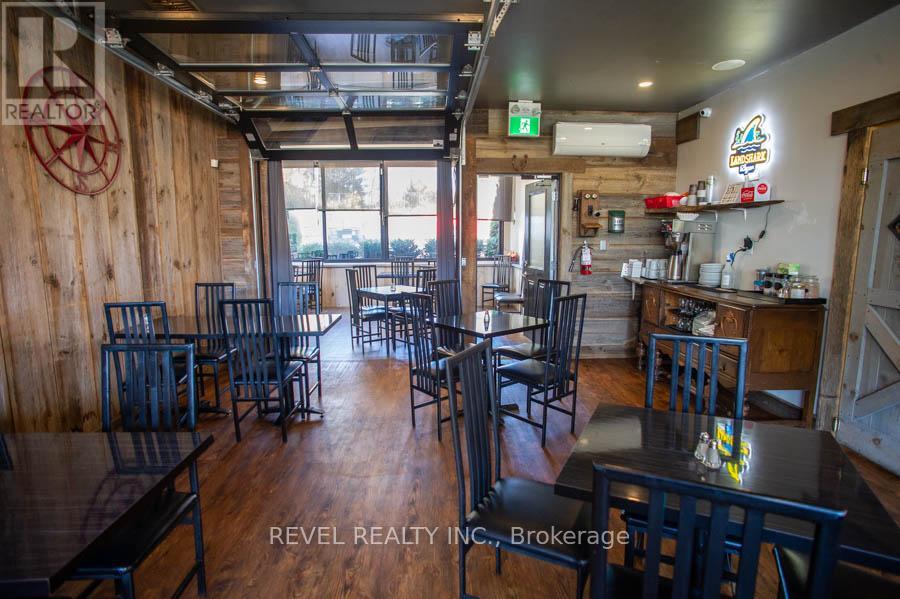 An exceptional opportunity awaits in the heart of Scotland. The Field House Restaurant is a well-established, family-run business known for its quality dining experience, welcoming atmosphere, and strong community presence. Proudly owned and operated by the same family, the restaurant has built a loyal clientele by focusing on fresh ingredients and consistently delivering outstanding customer satisfaction.Step inside to discover a warm and inviting interior, thoughtfully updated with a complete renovation in 2016, including both the dining area and kitchen. A striking stone feature wall anchors the bar area, complemented by a beautiful black walnut countertop-creating a natural gathering space for guests. The main dining room showcases a charming barn board feature wall and offers seating for up to 60 guests, providing both comfort and character.In 2021, an additional dining space was thoughtfully created, ideal for hosting intimate private functions and seamlessly connected to the main dining area. During the warmer months, guests can enjoy the rear patio, which accommodates approximately 20 people, with further potential to expand outdoor seating at the front of the property.The spacious chef's kitchen is designed for efficiency, offering ample room for food preparation and service, along with extensive indoor and outdoor storage. The property also includes two washrooms, all owned equipment, and generous on-site parking, situated on a sizable 80 ft x 165 ft lot.Ideally located just minutes from Brantford, this turnkey offering presents a rare opportunity to own a thriving business in the growing community of Scotland. With strong existing operations and room for future growth, this is a standout opportunity for entrepreneurs and investors alike. (id:64974)