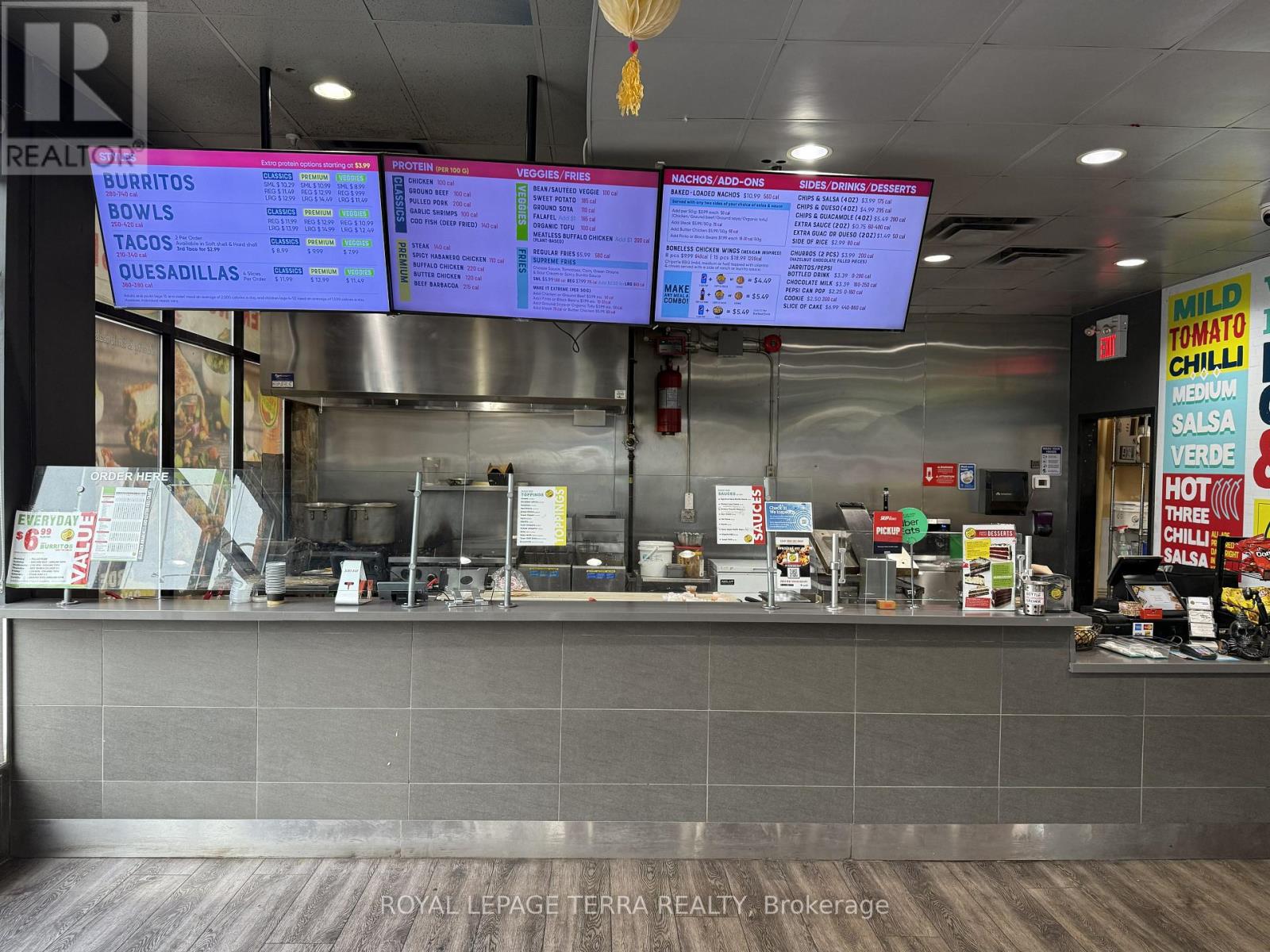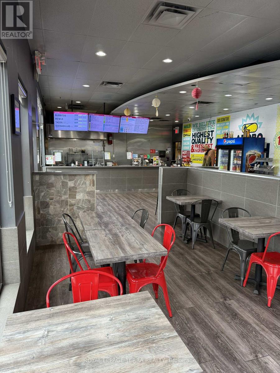 Exceptional Business Opportunity in Kitchener - Fresh Burrito Franchise! An incredible chance to own a well-established Fresh Burrito franchise in one of Kitchener's most desirable and high-traffic locations. This thriving business has been successfully operating for over 10 years, making it one of the oldest and most reputable stores within the franchise network. Situated in a bustling plaza with excellent visibility, ample parking, and surrounded by high-density residential neighborhoods, schools, offices, and retail establishments, this location benefits from a steady flow of loyal and new customers daily. The store generates strong monthly sales of approximately $45,000, offering a solid return for any hands-on operator or investor. The business also includes a Taco Star ghost kitchen, creating an additional income stream with minimal overhead. With low royalty fees, affordable rent $4176 + HST, and exceptional franchise support, this is a rare opportunity to acquire a profitable, turnkey operation with room for further growth. The lease term offers 5 years with an option to renew for another 5 years, ensuring long-term stability for the new owner. All equipment and chattels are owned-no leases-providing additional value and peace of mind. A full list of equipment and chattels will be provided with an accepted offer. Whether you're an experienced restaurateur or an entrepreneur looking to step into a growing brand, this opportunity offers the perfect mix of brand recognition, prime location, and proven profitability. Don't miss out on this fantastic opportunity to be part of a fast-growing Mexican franchise with a strong local customer base and ongoing franchise support. Schedule a confidential showing today and explore the potential this business has to offer! (id:64974)