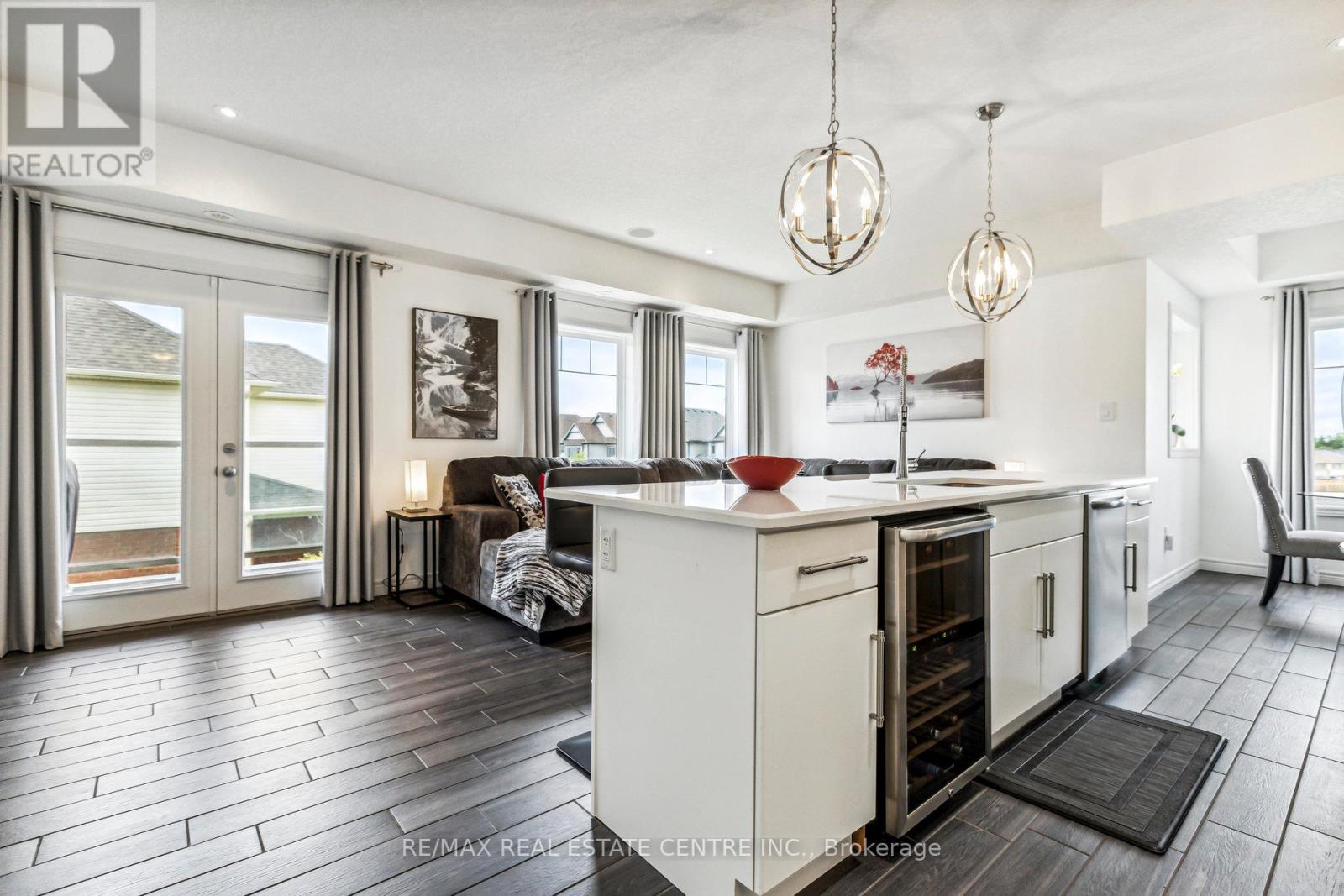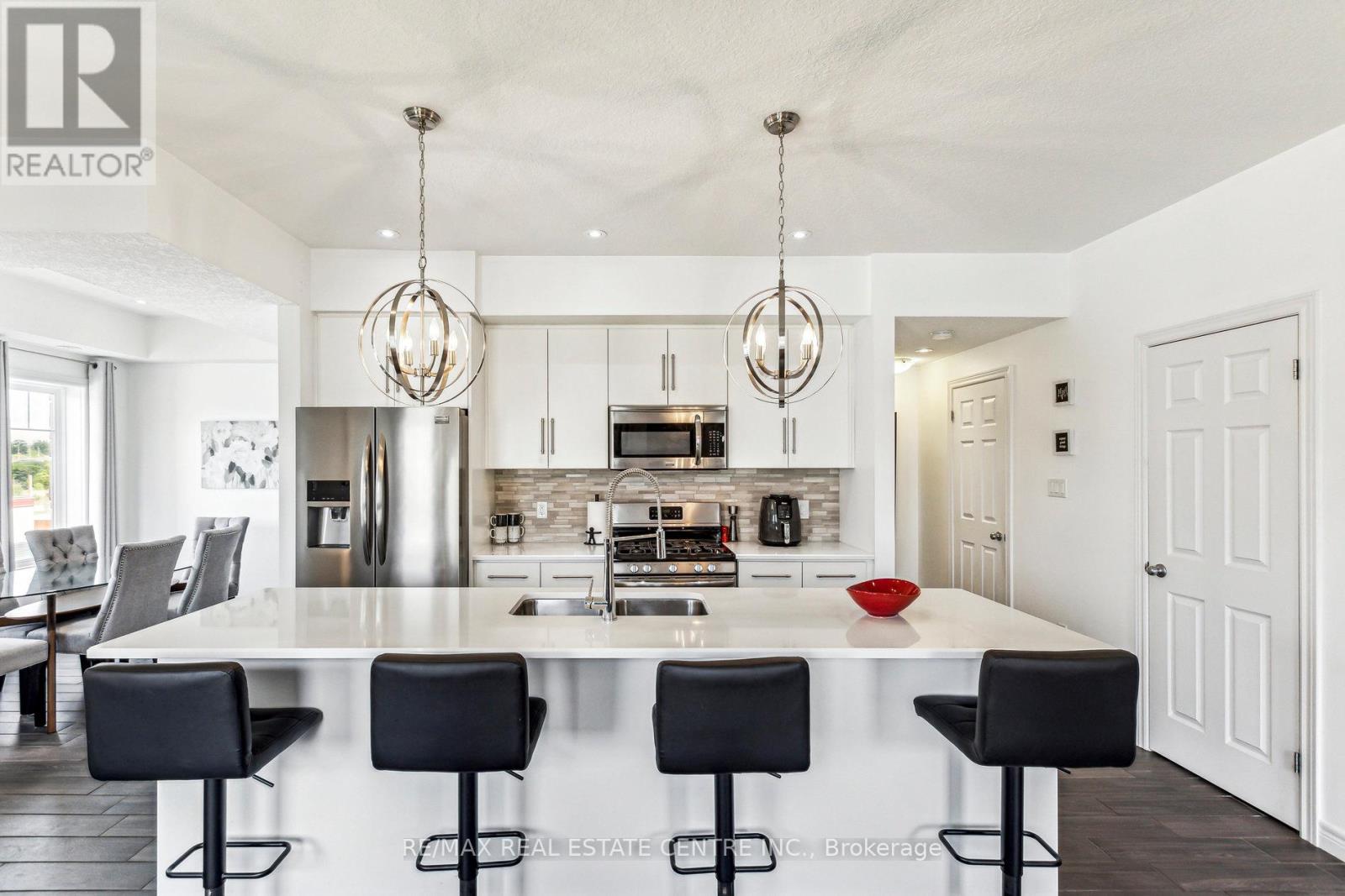 Experience refined living in this former model suite - an exceptional opportunity to own a beautifully upgraded multi-level townhome. Originally designed as the model suite, this residence showcases premium finishes and thoughtful enhancements throughout, offering incredible value for today's buyer. The fully finished main level features a warm and inviting family room, a convenient laundry area, and direct access to the oversized garage, complete with upgraded ceiling storage and a Ring Smart Security System. On the second level, the stunning open-concept kitchen is designed to impress - featuring stainless steel appliances, a spacious island, a gas stove, a wine fridge, and elegant quartz countertops. The adjoining living room with built-in ceiling speakers opens to a private balcony, perfect for entertaining. A dedicated dining area and stylish 2-piece powder room complete this level. Smart home upgrades, including smart light switches, a Nest Thermostat, and a Ring Alarm System, add modern comfort and peace of mind. The third level offers a luxurious primary retreat with a spa-inspired ensuite, double vanity, and generous walk-in closet. A second bedroom and sleek 4-piece bathroom provide flexibility for family, guests, or a home office. At the top, the rooftop terrace delivers breathtaking views, ample storage, and an outdoor water supply - an ideal space to unwind or entertain under the open sky. Ideally located just minutes from Highway 401, with seamless access to Cambridge, Guelph, and Waterloo, and close to top-rated schools, parks, and amenities. Enjoy nearby attractions, including the Grand River and Chicopee Ski & Summer Resort. A rare opportunity to secure a former model home loaded with upgrades - offering exceptional value, lifestyle, and long-term investment potential. Don't miss your chance to own this remarkable property. (id:64974)