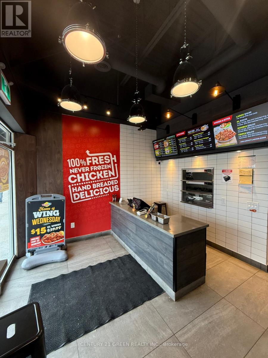 Turnkey investment opportunity to acquire a newly renovated Wings Up! restaurant in a prime, high-traffic, high-visibility location. Backed by over 35 years of brand recognition across Southern Ontario, this established QSR operates under a proven, efficient business model within one of Canada's fastest-growing chicken wing franchises. Strong fundamentals include ample parking, prominent anchor tenants, robust third-party delivery revenue, and significant upside from multiple upcoming residential developments in the immediate area. Buyer may commence operations and generate revenue immediately following completion of mandatory head office training, with two (2) weeks of operational support provided at opening. Attractive lease terms at $3,091.62 + HST (inclusive of TMI), secured through December2034, with two (2) five-year renewal options. Average monthly utilities approximately$600-$800. Franchise fee $17,500. All equipment and chattels included in the purchase price and maintained in excellent condition. (id:64974)