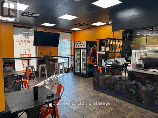 Sale of Business: This is an excellent opportunity to own a Shawarma Restaurant in a downtown Woodstock. The business is in its 3rd year. The owner is ready to relinquish and provide an opportunity to someone else at a discounted price of less than the cost to build new. The menu includes Shawarma, BBQ and Falafel. Great opportunity for a new entrepreneur owner/operator to manage and grow this well-established business. The Seller owns all equipment and is debt free. The property offers ample parking and has great street visibility. The leased space is 1600 sf and the lease is $3089/mo (includes TMI & HST) with 2 yrs remaining on the existing and another two 5 yr renewal. (id:64974)