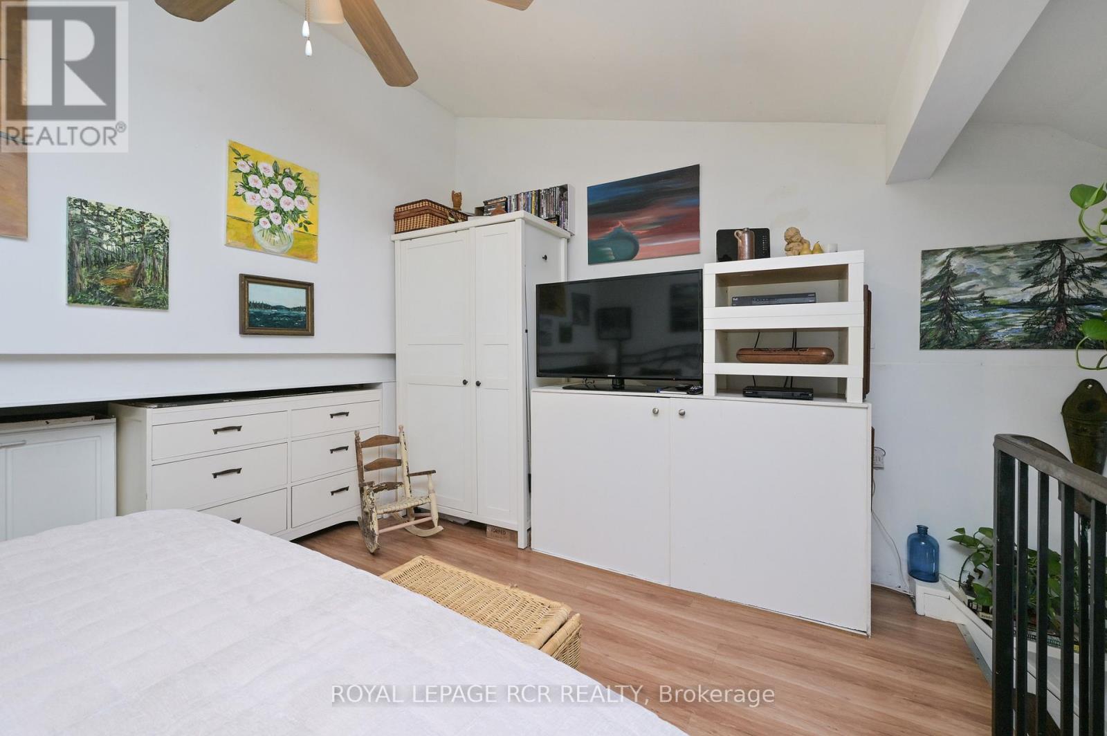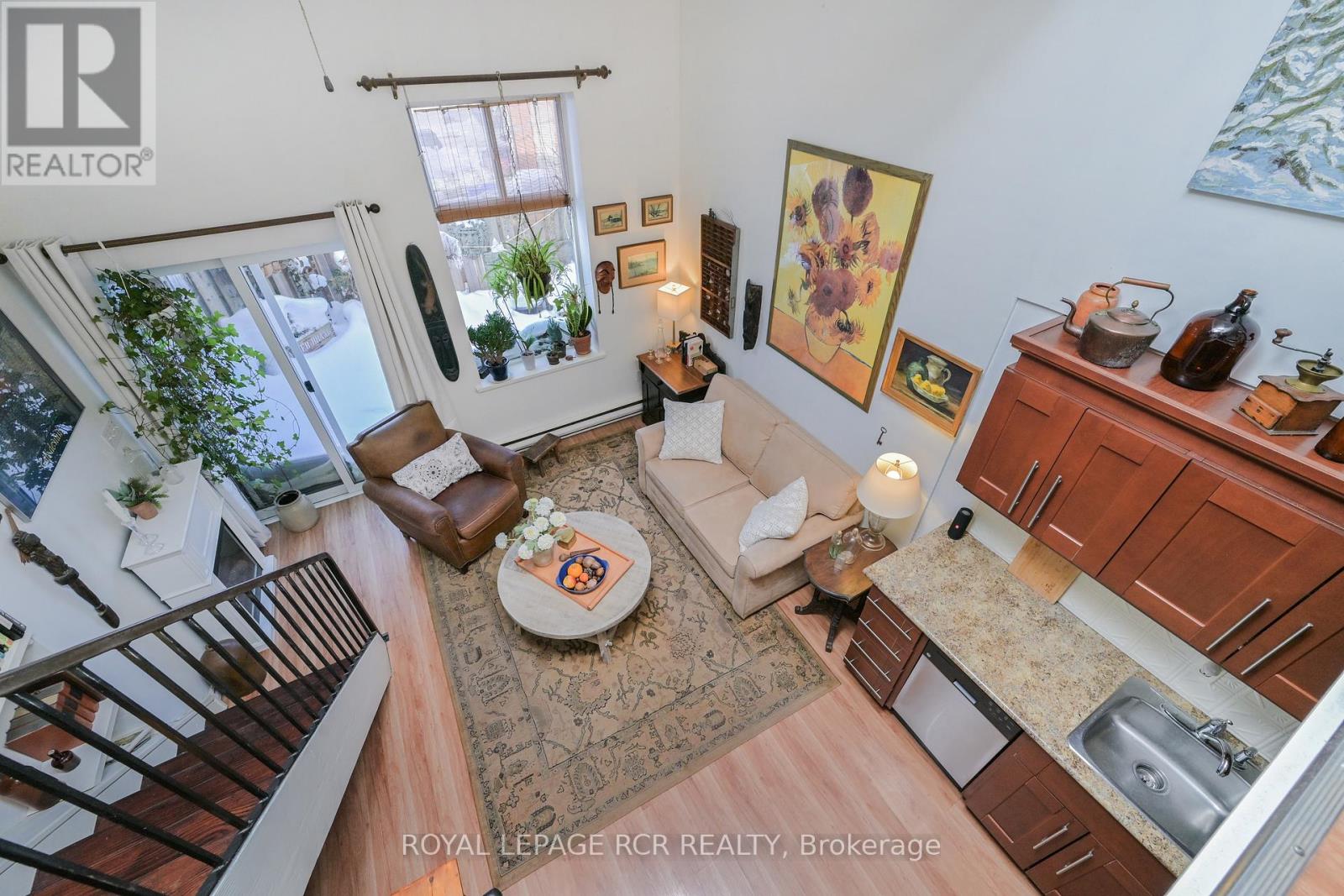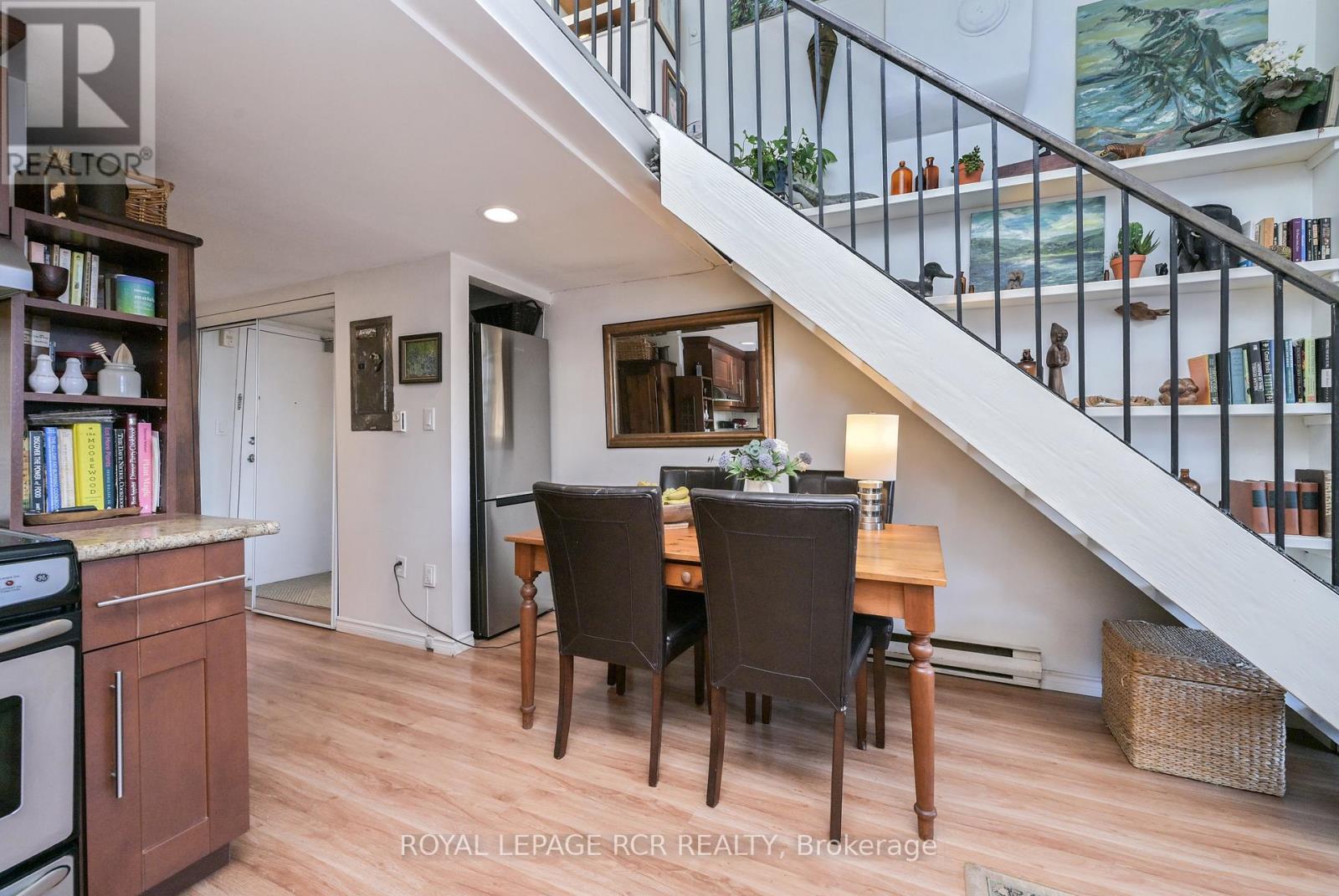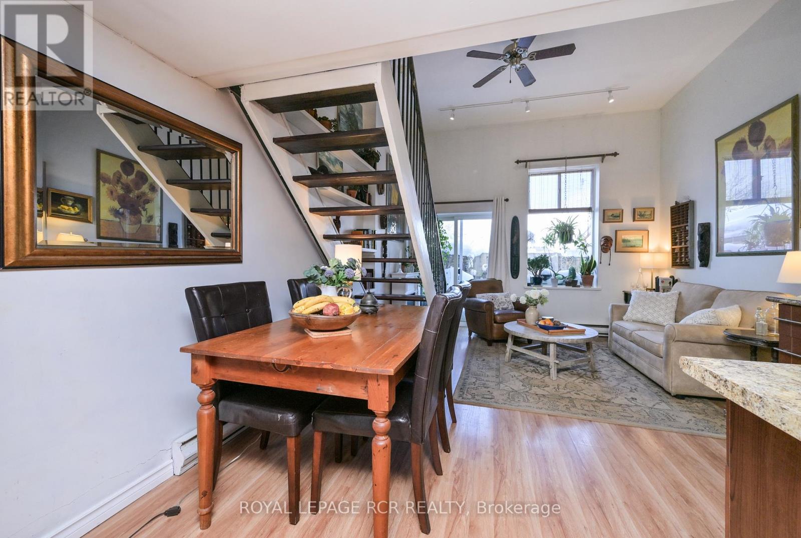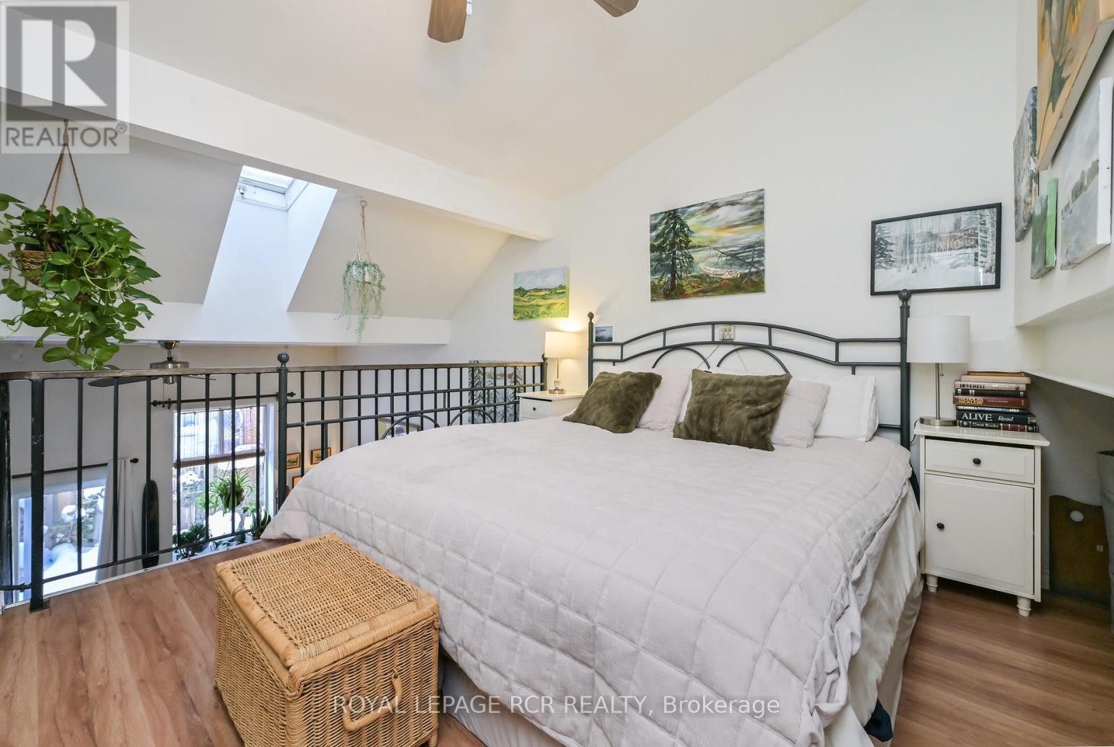 *See multimedia for Video! Tucked into the vibrant heart of downtown Orangeville, this beautifully styled one bedroom loft condo is proof that great things truly do come in thoughtfully designed packages. With its blend of modern updates, architectural character, and an unbeatable walkable location, this residence offers an inviting urban lifestyle that feels both exciting and comfortably intimate. Step outside and you're immediately immersed in the energy of downtown. Fine dining restaurants, cozy cafés, cocktail bars, boutique shopping, and local services are all just steps away. The historic theatre is nearby for evenings of live performances and film, while seasonal downtown festivals and the beloved farmers market bring the community together year-round. Whether you're meeting friends for brunch, enjoying a spontaneous night out, or strolling the streets on a sunny Saturday morning, everything you love about Orangeville is right at your doorstep. Inside, the condo welcomes you with a warm, loft-inspired atmosphere that feels stylish yet approachable. The open-concept layout maximizes every square foot, creating a seamless flow between the living, dining, and kitchen areas. Soaring ceilings and the lofted bedroom above give the space an airy, architectural feel, while carefully chosen finishes keep it cozy and livable. The condo includes a laundry hookup, offering the convenience of in-suite laundry potential and one of the most charming highlights of this condo is the private deck. This outdoor space offers an opportunity to enjoy fresh air and a moment of calm right in the downtown core. Whether you're sipping your morning coffee, enjoying a glass of wine in the evening, or adding a few plants to create your own urban oasis, the deck extends your living space and enhances the condo's cozy, welcoming feel. Back staircase accesses the private parking area (1 exclusive spot) and storage locker room. Things will be great when you're DOWNTOWN! (id:64974)