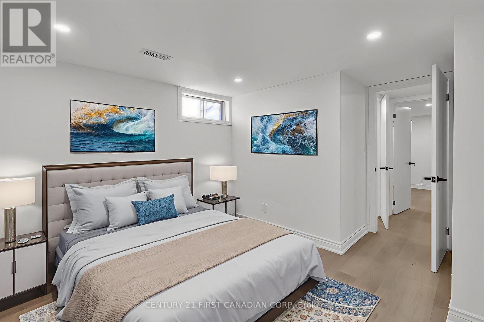 ** BASEMENT UNIT ** Experience modern living in this beautifully renovated 3 Bedroom BASEMENT UNIT WITH SEPARATE ENTRANCE , perfectly situated just few Minutes of drive to Western University and Fanshawe College and close to shopping, transit, and everyday conveniences. Designed with comfort in mind, the unit features a private entrance, a bright and stylish kitchen, generously sized bedrooms, a sleek bathroom, and in-unit laundry for ultimate ease. Enjoy peace of mind with brand new appliances including refrigerator, stove, and stacked laundry. Tenants contribute 30% of hydro and water and are responsible for snow removal for their portion of the property. This clean, modern, and move-in-ready space is ideal for responsible students or professionals seeking a quiet home in a highly desirable location. (id:64974)