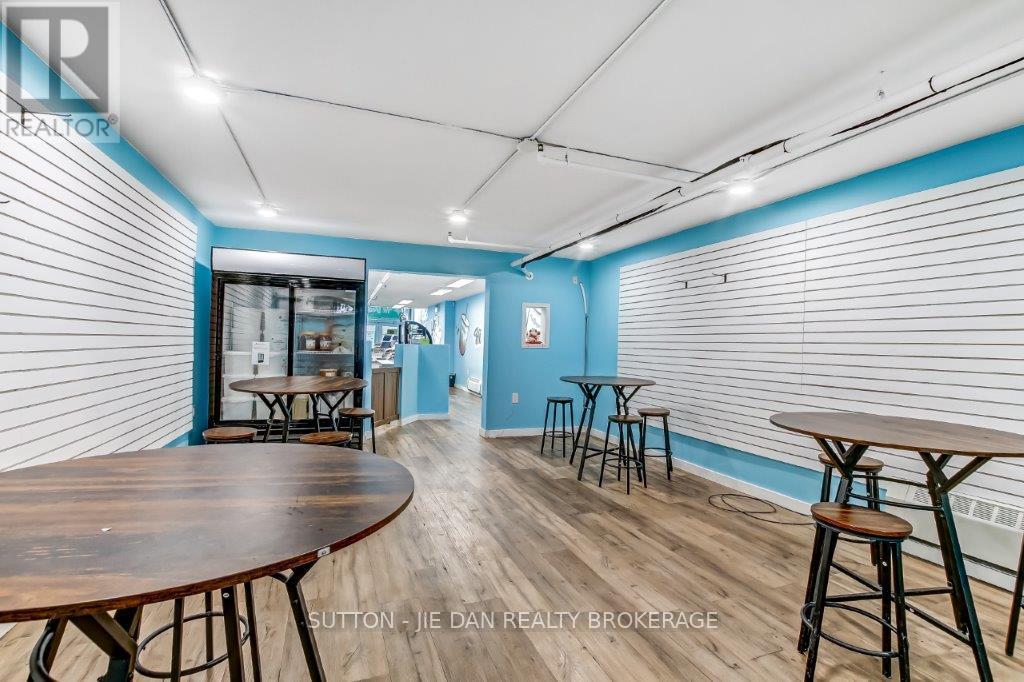 Turnkey franchised frozen yogurt shop located in the bustling downtown core on Dundas Street. Spacious 1,000 sq. ft. main floor beside Mr. Sub and Popeyes, with easy parking and surrounded by attractions like London Music Hall and Budweiser Gardens. Strong in-store traffic plus steady delivery orders via Uber Eats, Fantuan, and Hungry Panda. Features good sales volume, low rent, long lease, reliable supplier chain, and a loyal customer base. Easy to operate with excellent profit margins and huge growth potential. Monthly rent only $2000 including base and added rent. Could be running without franchise new brand. A sweet opportunity to own a thriving business in a prime locationdont miss out! (id:64974)