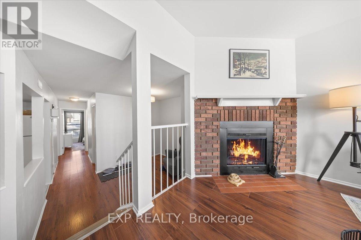 Location, Lifestyle & Low-Maintenance Living!Welcome to this beautifully updated 2-bedroom, 2-bathroom condo - It is an ideal opportunity for first-time buyers, downsizers, or smart investors. Nestled in a quiet, well-managed community, this home offers exceptional access to transit, shopping, schools, scenic walking trails, - all just moments from your door.Freshly painted throughout, the bright split-level layout creates an airy, open feel with defined yet connected living spaces. The spacious living room features oversized windows and a classic brick wood-burning fireplace, perfect for cozy evenings at home. Smooth ceilings add a modern touch throughout.The kitchen has been stylishly refreshed with newly painted cabinets and brand-new countertops, offering both function and contemporary appeal. Overlooking the open dining area, it's a great setup for everyday living and effortless entertaining. The primary bedroom features a generous closet and private access to the full bath. The second bedroom provides flexible space for guests, a home office, or a personal retreat. An updated powder room is a wonderful addition to this layout. Additional highlights include in-unit laundry and a large storage room off the kitchen, perfect as an overflow pantry. Covered parking, plenty of visitor spaces, reasonable condo fees, and beautifully maintained grounds all contribute to an easy, low-maintenance lifestyle. Enjoy the perfect balance of comfort and connectivity in one of Ottawa's most accessible neighbourhoods. Whether commuting downtown or enjoying nearby green space, everything you need is close at hand. (id:64974)