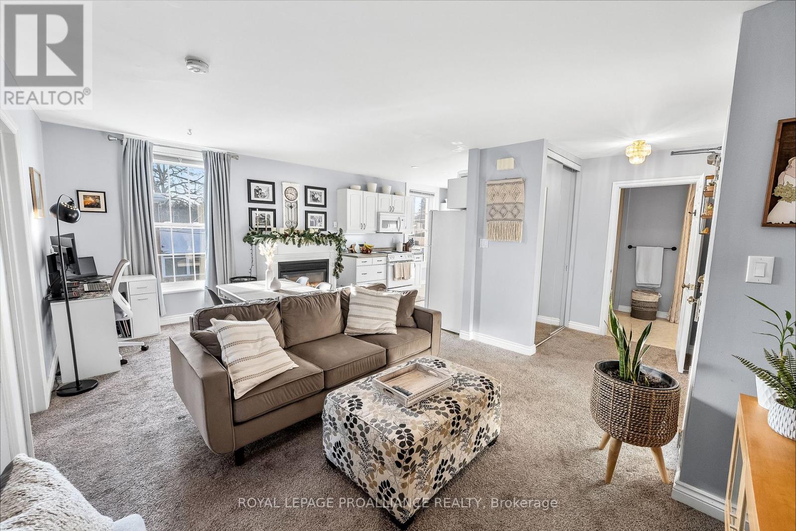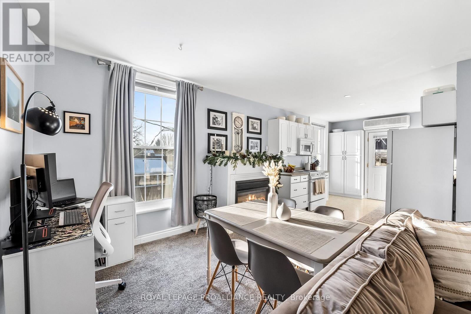 This is the kind of home that instantly feels right. Tucked into Port Hope's charming English Town neighborhood and just a short stroll to downtown, this bright and updated second-floor 2-bedroom apartment offers the perfect blend of comfort and convenience with the added bonus of two parking spaces. Sunlight pours into the open-concept living and dining area, where large windows and a cozy gas fireplace create a warm, inviting space to unwind. The spacious kitchen offers plenty of cabinetry and counter space with a walkout to your own private covered north-facing deck making it an ideal spot for morning coffee, relaxed evenings and hosting social gatherings. Thoughtful features throughout make everyday living easy including ensuite laundry, a dishwasher, built-in microwave, an air conditioning wall unit, generous closet space and an oversized bathroom. With shops, restaurants and local amenities just steps away, along with quick access to Highway 401, this is a wonderful opportunity to enjoy both the lifestyle and charm that Port Hope has to offer. (id:64974)