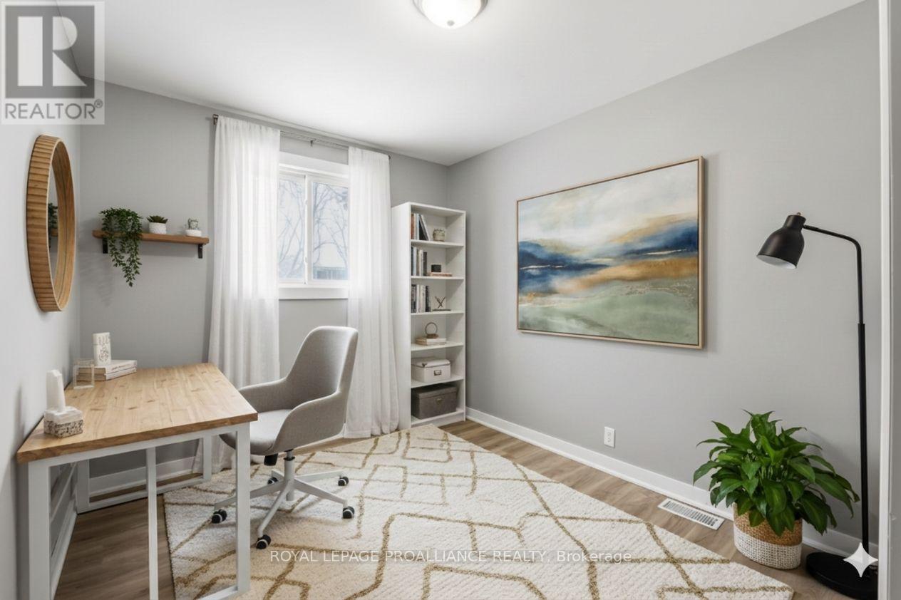 Perfect location! 2 car parking! 2+1 bedroom apartment with a show stopper living /dining area that has a huge south facing window and a walkout to your own private balcony. Enjoy the backyard too! Walk to the beach and all of Cobourg's amazing amenities. This apartment is ideal for families; professionals; upsizers and downsizers seeking a quiet and comfortable lifestyle. The open concept kitchen features a breakfast bar and generous storage space. All three bedrooms showcase windows and closets. The bathroom is a good size and includes a tub. Laundry is conveniently located in the building. 2 tandem parking spaces on the private drive. Easy access to Hwy 401 and VIA Rail. Welcome home! (id:64974)