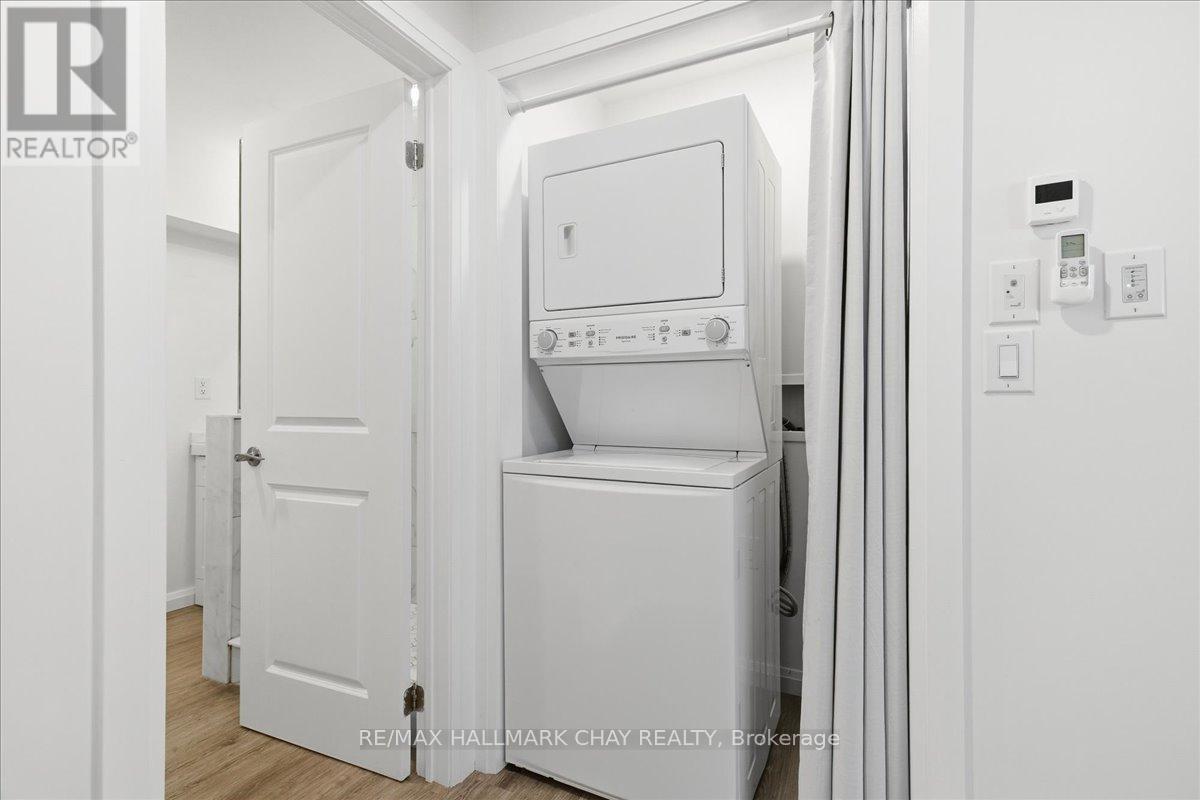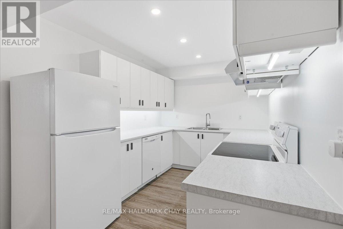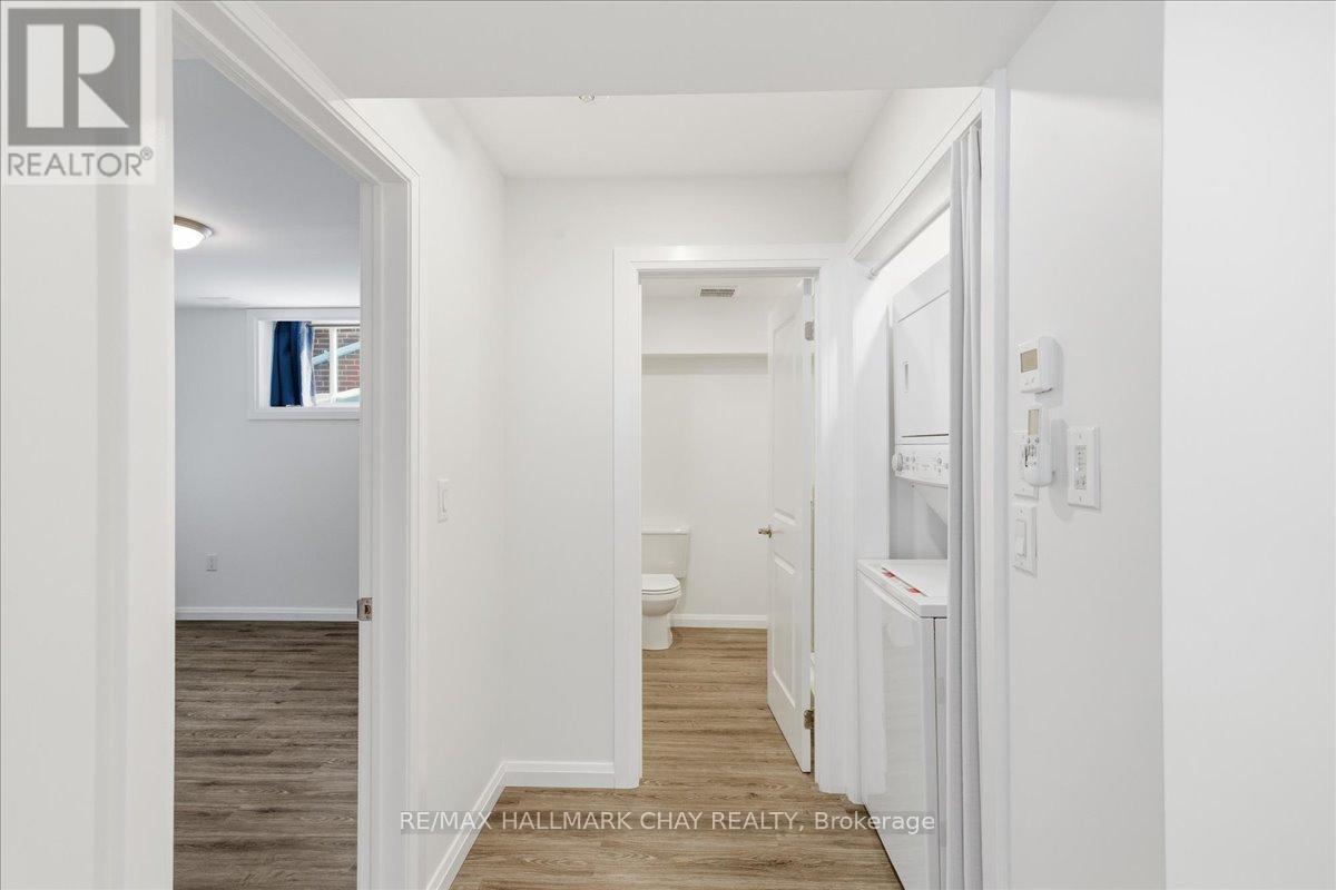 Beautifully updated 1-bedroom lower-level apartment located across from Couchiching Golf & Country Club on Peter Street in Orillia. This bright unit offers a private entrance, in-floor heating throughout, and a functional open-concept layout with modern finishes, pot lights, and durable flooring. The updated kitchen features full-size appliances and ample cabinetry. The spacious primary bedroom includes mirrored closet doors, and large above-grade windows provide excellent natural light. Additional highlights include a modern bathroom, in-suite laundry, dedicated storage, and one parking space. Situated in a quiet, well-maintained property just minutes to downtown Orillia, parks, shopping, transit, and commuter routes. Clean, move-in ready, and ideal for low-maintenance living. (id:64974)