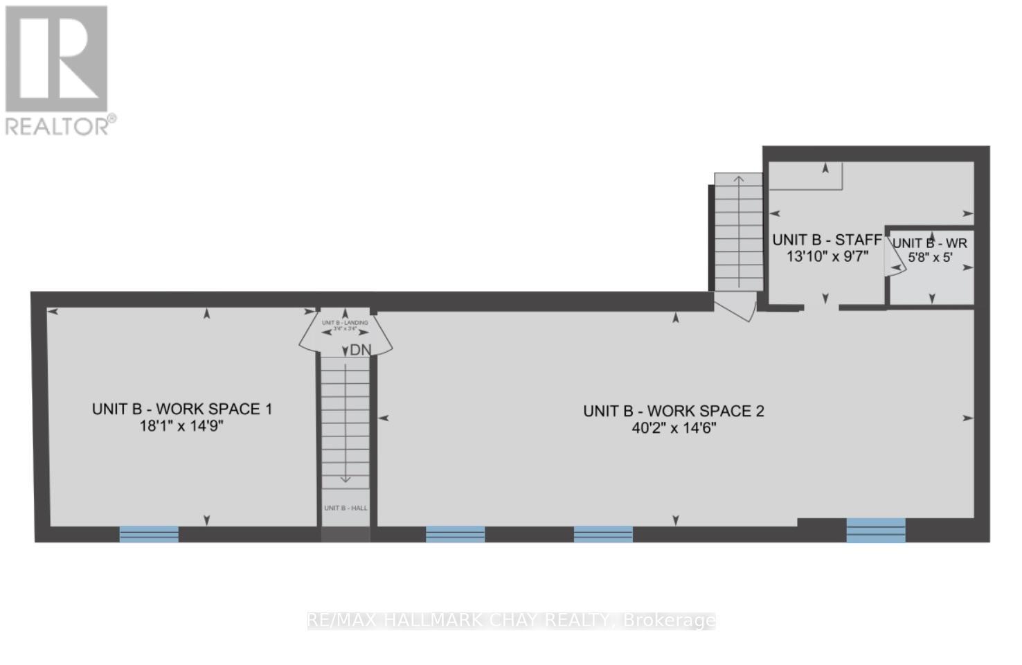 Excellent Office space available on second floor with A/C. Two large open areas with plenty of windows. Newly painted and carpeted with LED lighting being installed. Kitchennete area. One two-piece washroom. Unit can be combined with Unit C wharehouse. Easy access to Hwy 11. TMI $4.75 (2026) incl. water. (id:64974)