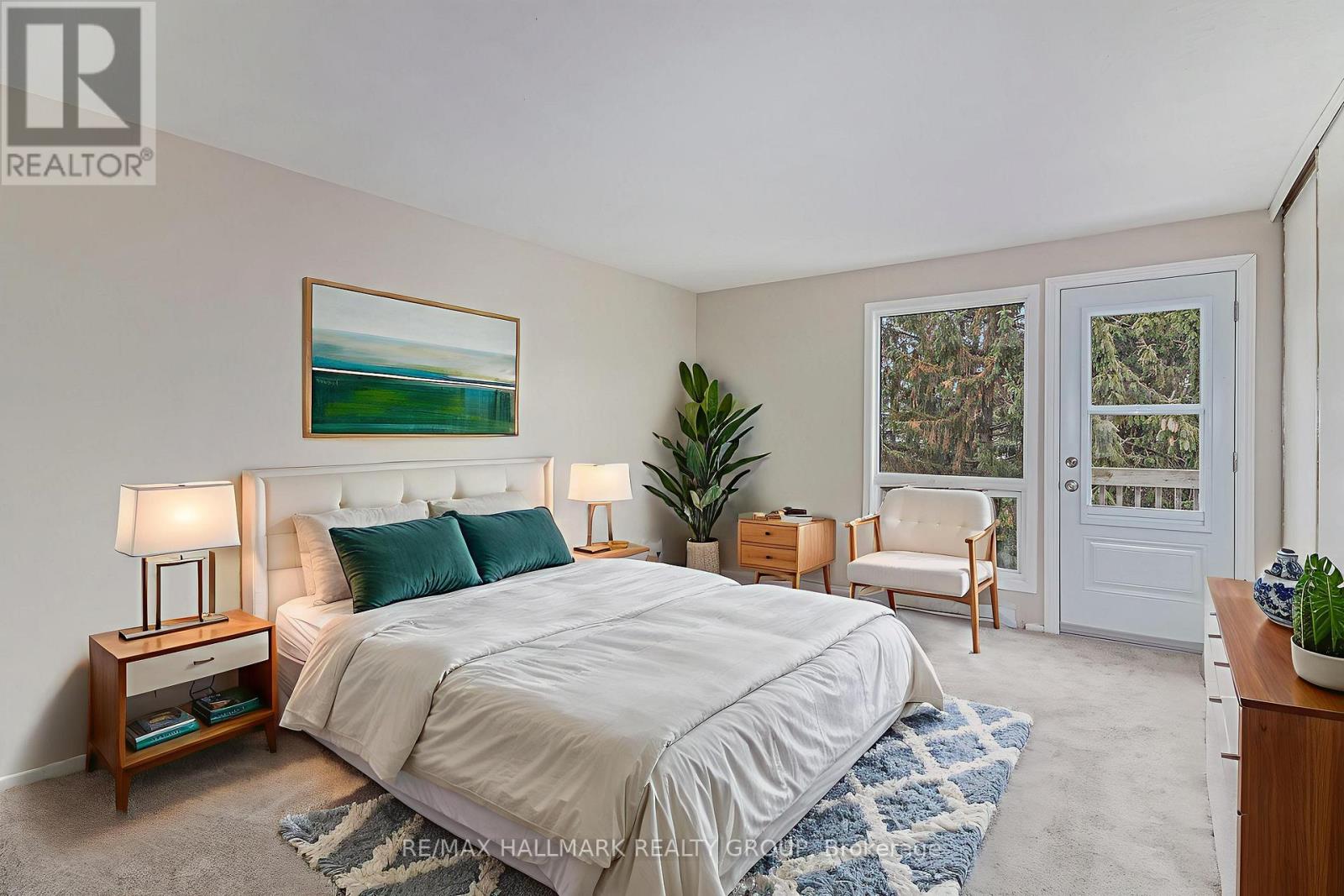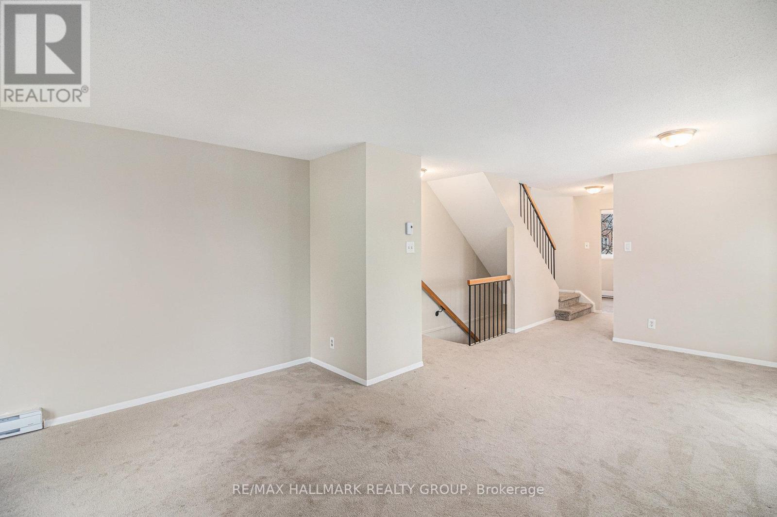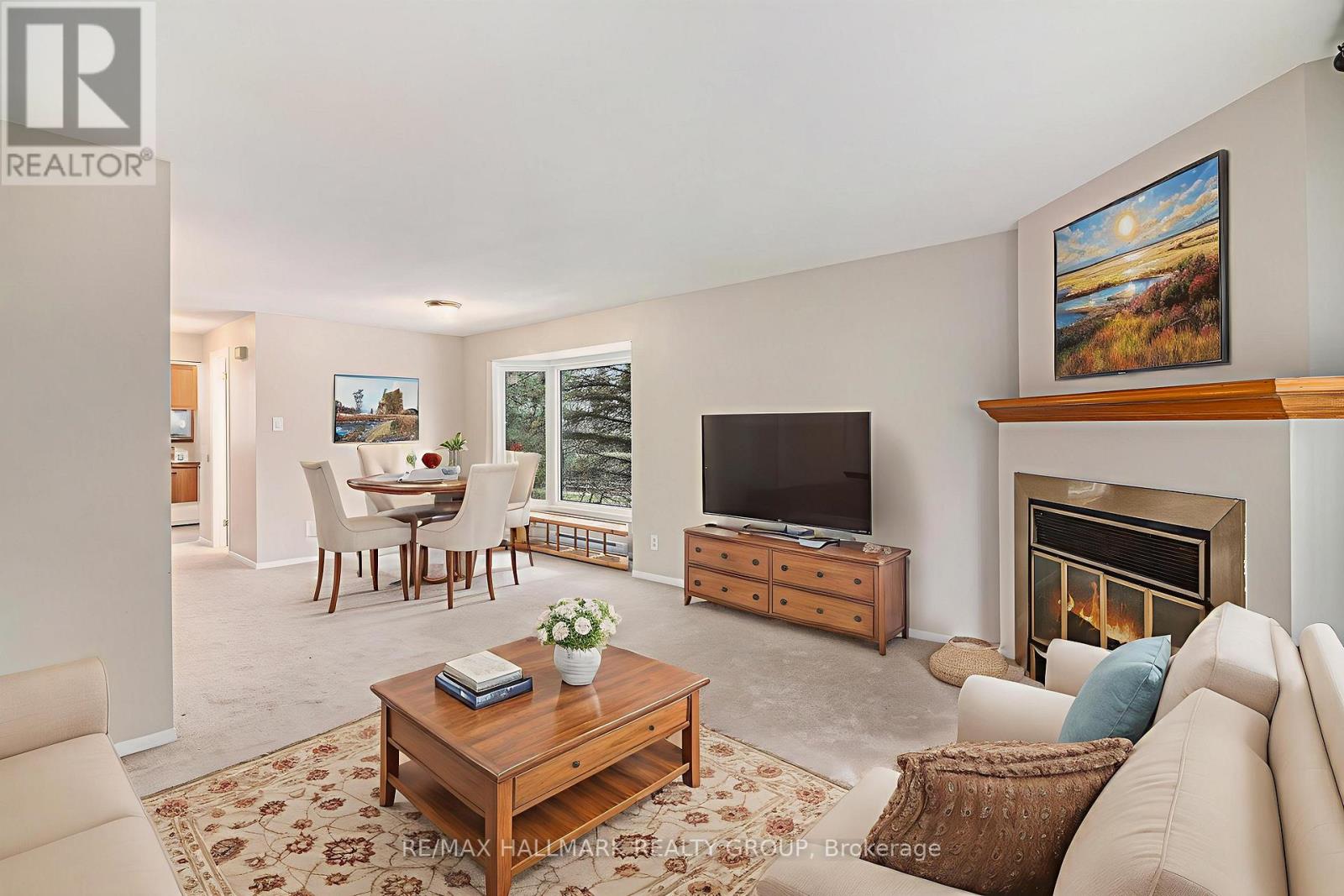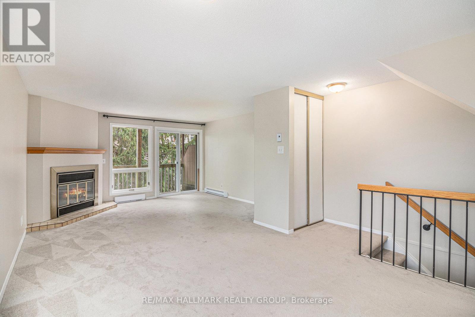 Well maintained, end-unit 2-bedroom, 2 bath upper terrace condo offering a bright interior in a peaceful, forest-backed setting of Convent Glen. The main level features an open-concept living/dining area with a cozy wood-burning fireplace and access to a private balcony with tranquil green-space views. A sun-filled eat-in kitchen and convenient powder room complete the main floor. Upstairs you'll find a sky light over the staircase & upper hallway, spacious primary bedroom with wall-to-wall closet space and its own private balcony, a bright second bedroom, full bathroom, and in-unit laundry/storage area. Newer carpets on the upper level, newer full sized washer/dryer and freshly painted throughout. Located steps from parks, playgrounds, transit, shops and the Ottawa River pathways, with easy access to Place d'Orléans, Petrie Island Beach and the LRT station. A perfect low-maintenance home in a highly desirable, nature-surrounded neighborhood. (id:64974)