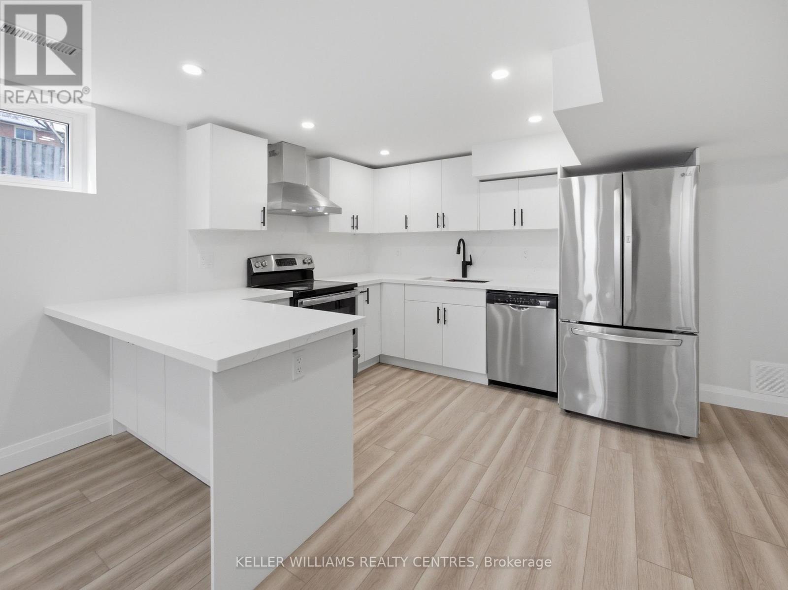 Newly renovated 1-bedroom lower-level unit with a separate entrance and dedicated parking, located in a family-friendly neighbourhood. This bright and inviting space features a spacious kitchen and an open-concept living area, complete with sleek vinyl flooring throughout. Enjoy the convenience of a private washer and dryer, along with a well-appointed four-piece bathroom. Ideally situated close to schools, parks, public transit, and shopping plazas, with quick access to Highway 400.Tenants are responsible for snow removal and 40% of utilities.Extras:1-year lease required. Rental application, references, letter of employment, and credit report required. First and last month's rent deposit. No smoking and no pets. Includes fridge, stove, dishwasher, microwave, washer, and dryer. (BACKYARD EXCLUDED) (id:64974)