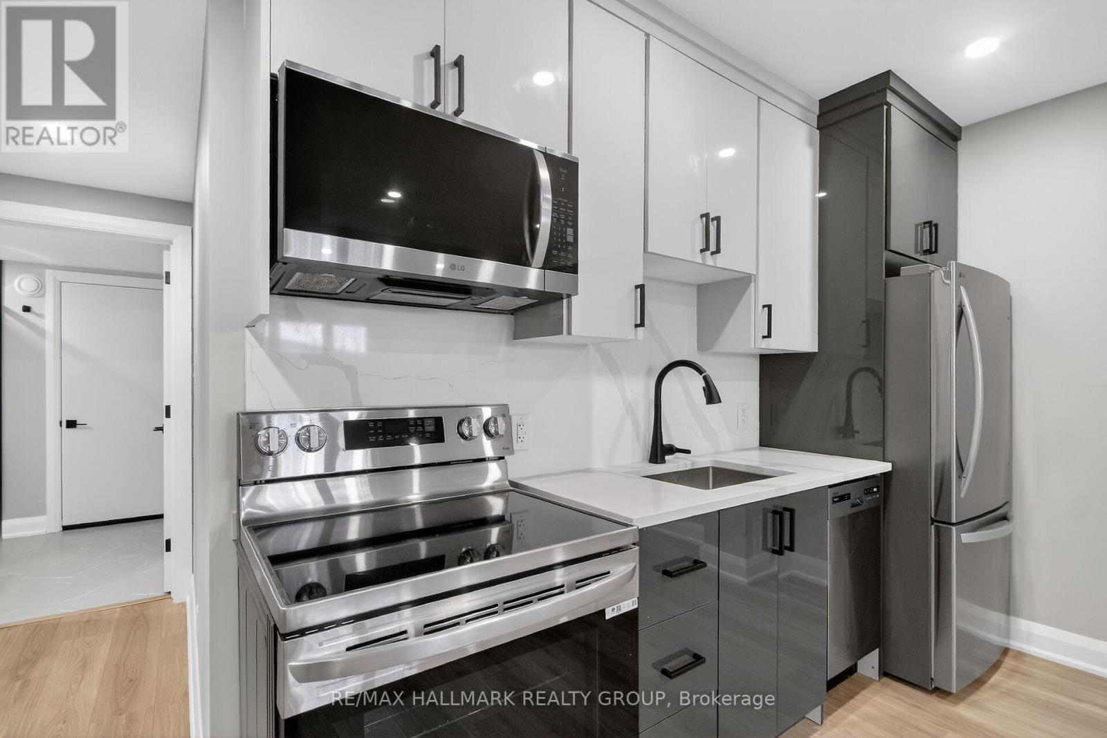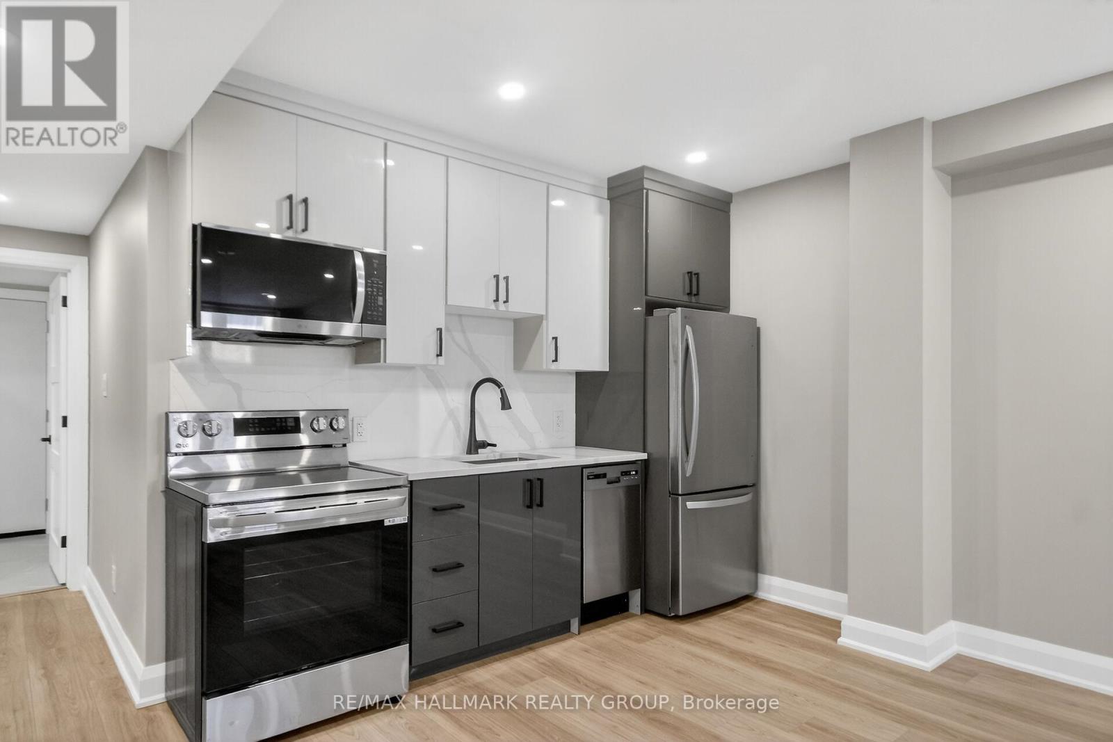 This brand new one-bedroom with its own private entrance is a true gem that boasts water resistant laminate and tile flooring throughout, complemented by a sleek, modern kitchen with stainless steel appliances. Open living and dining spaces create an inviting atmosphere perfect for relaxation or entertaining. With one beautifully designed bathroom and your own laundry. This premium basement apartment combines comfort with style. Water included in the rent. No parking, no access to driveway, garage or backyard. (id:64974)