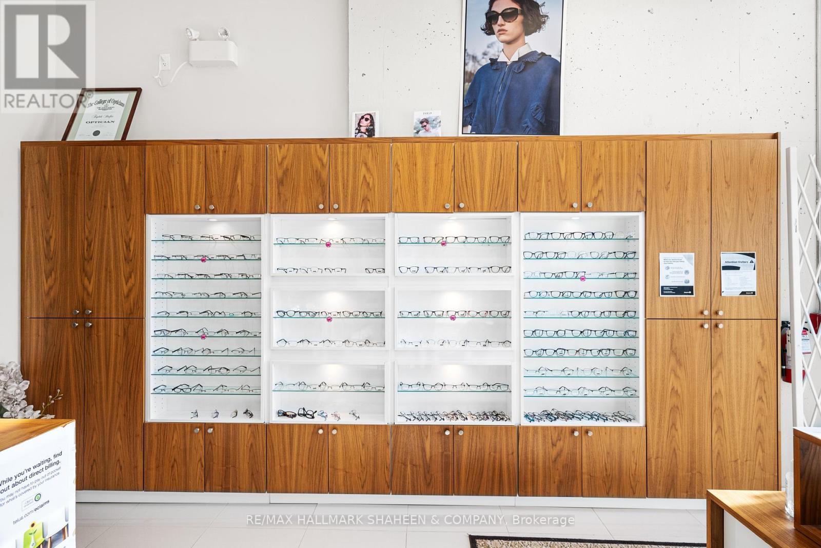Prime opportunity in the heart of Richmond Hill. This 579 sq. ft. retail condominium is located on vibrant Yonge Street, offering exposure and accessibility. Currently operating as an optical store, the space is fully equipped and ideal for optometrists, eyewear retailers, or healthcare businesses. Zoned for general commercial use, it suits a variety of other purposes. Features include rear customer parking, a high Walk Score of 89, and steady foot traffic. Surrounded by residential and commercial developments, this location offers strong growth potential. Perfect for end-users or investors seeking a ready-to-go space. Accessible washroom and an exam room. $697.88 monthly condo fee includes water and building insurance. (id:64974)