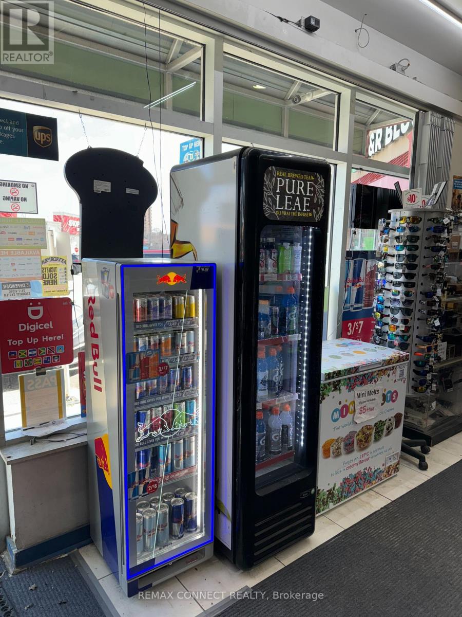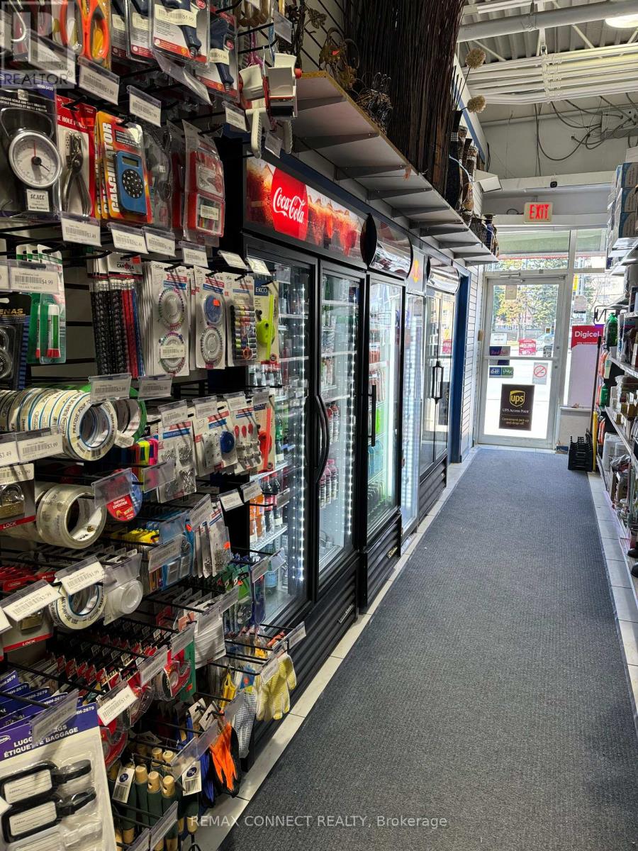 **Prime Location!** Turn-key and profitable convenience store in a high-demand Scarborough location at Morningside & Kingston. This corner double-unit offers TWO entrances, TWO OLG Machines and approx. 1,700 sq ft. of operating space with excellent visibility, strong exposure on a VERY busy Kingston Rd, surrounded by dense (& growing) residential and commercial activity. Multiple income streams include lottery, printing/copy services, ATMs, Key & Fob copying, and multiple Shipping service contracts. High margin inventory, such as clothing, smoking accessories, home goods and more. Vape & Alcohol can be added. Established business since 2007, with tremendous Goodwill and high potential for continued growth. The space offers an entrance for pedestrians/commuters on Kingston Rd and an entrance from a high traffic plaza featuring solid anchors. Lease secured to 2032 + 5yr option to renew. Current business hours are 9-9 & 10-7 on Sundays. (id:64974)