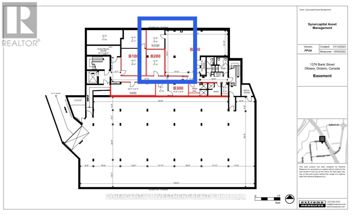 Approx 900 rentable square feet of turn-key office space in basement of well-managed office building! Currently divided into 3 large rooms, and can be divided further. Landlord can provide/organize desired fit-up at cost, pro-rated over the lease term! Space is currently used as physiotherapy/osteopathy/RMT wellness practitioners but has wide variety of applications.See marked-up floorplans in tandem with the following description: the proposed new space crops some of the (current) B400 open floor plan and closes it off for owner personal use; B200 is absorbed, and doors opened between spaces as tenant requires. There is some flexibility re: placement of walls; possible inclusion of all or some gym equipment in the rental. Equipment is not for sale unless tenant is leasing space. All utilities and operating expenses included in the rent - fully Gross Lease! Escalations of $50/mo/year. Excellent location close to 417, Riverside Drive,Bank Street, and Billings Bridge shopping plaza. Building is home to professional tenants such as law offices, mental wellness practitioners, not-for-profit, technology, etc. Video walk through is available upon request. (id:64974)