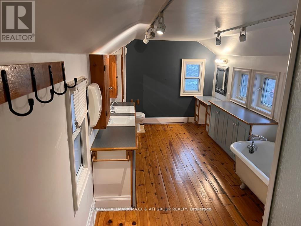 Step into timeless character with this two-storey heritage home located in the heart of downtown Aurora. This unique 2-bedroom, 1-bathroom residence blends historic charm with functional living spaces, perfect for tenants seeking something truly distinctive. The main level features original hardwood floors, high ceilings, decorative trim, and a cozy living/dining area highlighted by a feature fireplace. The spacious eat-in kitchen offers ample cabinetry, wood countertops, and multiple windows providing great natural light, with direct access to the backyard. Upstairs, you'll find two character-filled bedrooms with painted wood floors, wainscoting accents, and generous closet space. The bathroom is a standout, featuring a vintage clawfoot tub, double vanity, wood floors, and abundant natural light - a perfect blend of old-world charm and everyday comfort. Additional highlights include: Fully fenced private backyard with deck. Two tandem parking spaces on the driveway. Enclosed front entry/mudroom with built-in shelving and hooks. Fresh neutral paint throughout. Unique architectural details you won't find in newer homes. Unbeatable location - walking distance to Aurora GO Station, YRT transit, parks, shops, cafés, and restaurants. Ideal for commuters or anyone looking to enjoy a vibrant, walkable downtown lifestyle. A rare opportunity to lease a truly special home in one of Aurora's most desirable locations. (id:64974)