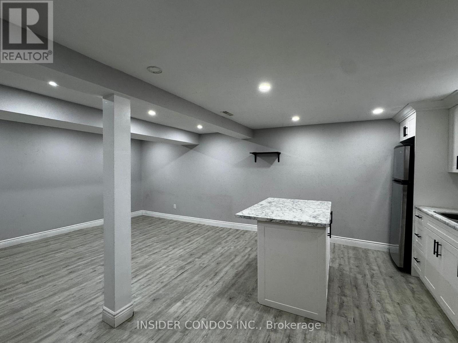 Spacious and bright 1-bedroom basement unit spread over two levels with two ground-level entrances, including a sliding door walkout to a private backyard backing onto a park and school, plus a convenient side entrance. The main floor features a large bedroom with direct access to the backyard and a full bathroom with a combined tub and shower. The lower level offers a brand-new kitchen with island, along with a generous living and dining area, plus private in-unit laundry. Includes 1 parking space. Tenant responsible for 30% of utilities. Photos to follow. (id:64974)
