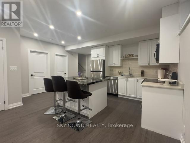 This beautifully renovated modern basement is accessed via a side private entrance. The basement boasts a spacious living area with kitchen complete with stainless steel appliances (fridge, stove, dishwasher, and microwave) an island with granite countertops and sitting area. Bedroom and main living area have large windows. The washroom is beautifully finished with white and light gray marble veins on the floor and inside the shower. A dedicated stacked washer and dryer is conveniently located within the living quarters. Pot lights throughout to provide a bright and welcoming ambience. One car driveway parking included. Utilities will be included for a single tenant. Couples would pay 20% of the utilities. (id:64974)