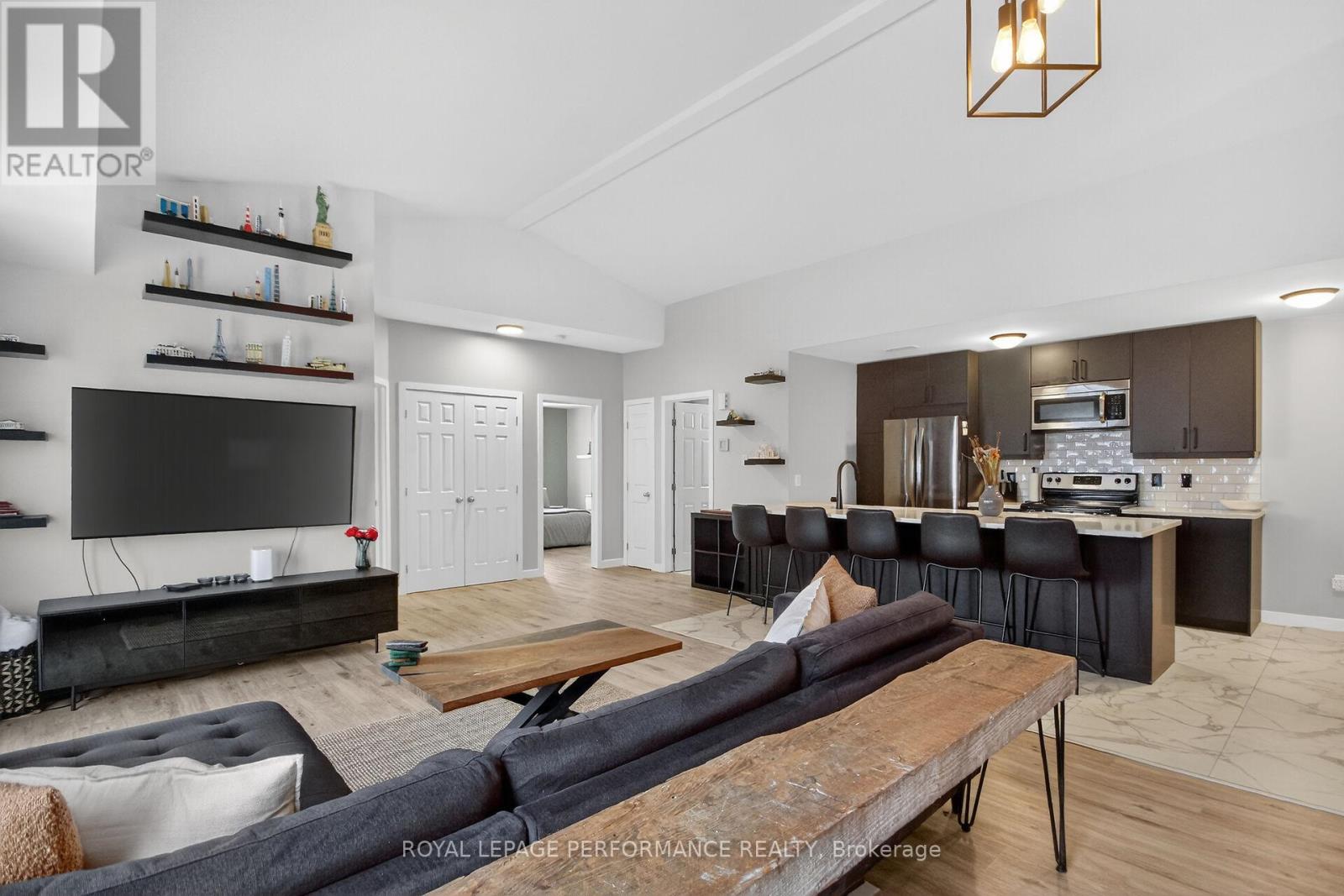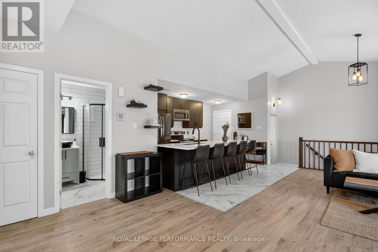 Rarely offered top-floor 2-bedroom, 2-bathroom condominium in sought-after Kanata South. This fully renovated unit is filled with natural light, vaulted ceiling, and features a modern open-concept layout with afully renewed kitchen, complete with a large 10-foot quartz island, new cabinetry, and contemporary finishes throughout. The spacious primary bedroom includes a private ensuite, while the second bedroom is ideal for guests, a home office, or family use. Enjoy outdoor living on the oversized balcony with a natural gas hookup-perfect for BBQs and entertaining. Located in a well-managed condominium complex, this move-in-ready apartment offers a rare opportunity to own a beautifully updated unit in a prime location close to parks, shopping, transit, and all amenities. Check out the attachment for the list of improvements! (id:64974)