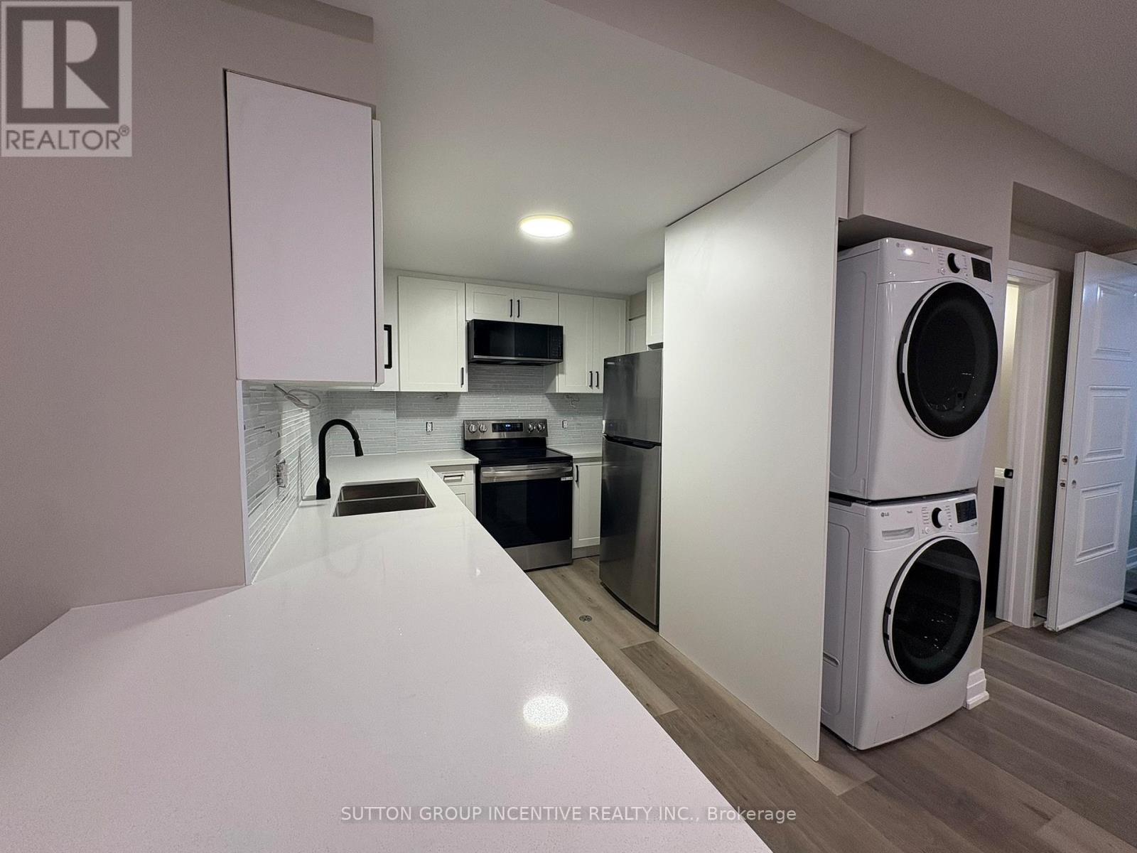 ***INCLUDED***Heat, Hydro, Water, Septic, Lawn Maintenance and Snow Removal included in monthly rent. Brand new, beautifully finished 2-bedroom basement apartment offering a bright, open-concept layout with modern finishes throughout. Enjoy 9 ft ceilings, in-floor heating, durable luxury vinyl flooring, and pot lights that create a warm and comfortable living environment. The contemporary kitchen is equipped with quartz countertops, shaker-style cabinetry, subway tile backsplash, stainless steel appliances, and a functional breakfast bar for casual dining. Two bedrooms provide flexible living space, ideal for a single professional or professional couple seeking comfortable, low-maintenance living. The 4-piece bathroom features beautiful tilework and a clean, updated vanity. In-suite stacked laundry adds everyday convenience. Situated on nearly an acre lot, the serene shared backyard features lush greenery and a quiet spot to enjoy the outdoors. It's like living in the "sticks" but in the city! Prime location close to Friday Harbour, The Nest, and Allandale golf courses, with easy access to the GO Train and a Barrie city bus stop. Surrounded by great restaurants, shopping, and essential amenities. Enjoy the ease of low maintenance living as the landlord will take care of the lawn maintenance and snow removal. Well water is chlorine free natural spring water that is filtered and softened. (id:64974)